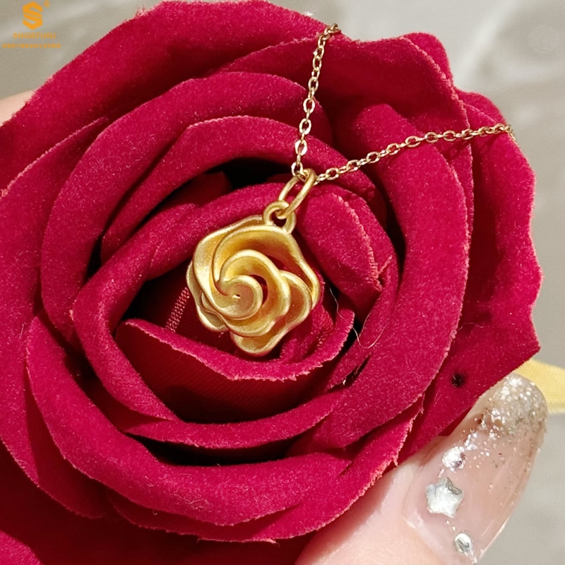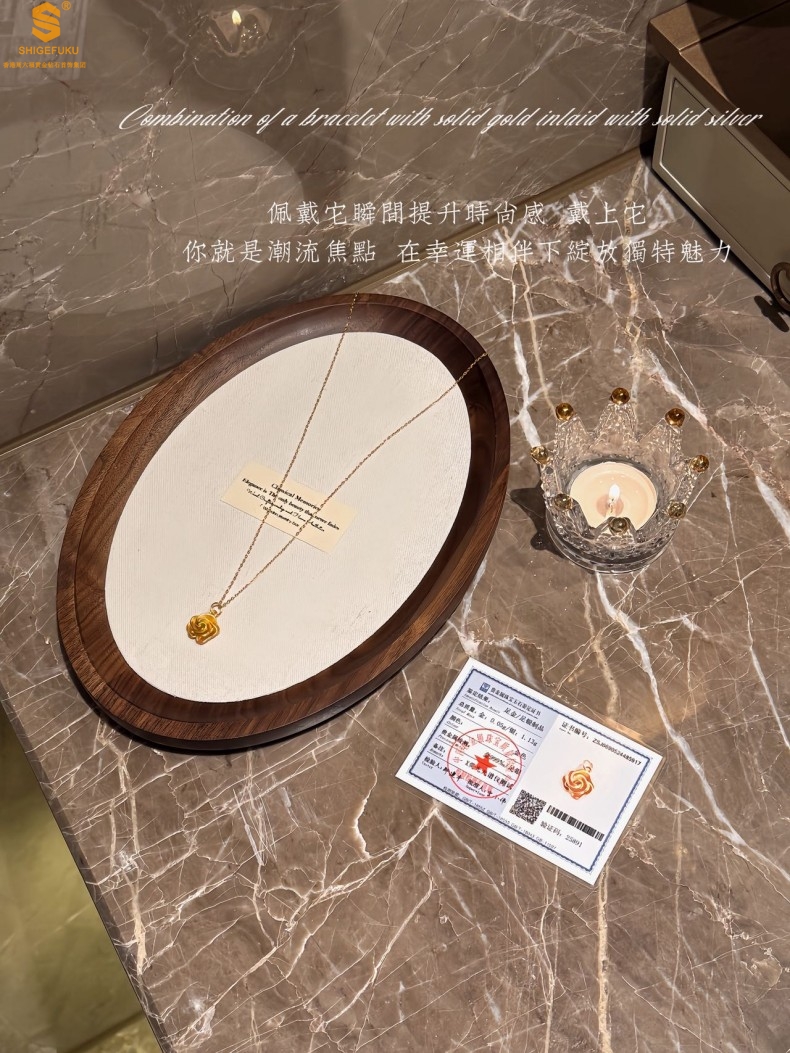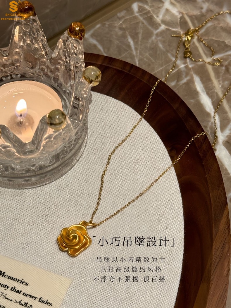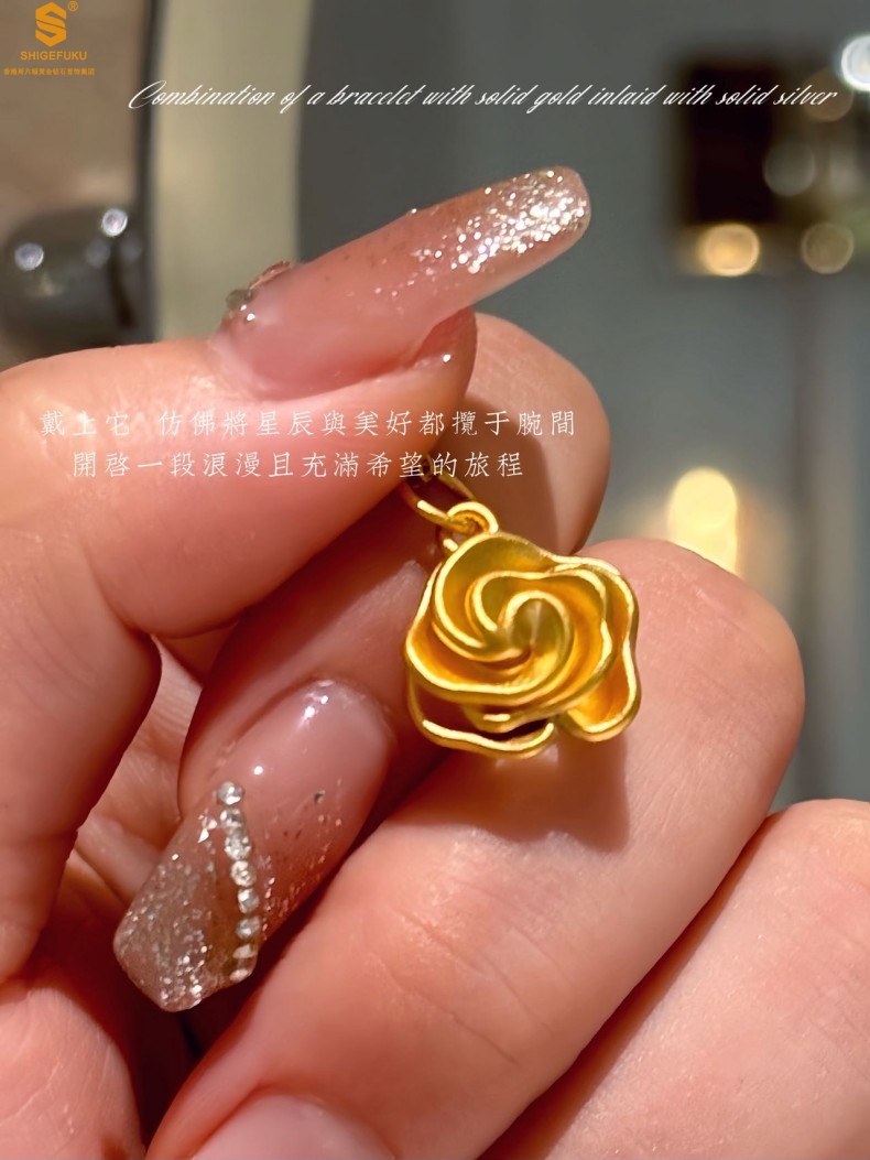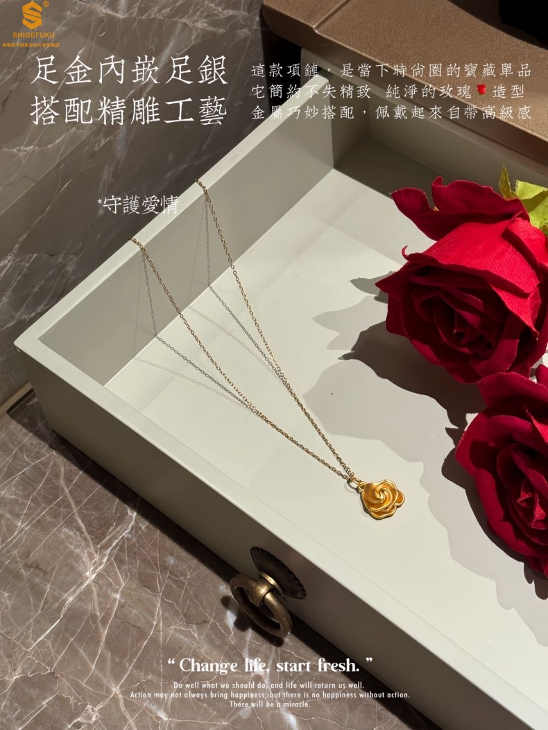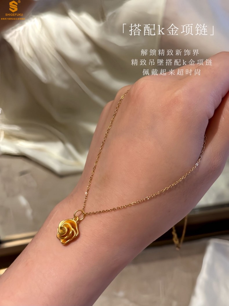【品名】幸福华语心动玫瑰足金内嵌足银吊坠(附赠K金项链)