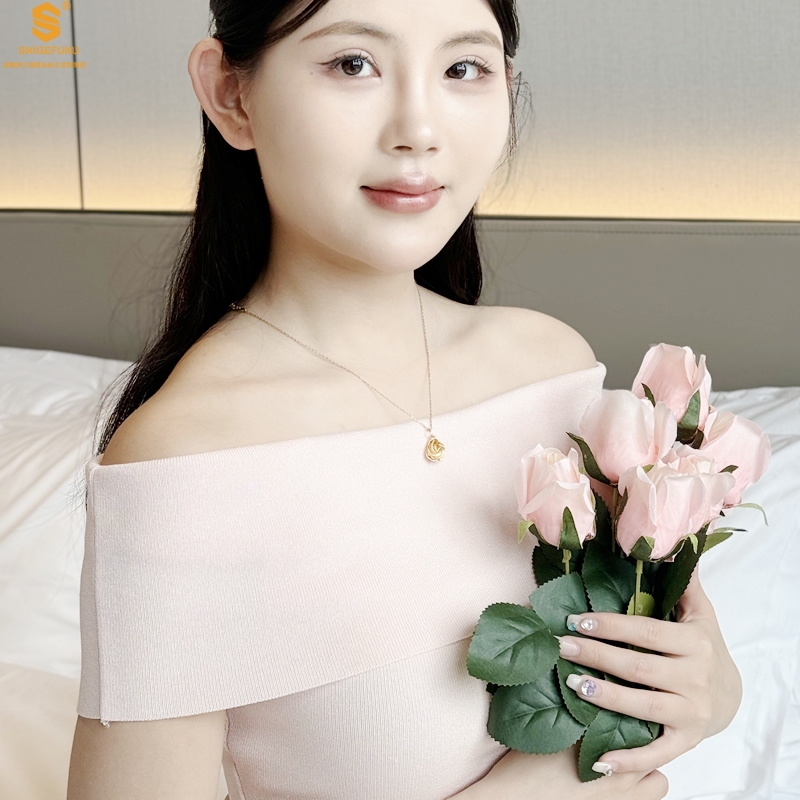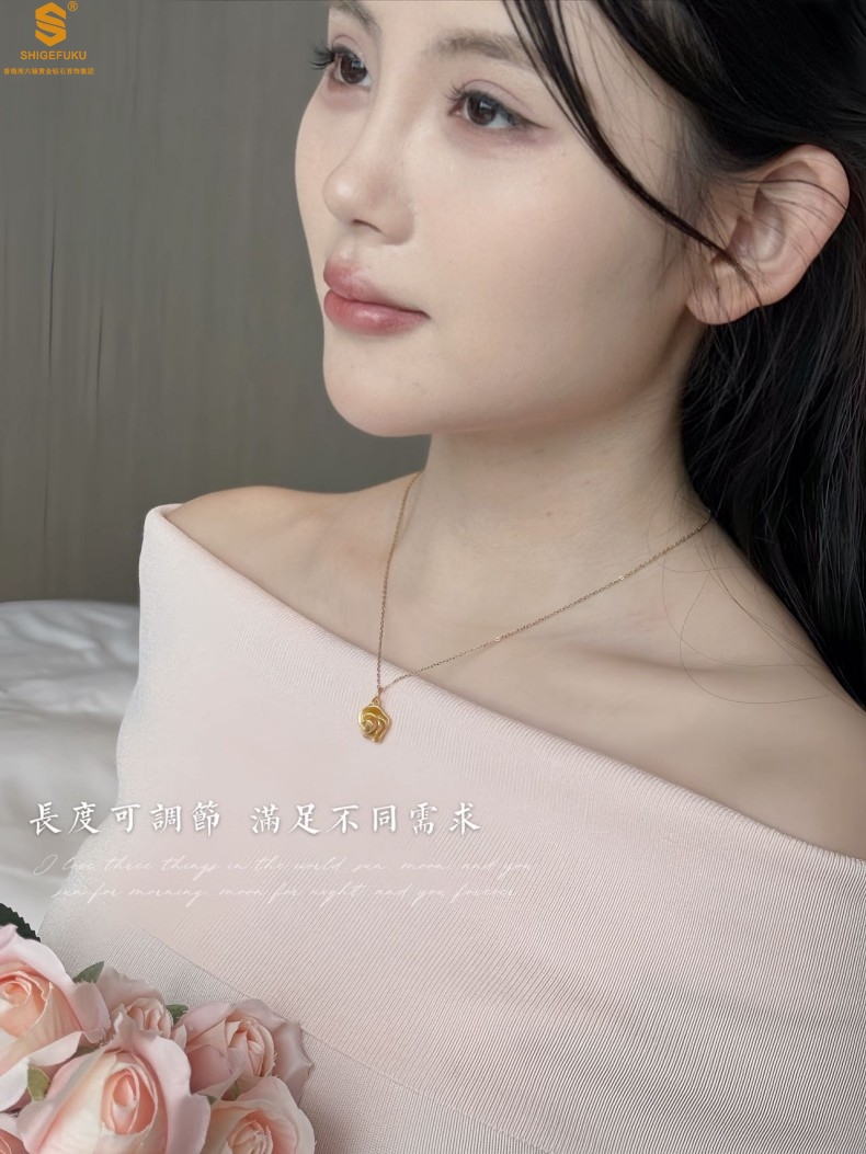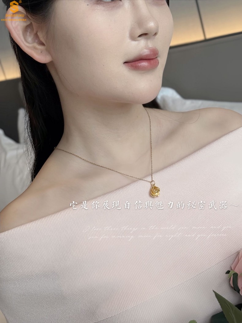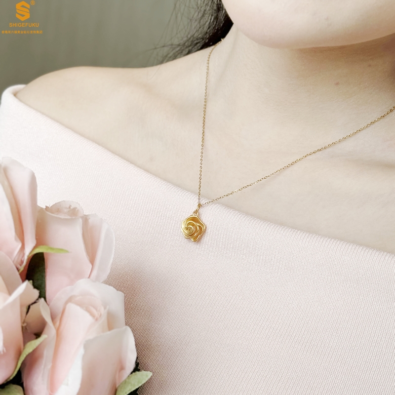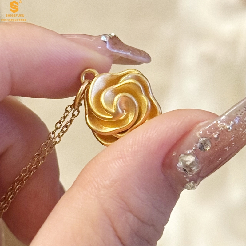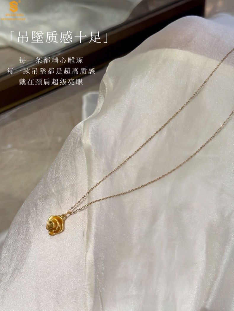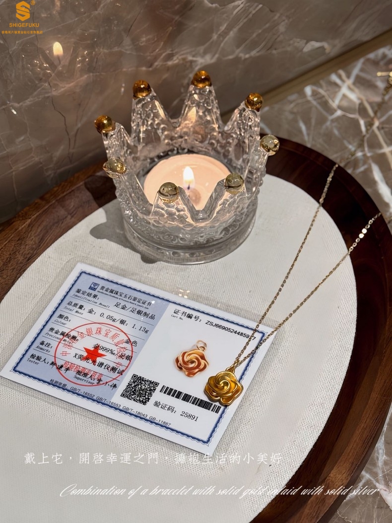 【品名】幸福华语心动玫瑰足金内嵌足银吊坠(附赠K金项链)