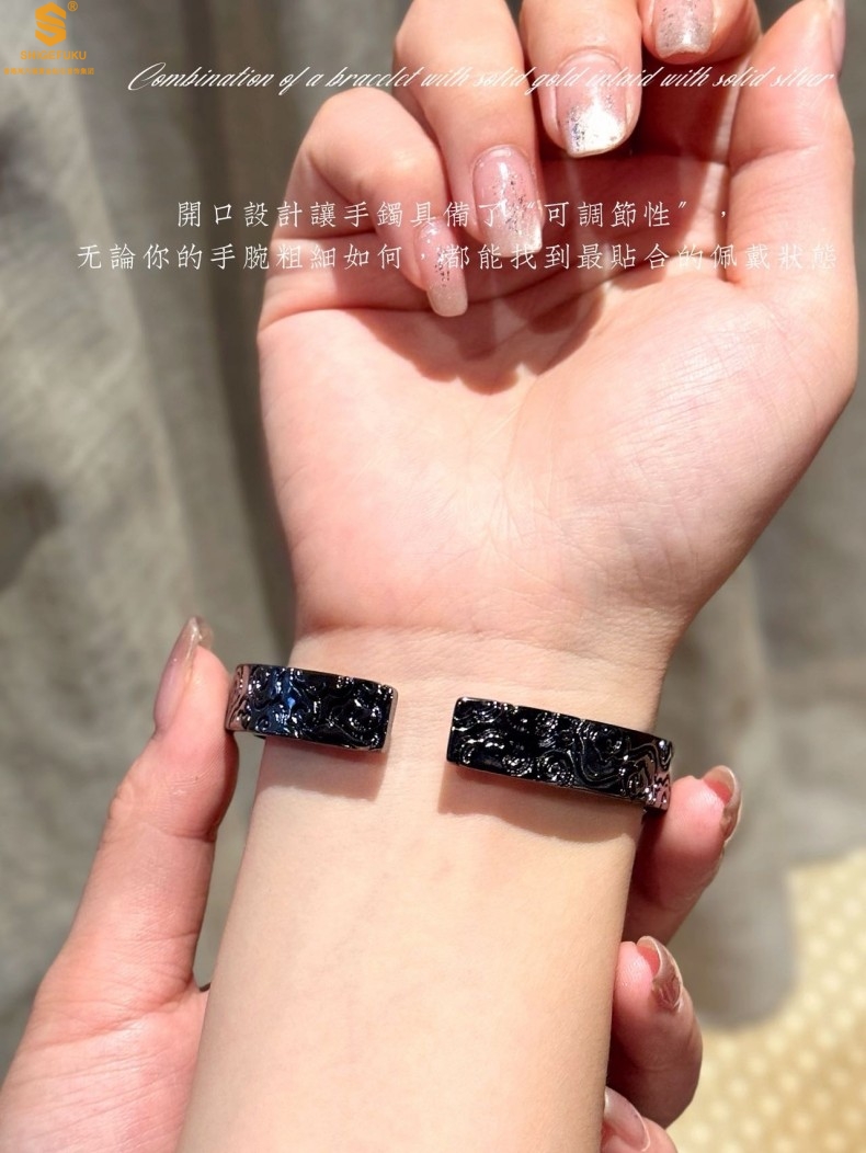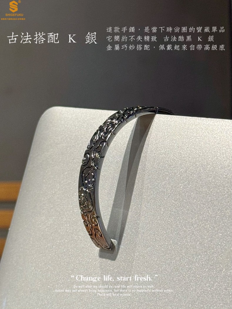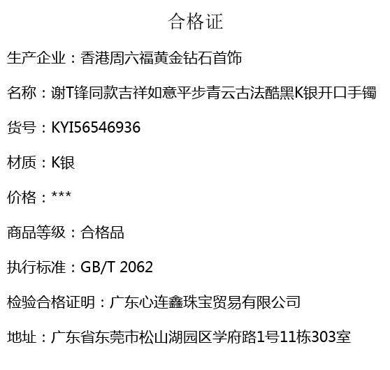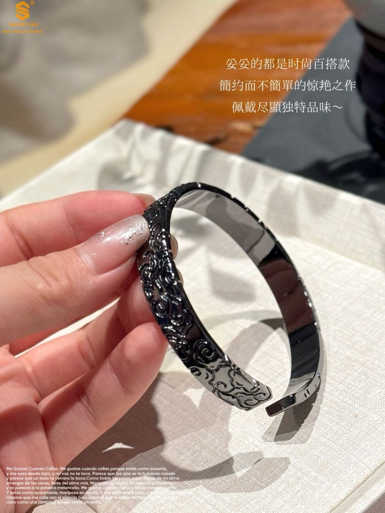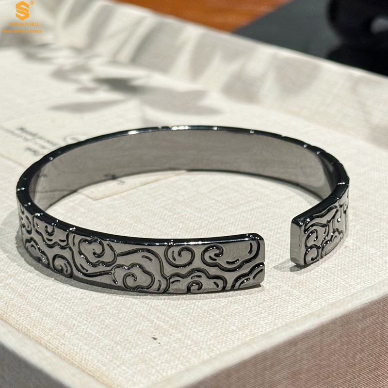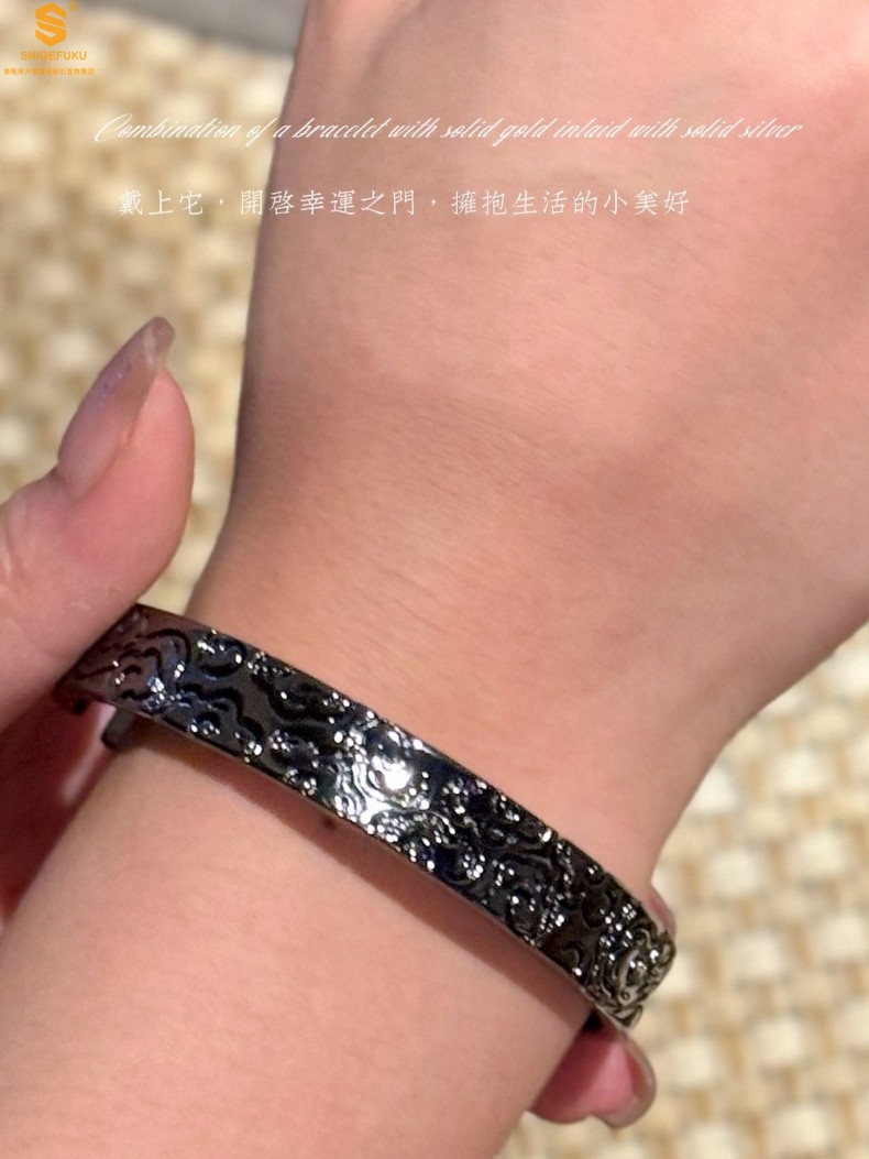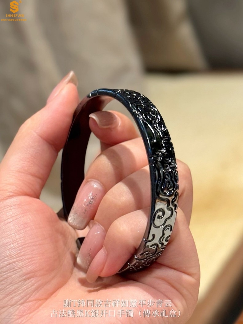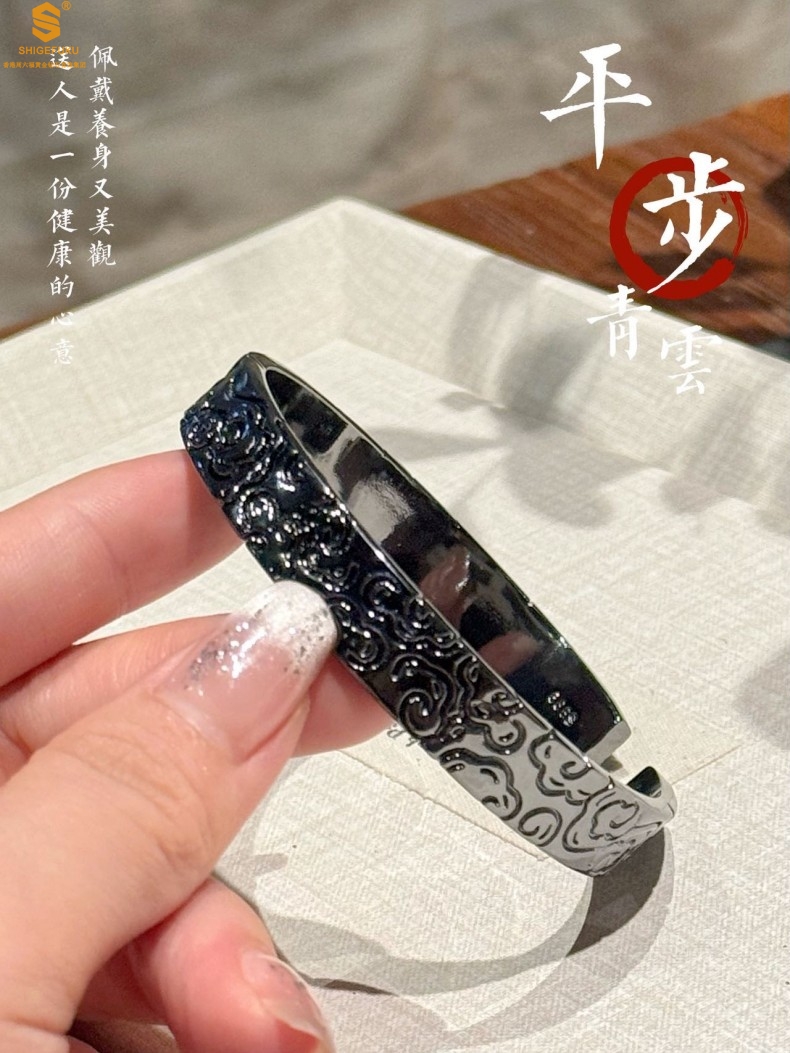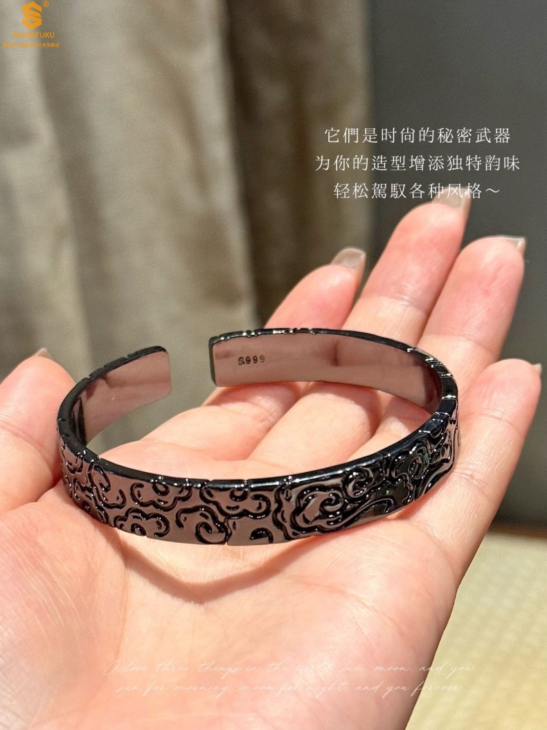 【品名】谢T锋同款吉祥如意平步青云古法酷黑K银开口手镯(传承礼盒)