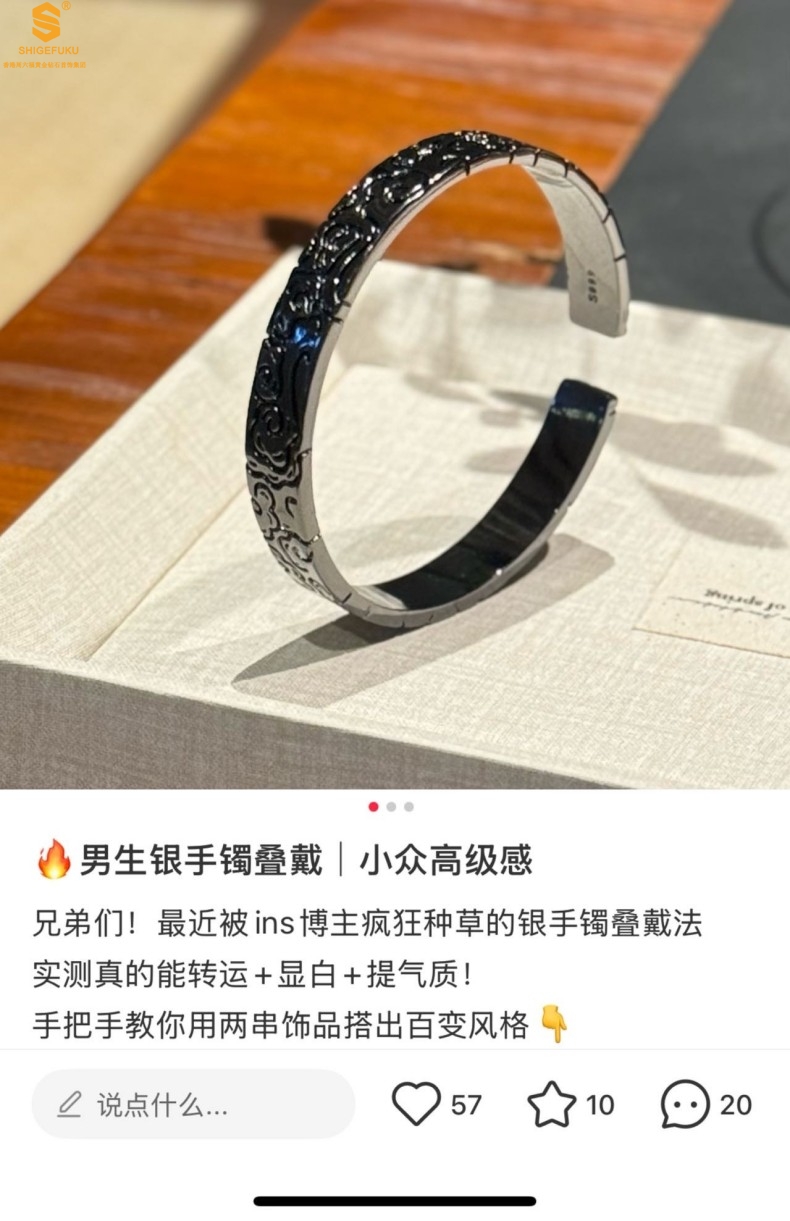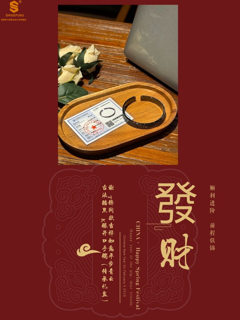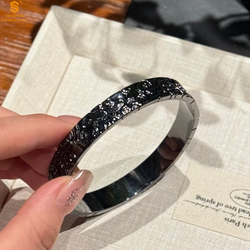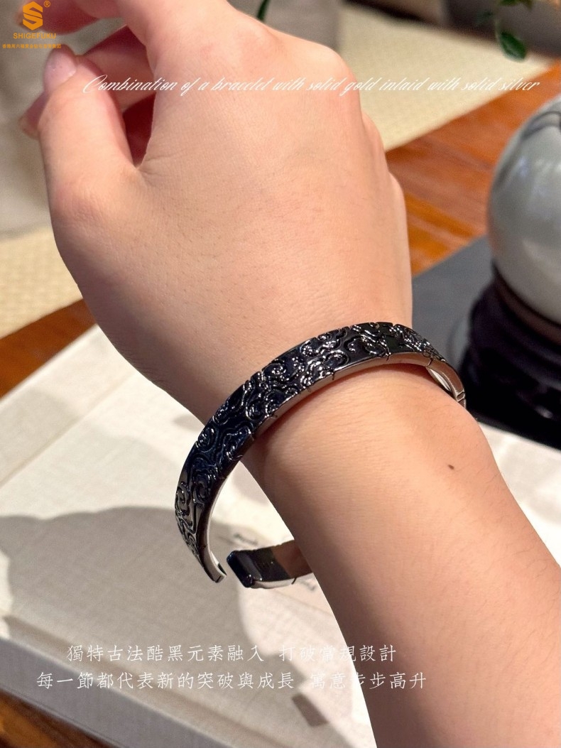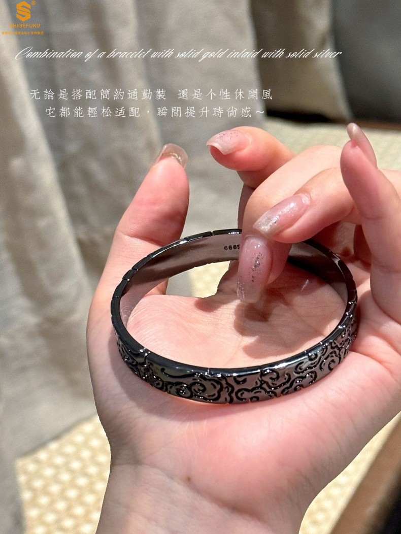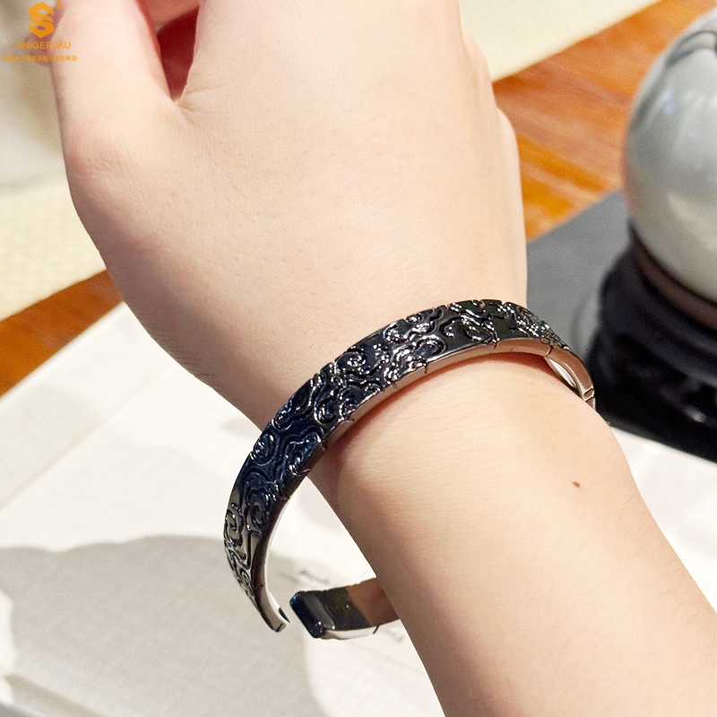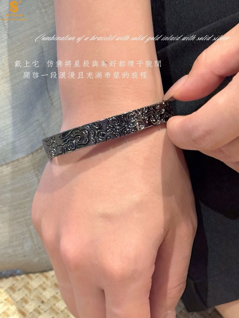 【品名】谢T锋同款吉祥如意平步青云古法酷黑K银开口手镯(传承礼盒)
