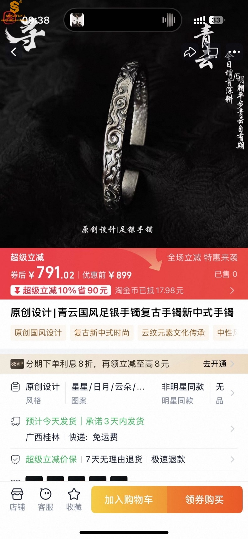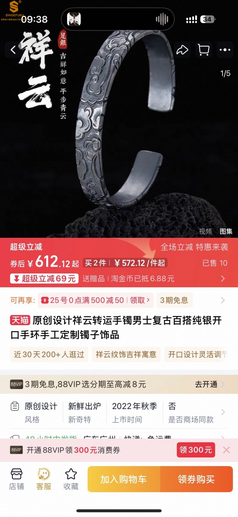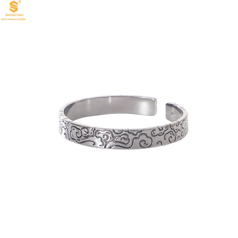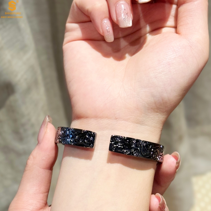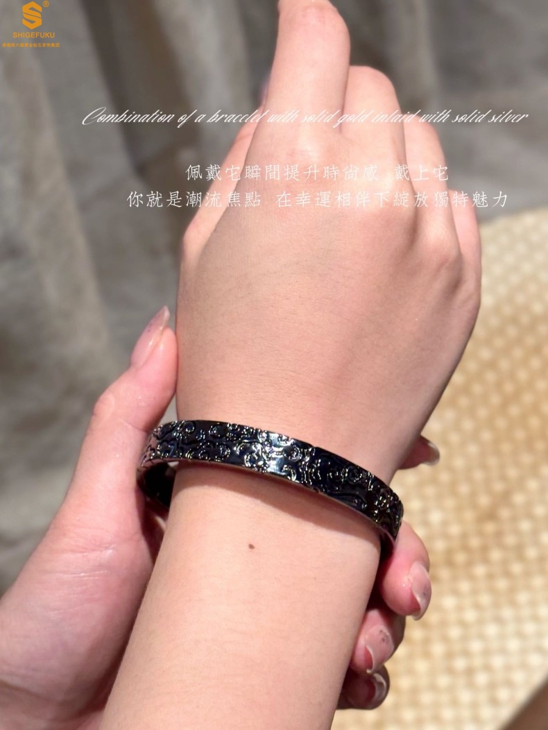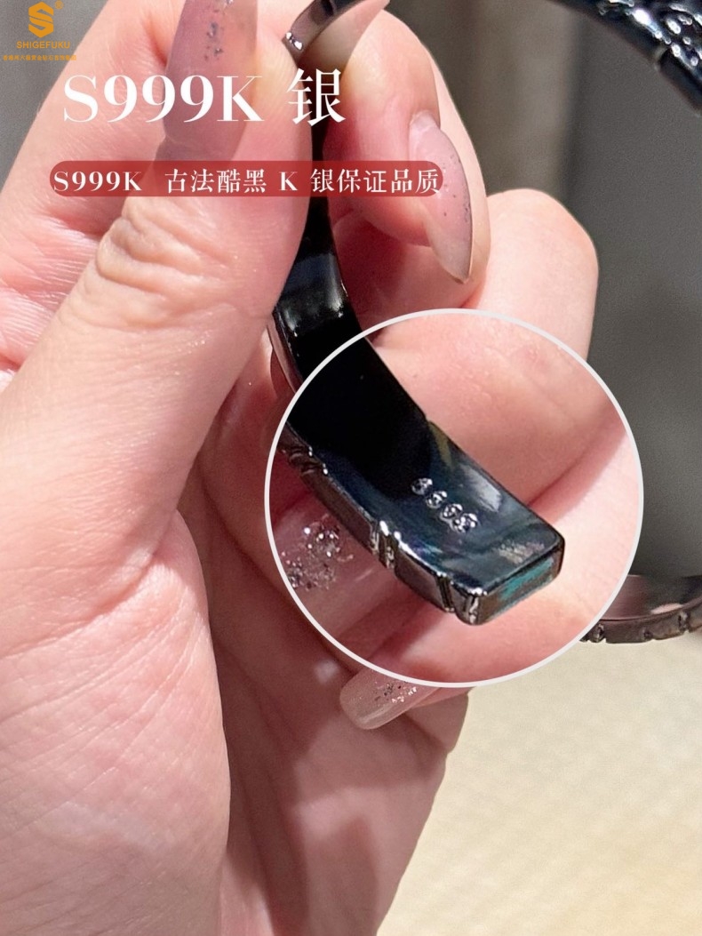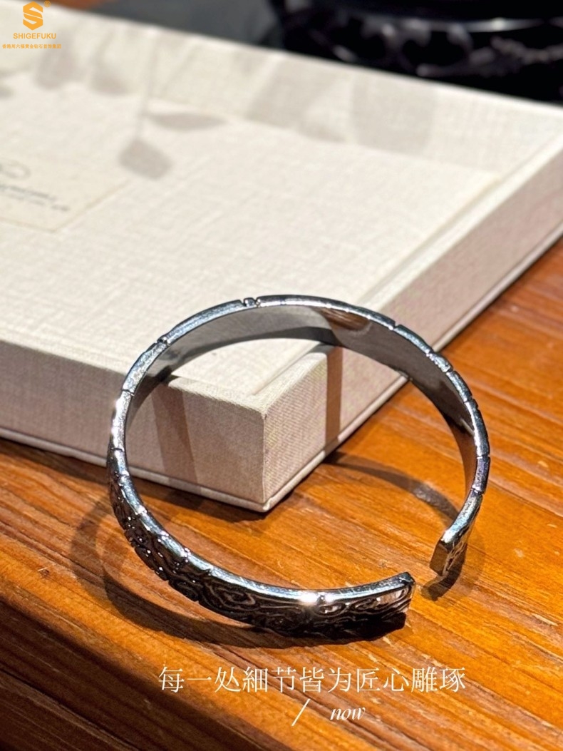 【品名】谢T锋同款吉祥如意平步青云古法酷黑K银开口手镯(传承礼盒)