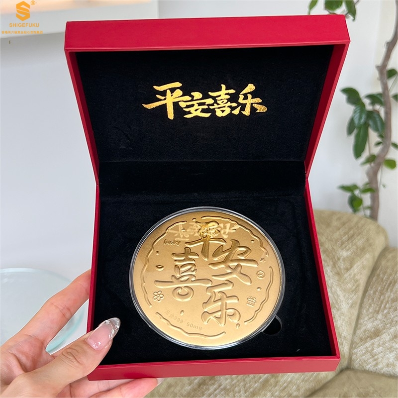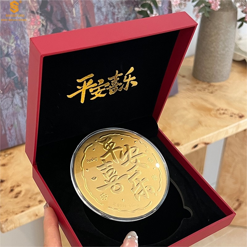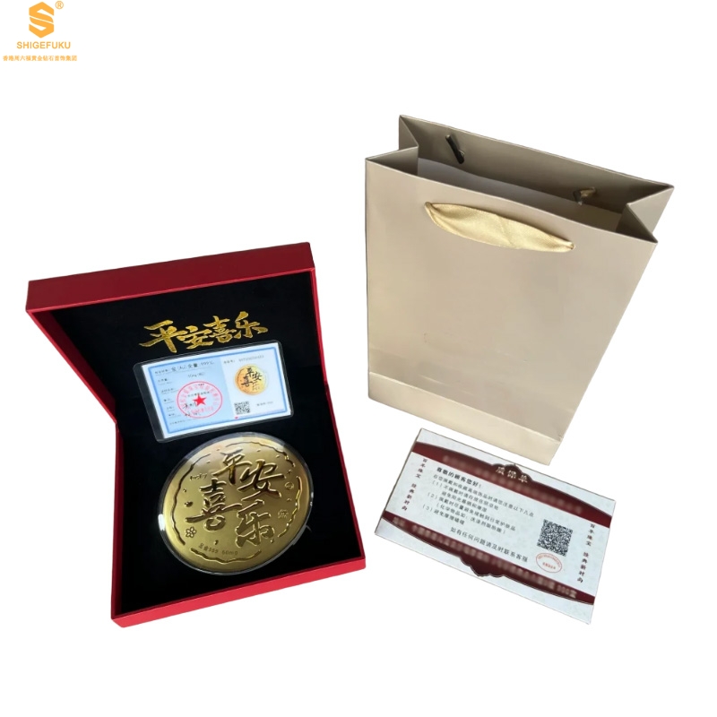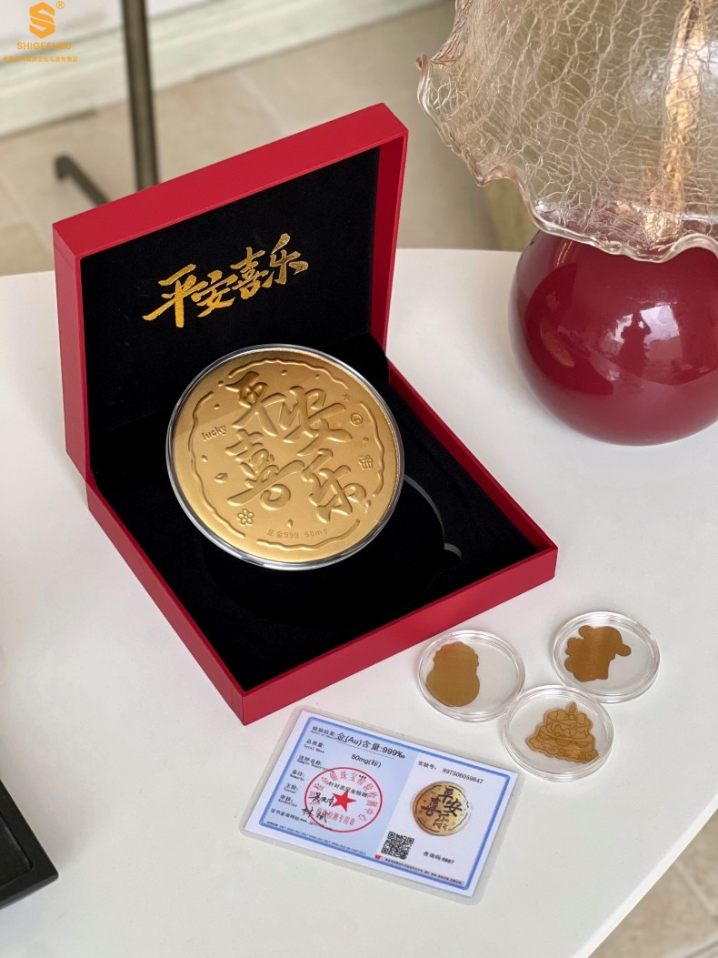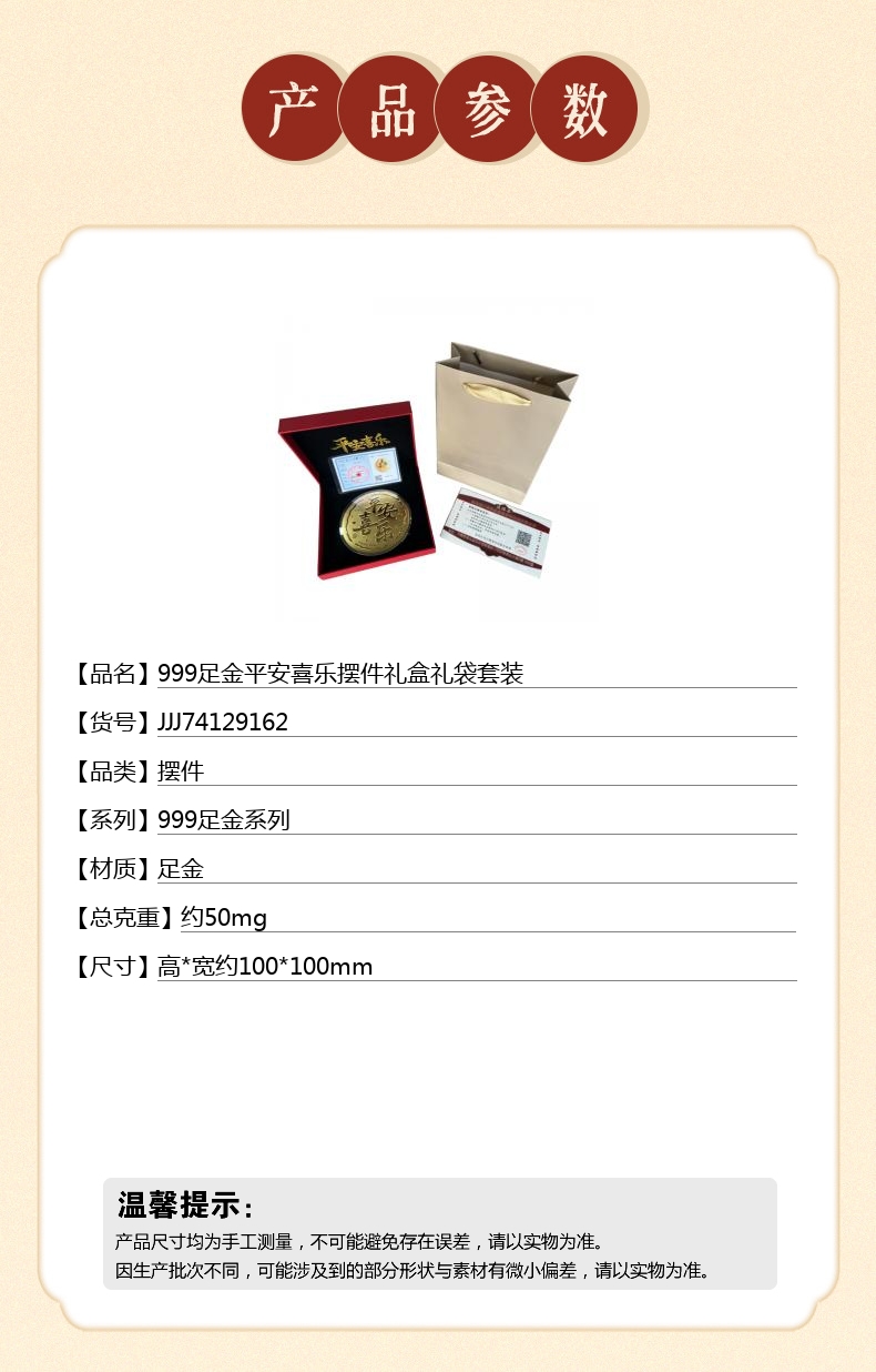 【品名】999足金平安喜乐摆件礼盒礼袋套装