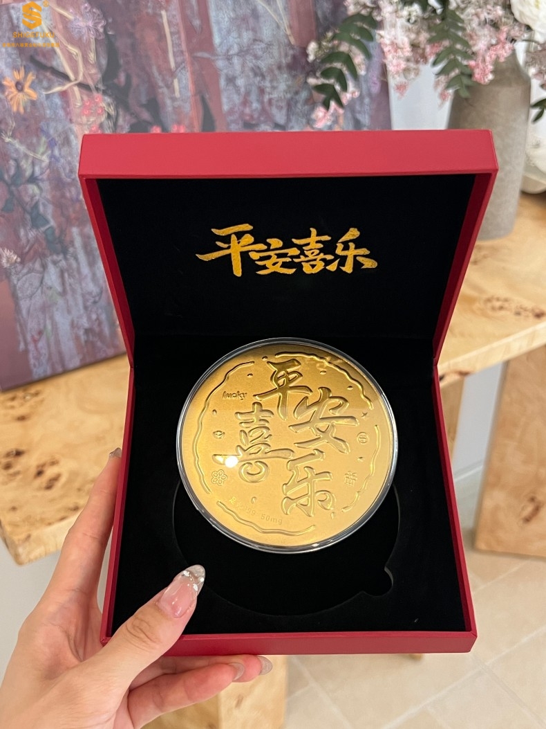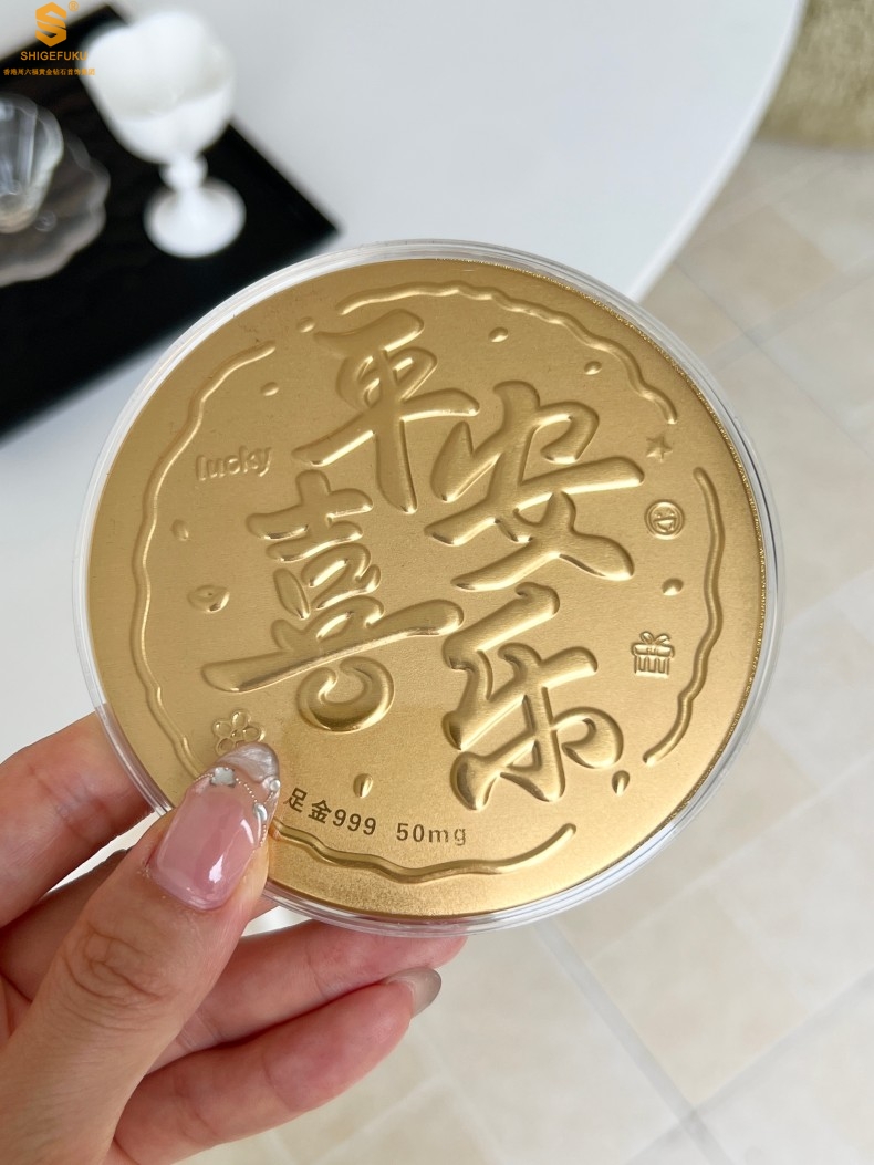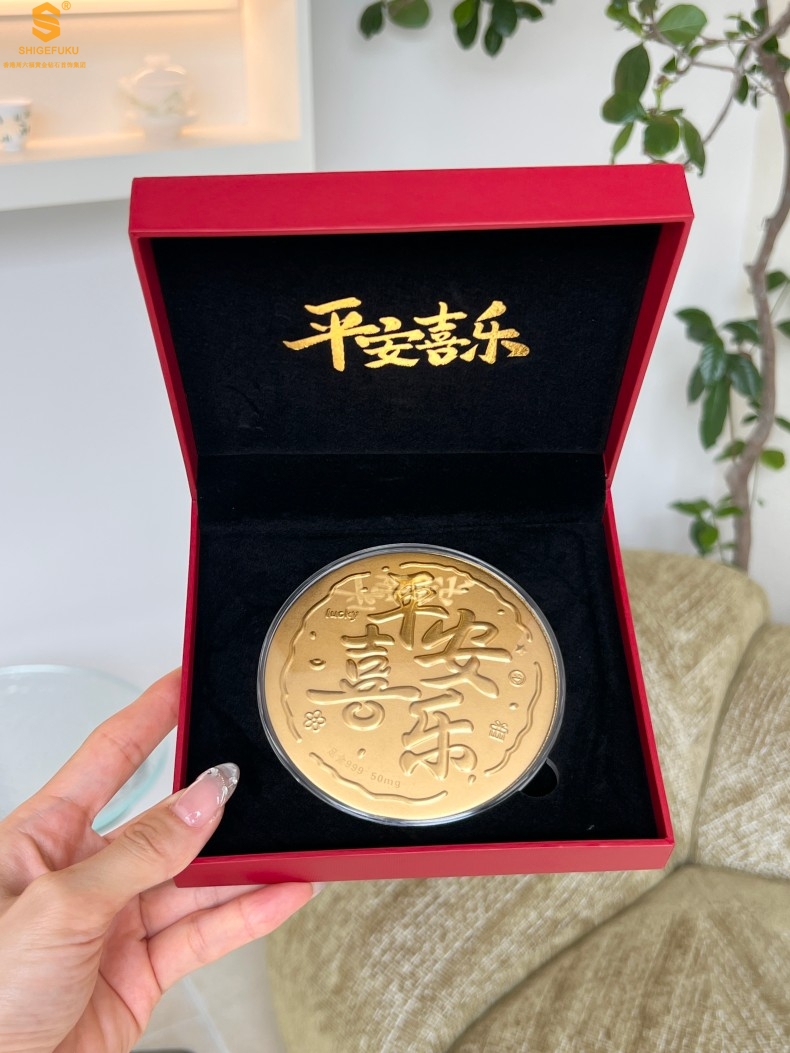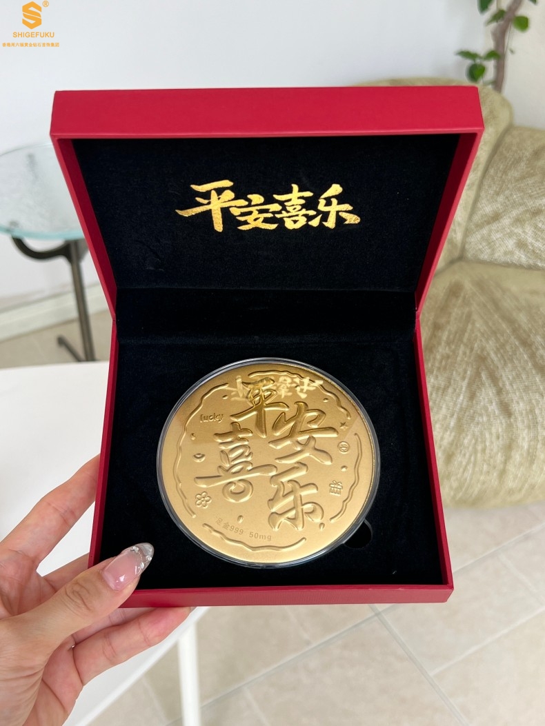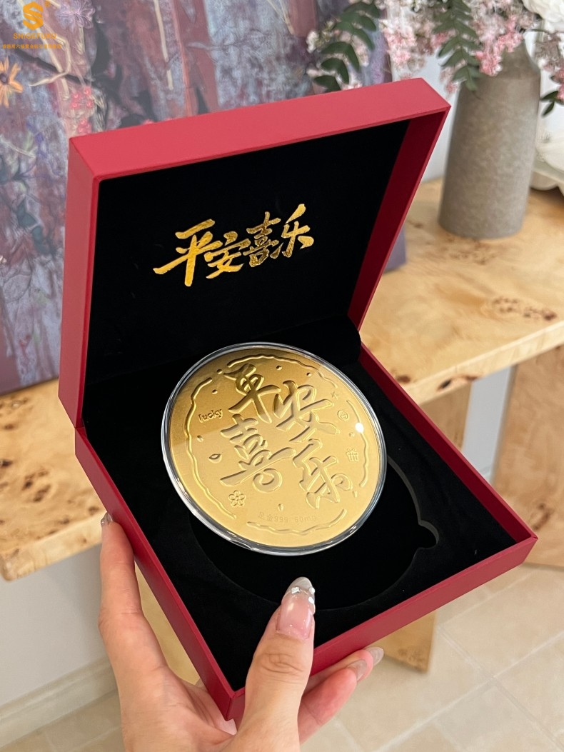 【品名】999足金平安喜乐摆件礼盒礼袋套装