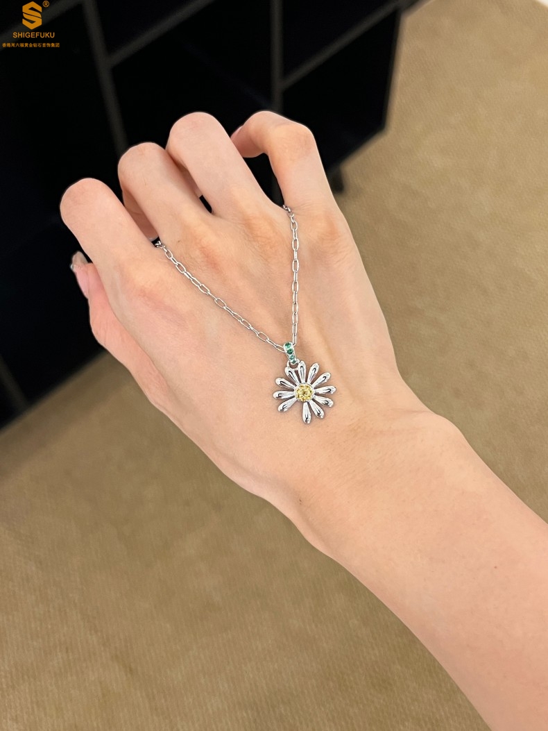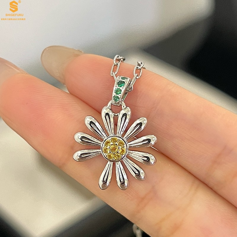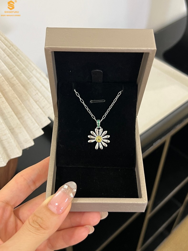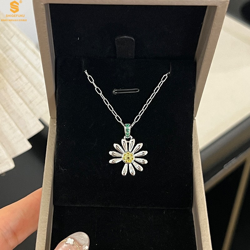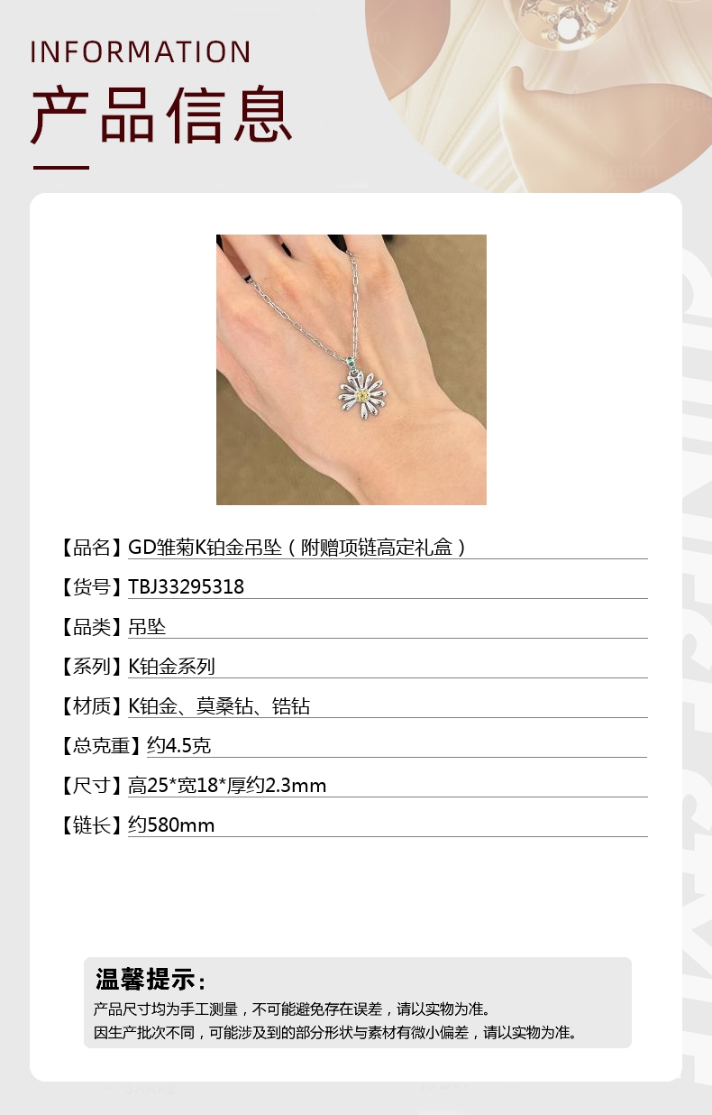 【品名】GD雏菊K铂金吊坠(附赠项链高定礼盒)