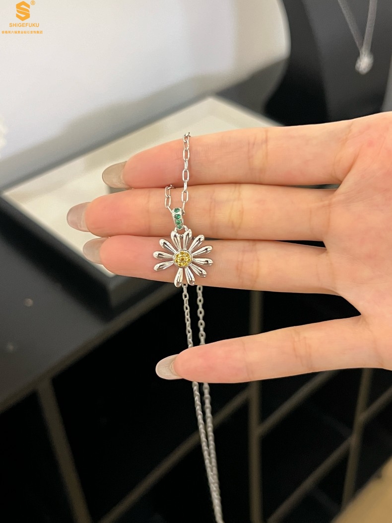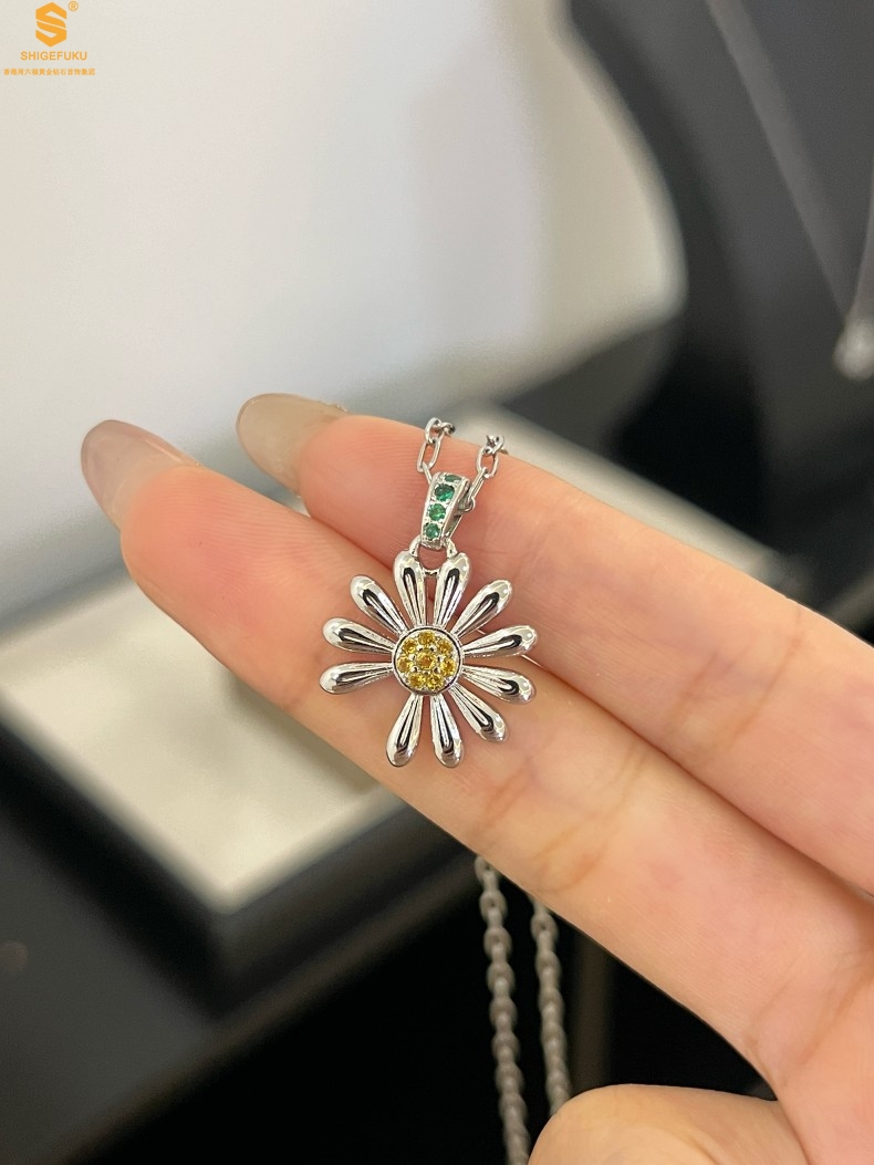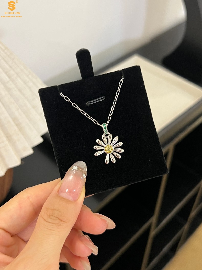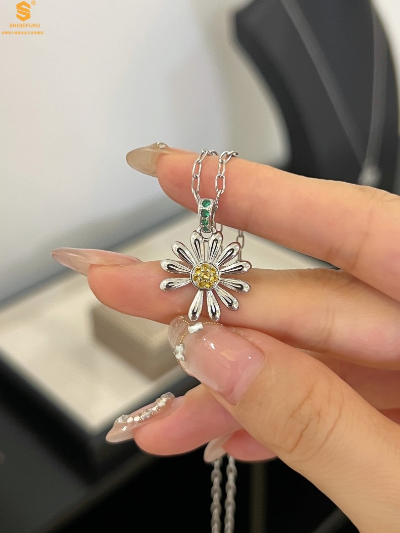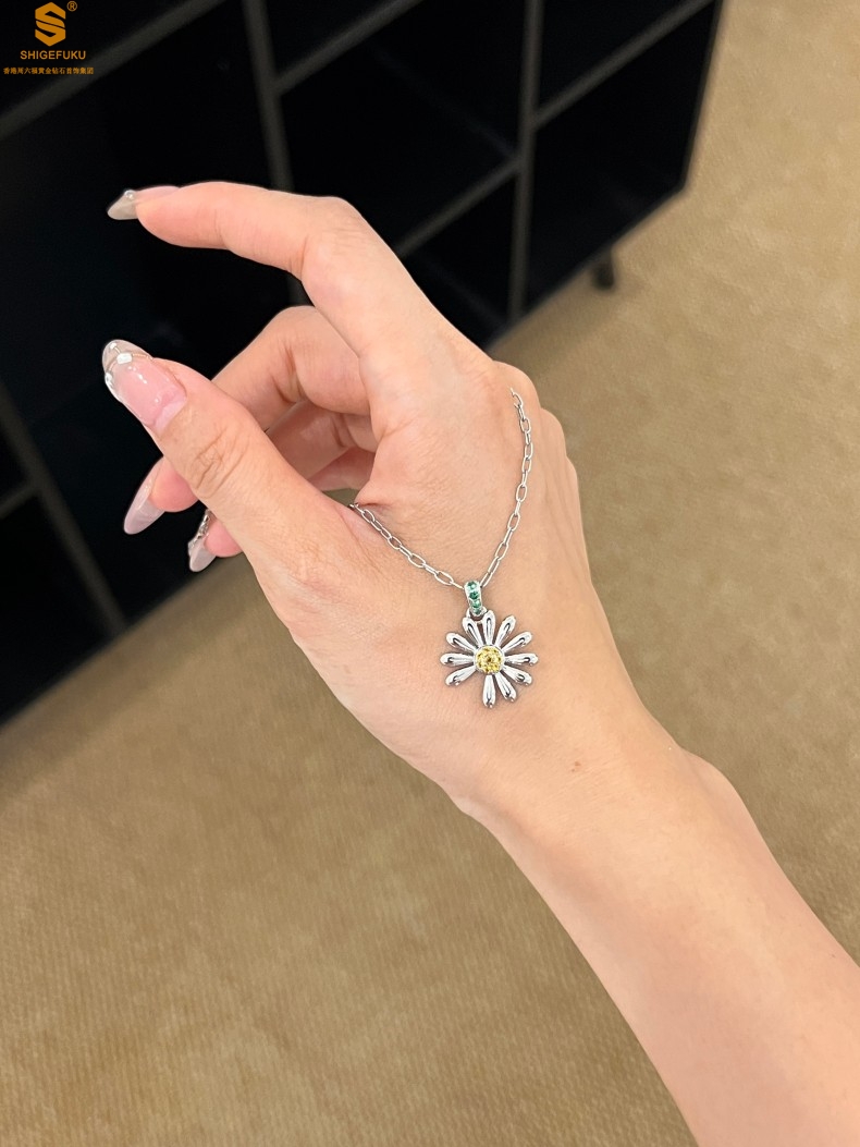 【品名】GD雏菊K铂金吊坠(附赠项链高定礼盒)