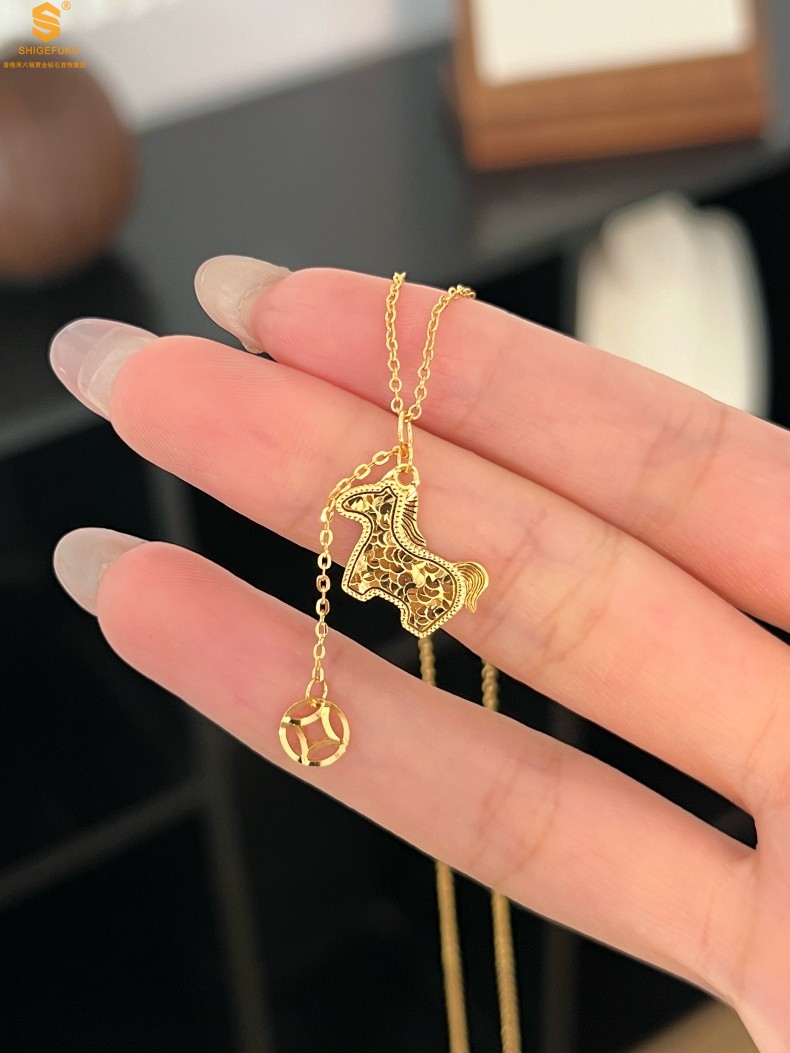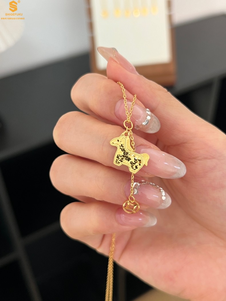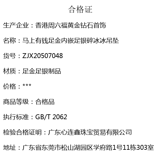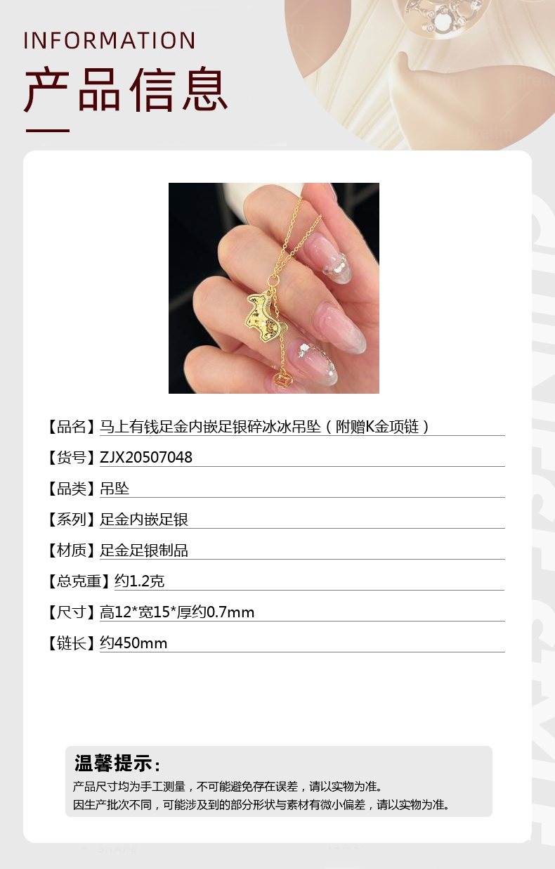 【品名】马上有钱足金内嵌足银碎冰冰吊坠(附赠K金项链)