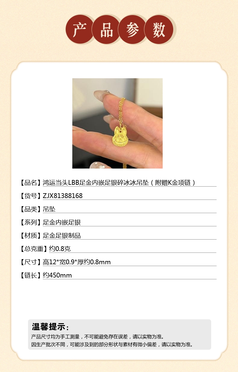 【品名】鸿运当头LBB足金内嵌足银碎冰冰吊坠(附赠K金项链)