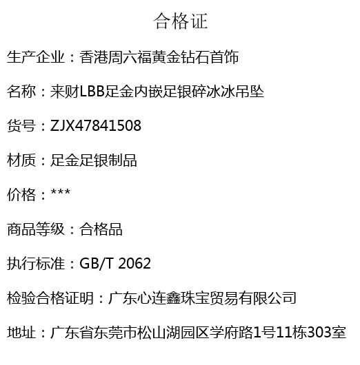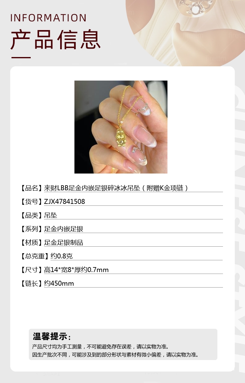 【品名】来财LBB足金内嵌足银碎冰冰吊坠(附赠K金项链)