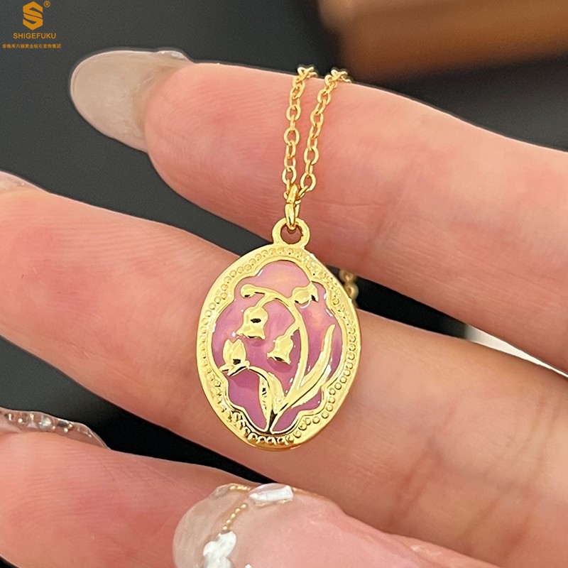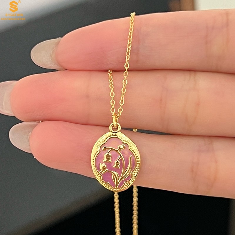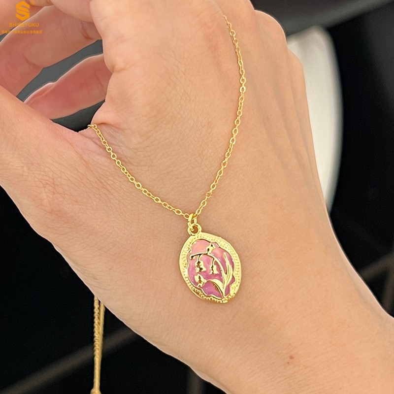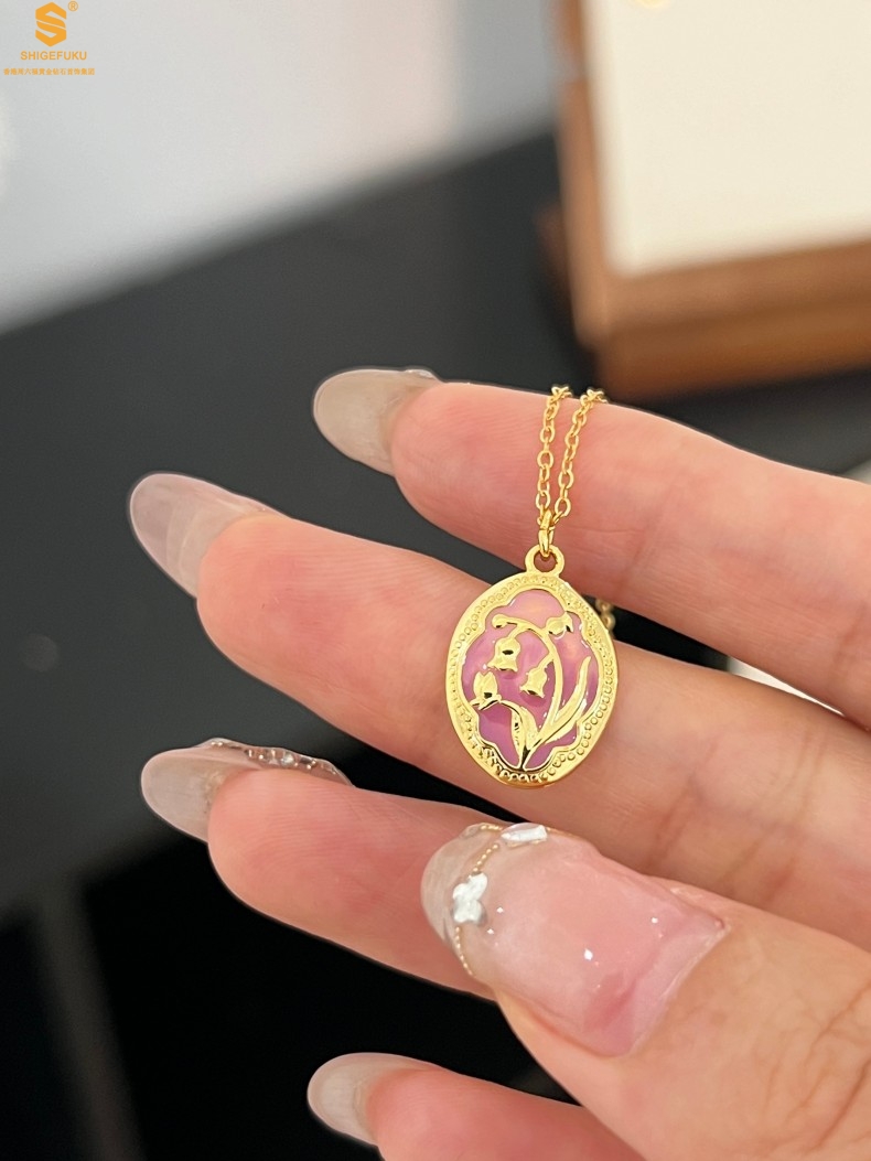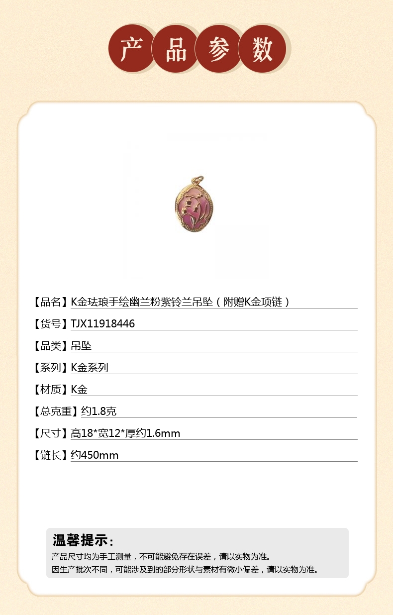 【品名】K金珐琅手绘幽兰粉紫铃兰吊坠(附赠K金项链)