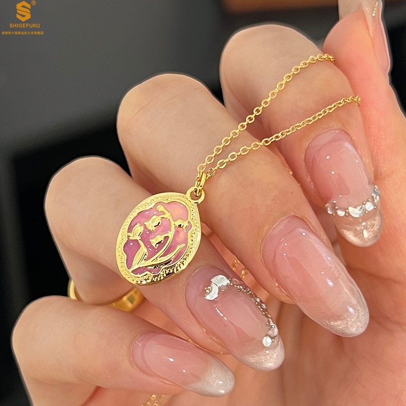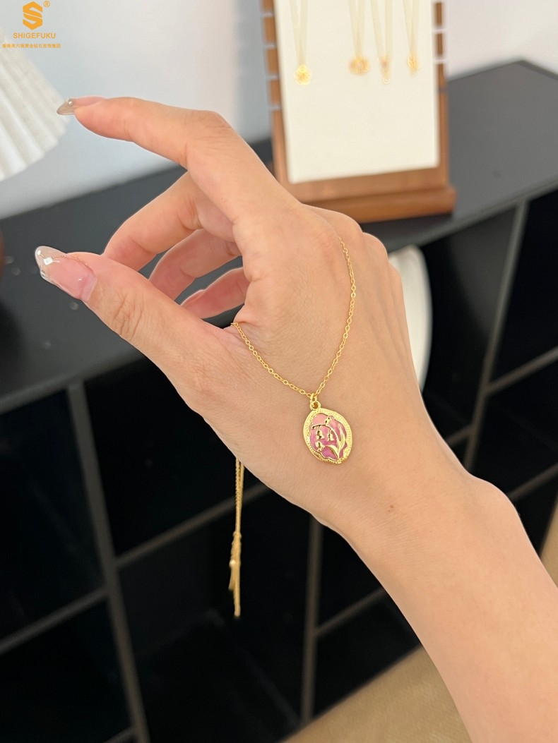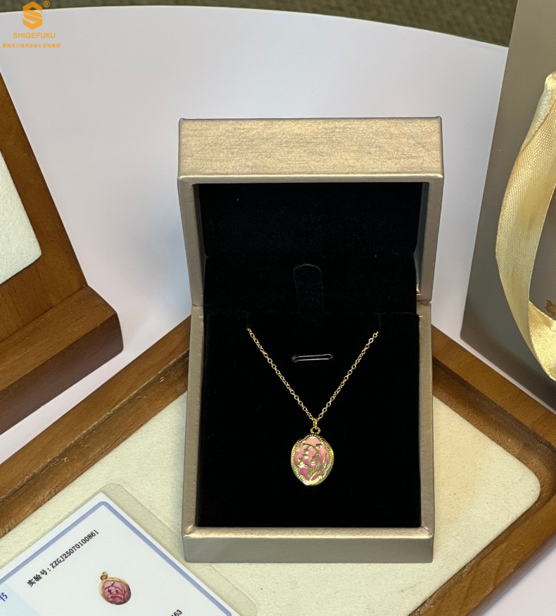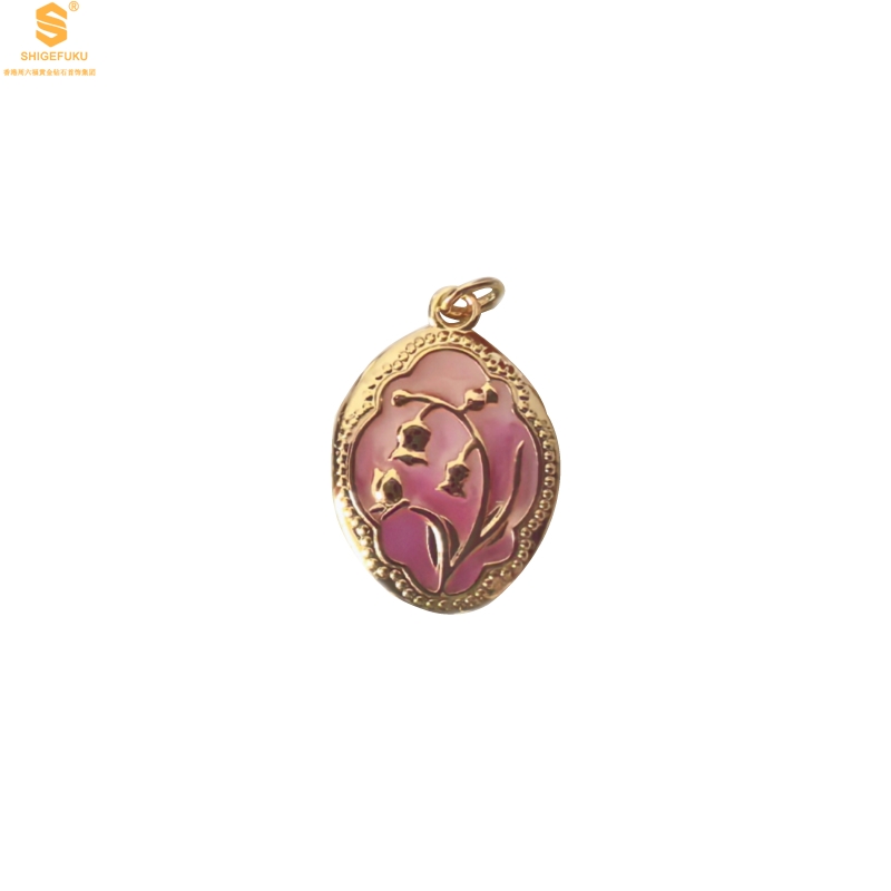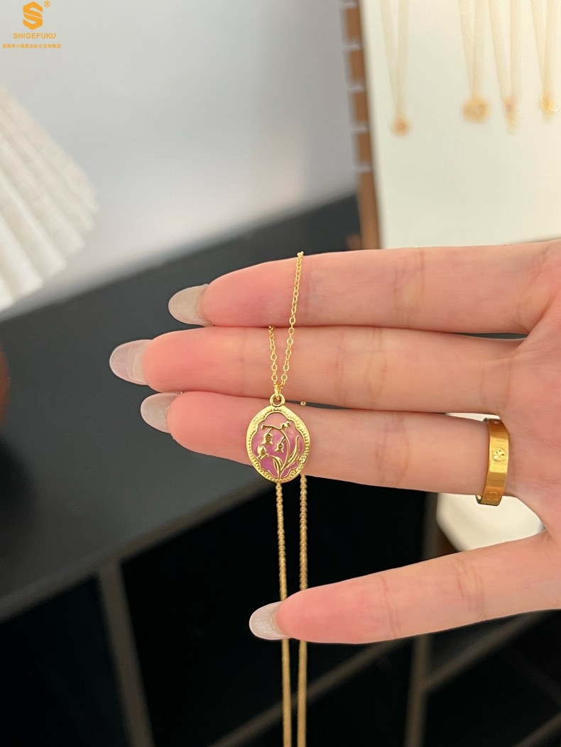 【品名】K金珐琅手绘幽兰粉紫铃兰吊坠(附赠K金项链)