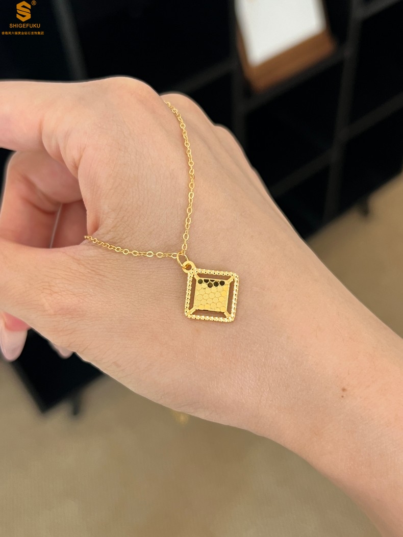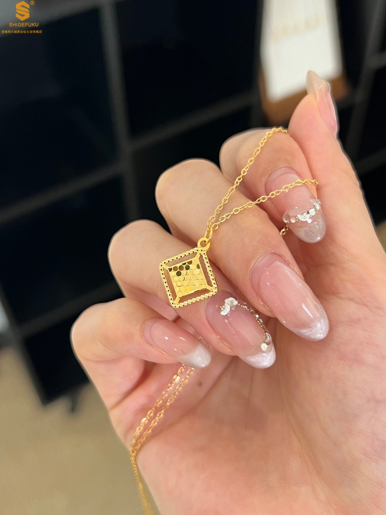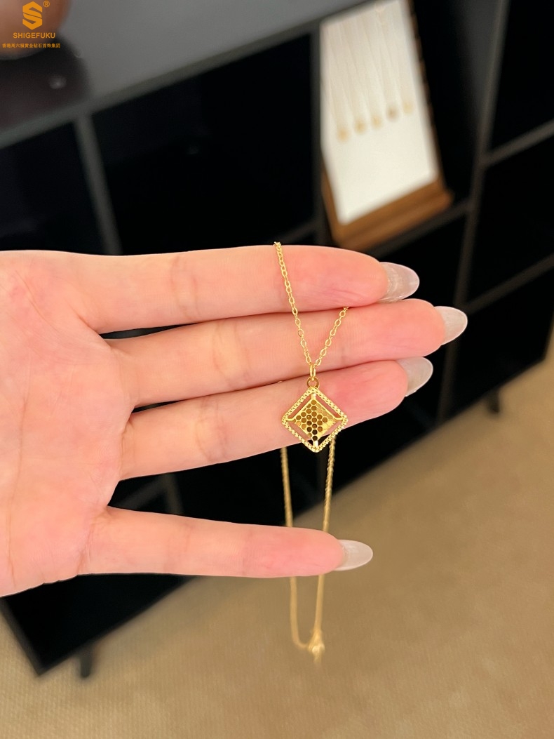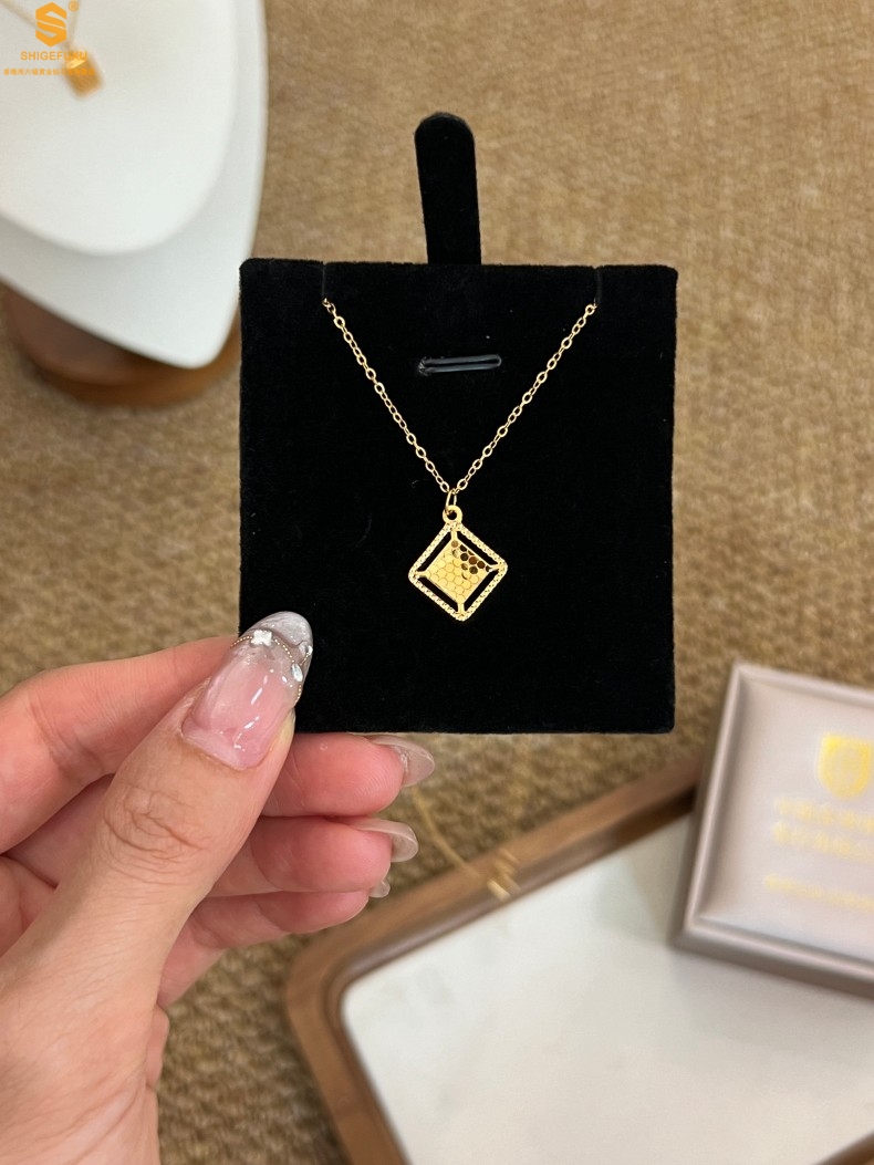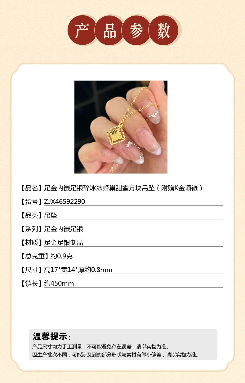 【品名】足金内嵌足银碎冰冰蜂巢甜蜜方块吊坠(附赠K金项链)