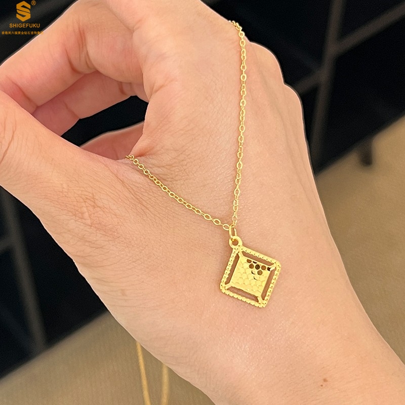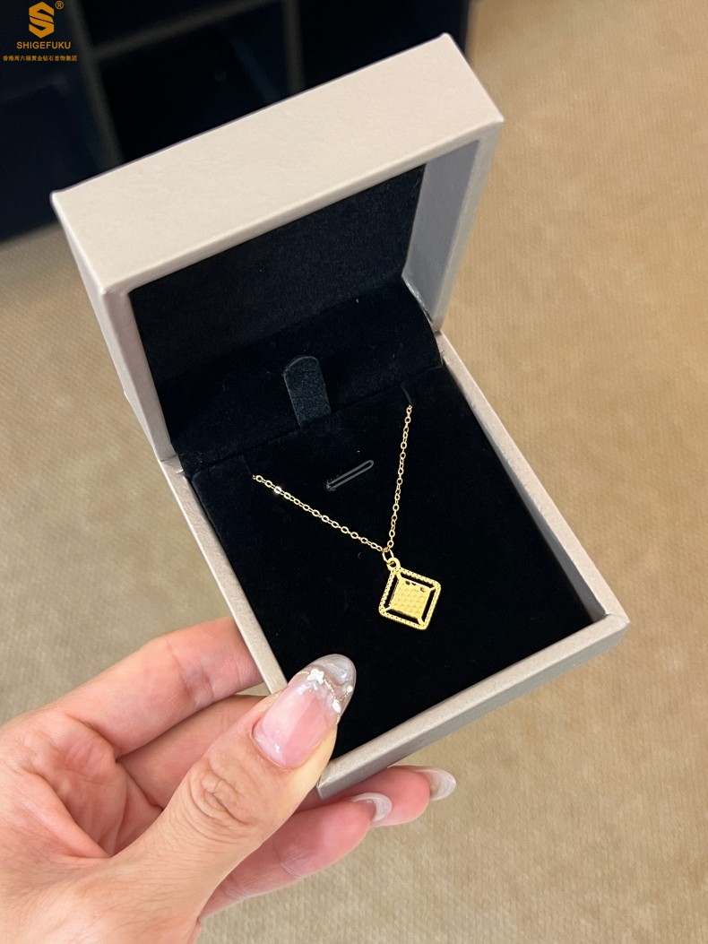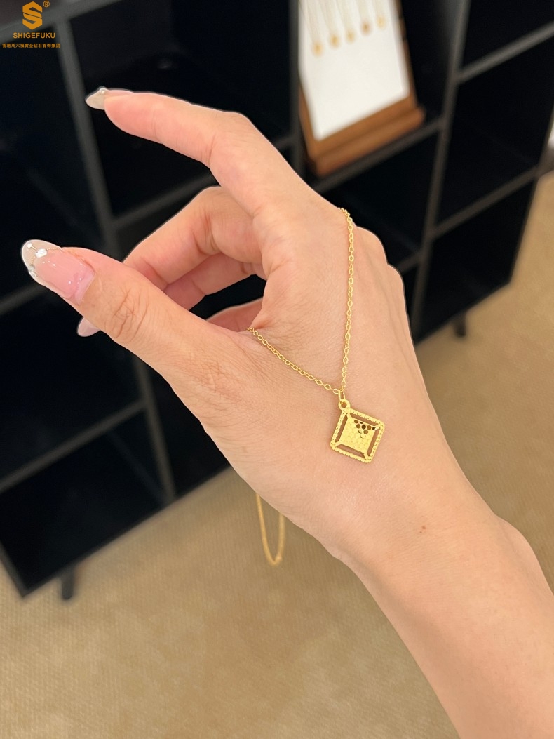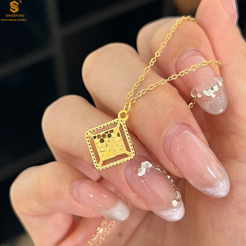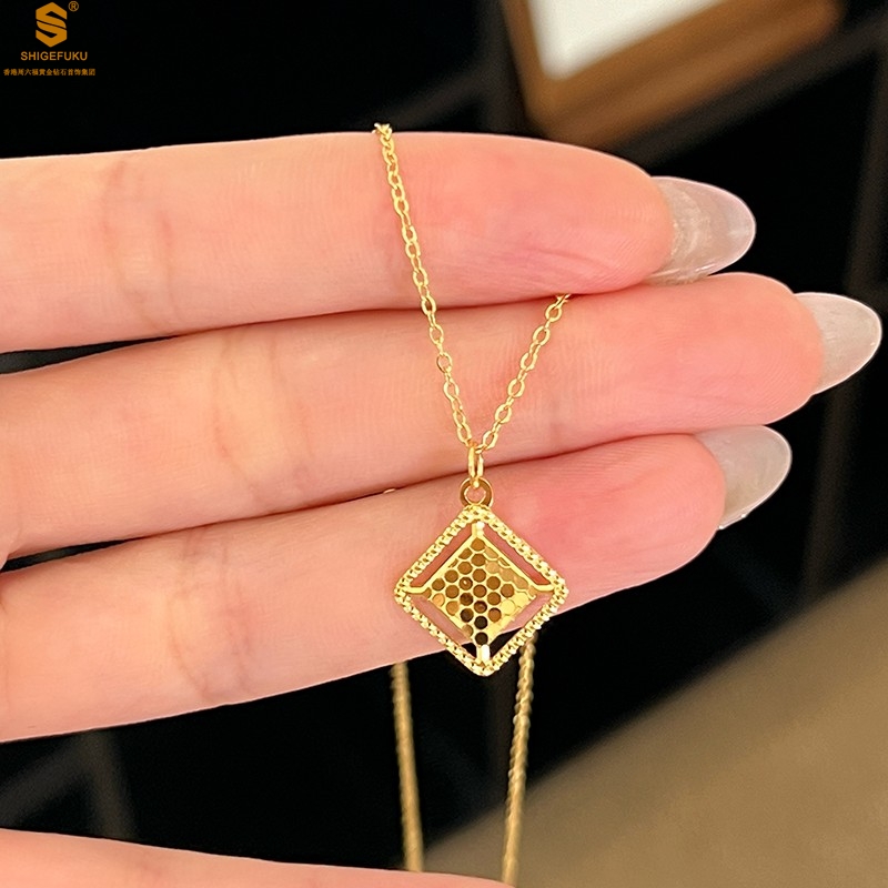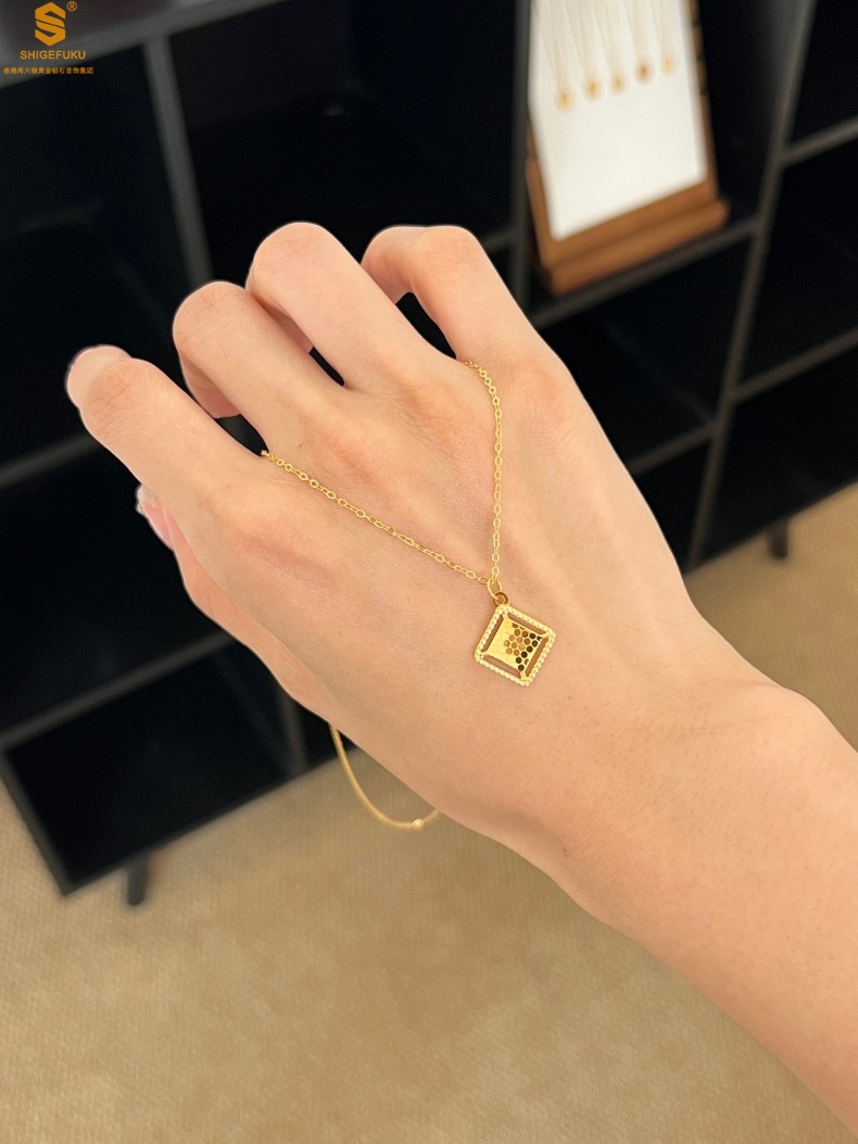 【品名】足金内嵌足银碎冰冰蜂巢甜蜜方块吊坠(附赠K金项链)