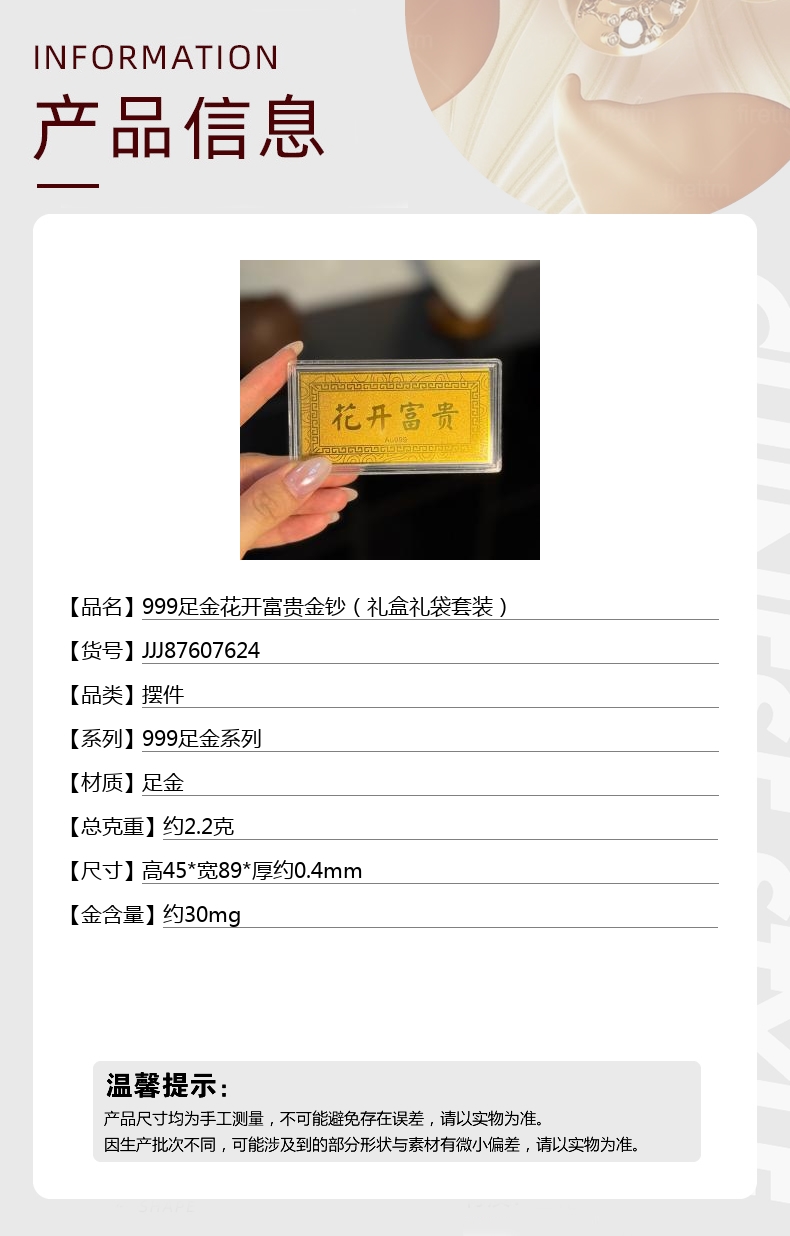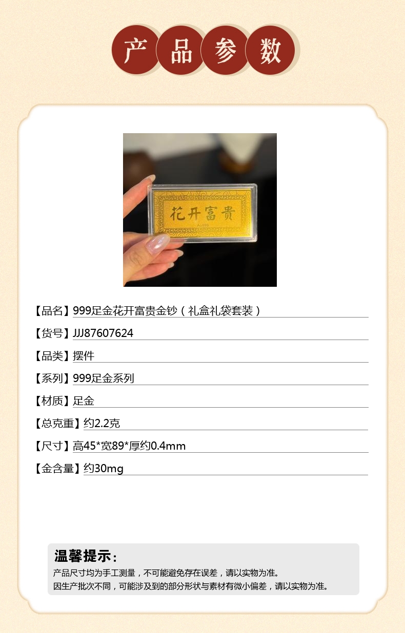【品名】999足金花开富贵金钞(礼盒礼袋套装)