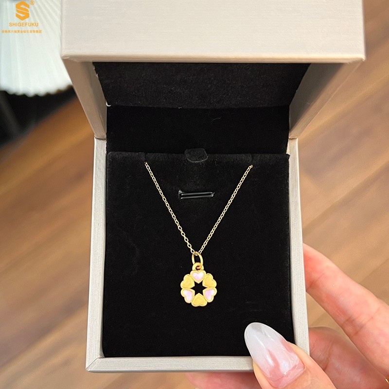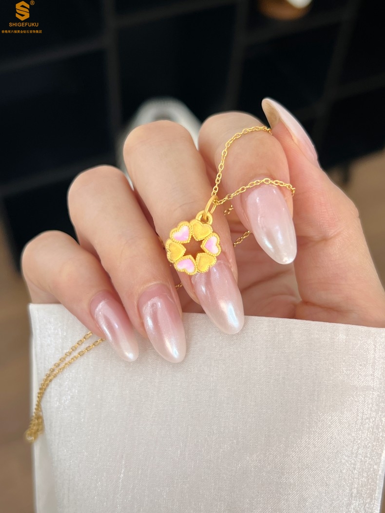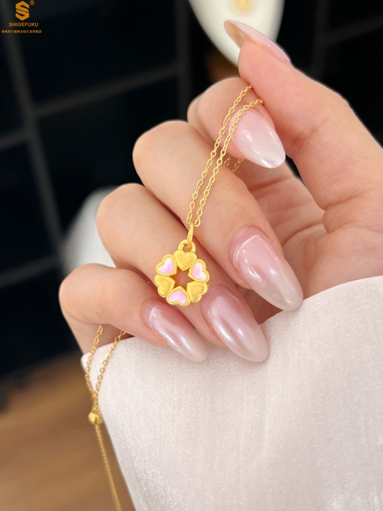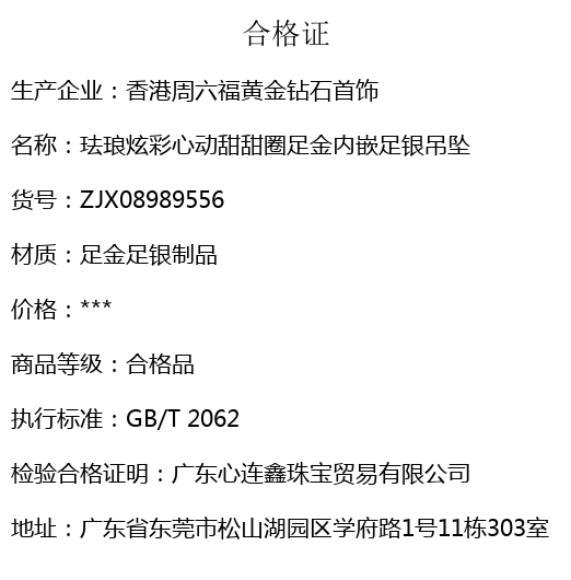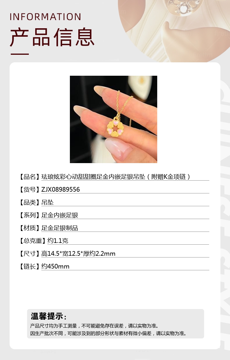 【品名】珐琅炫彩心动甜甜圈足金内嵌足银吊坠(附赠K金项链)
