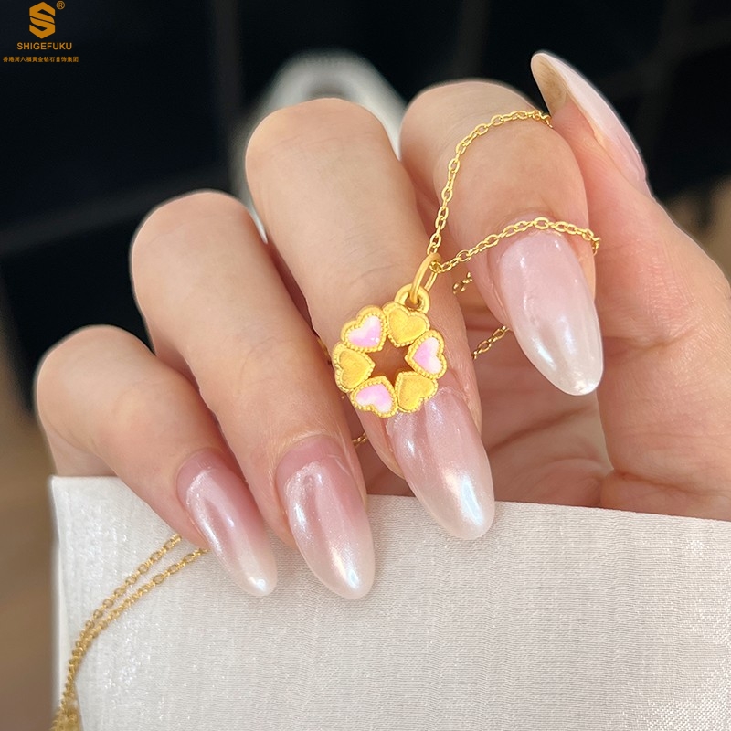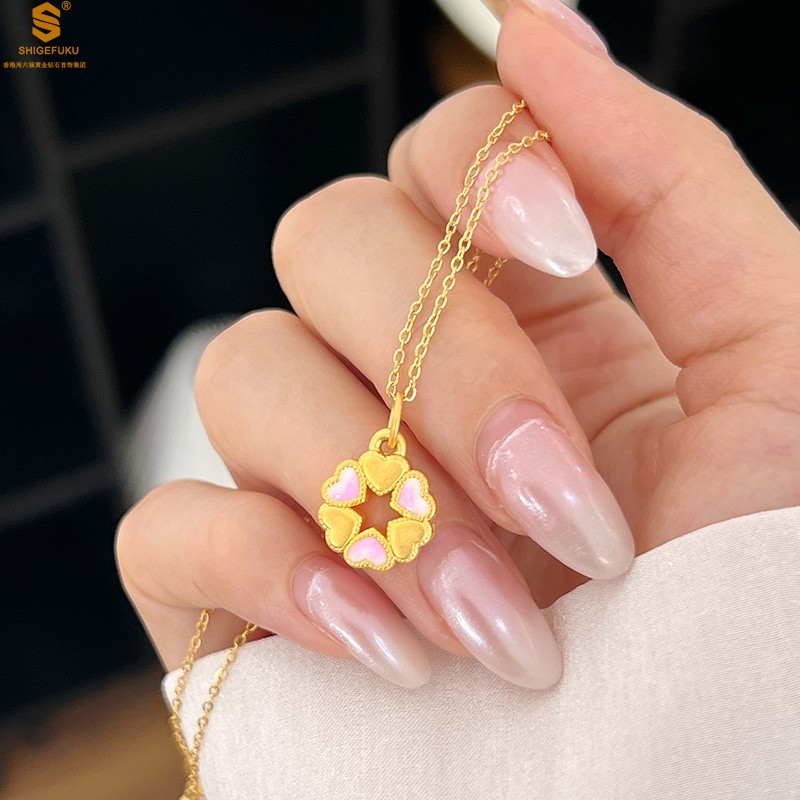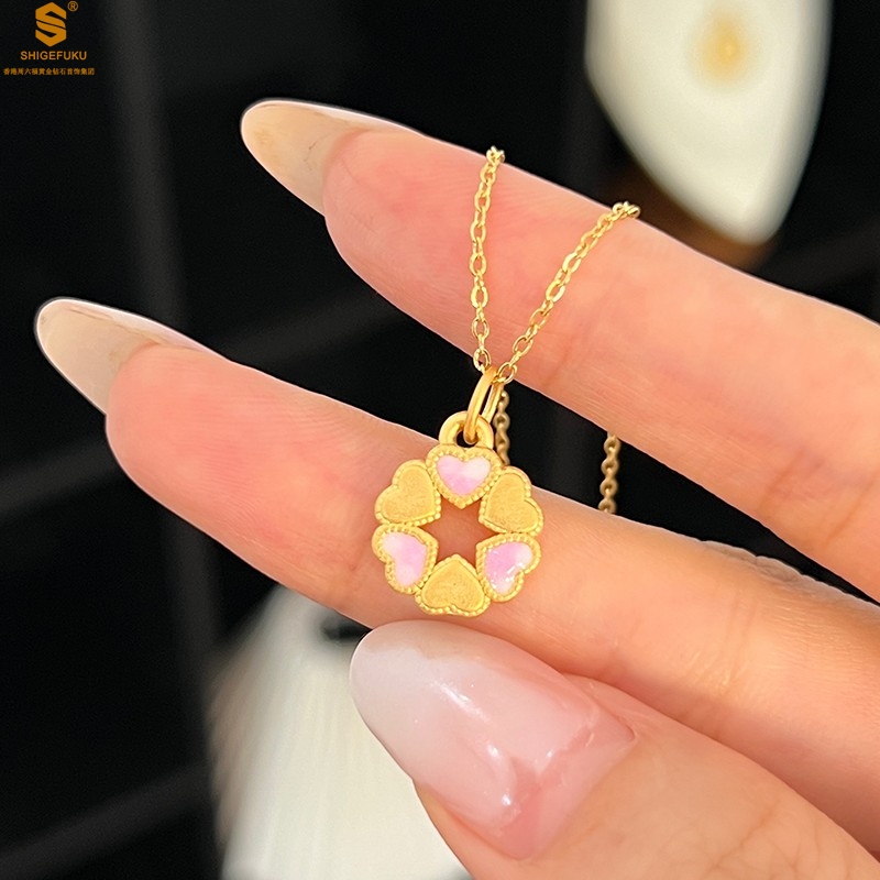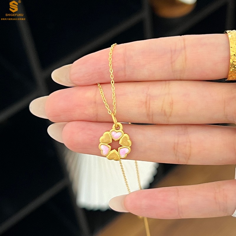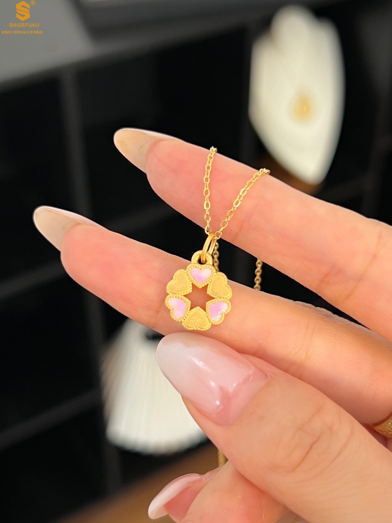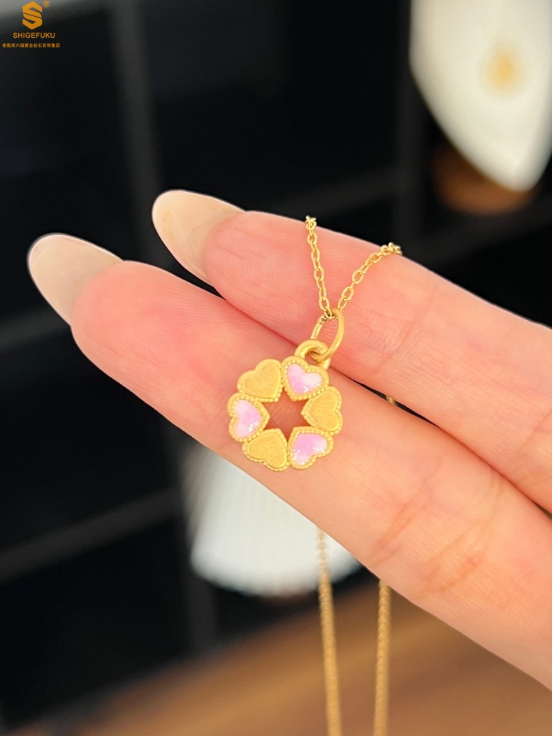 【品名】珐琅炫彩心动甜甜圈足金内嵌足银吊坠(附赠K金项链)