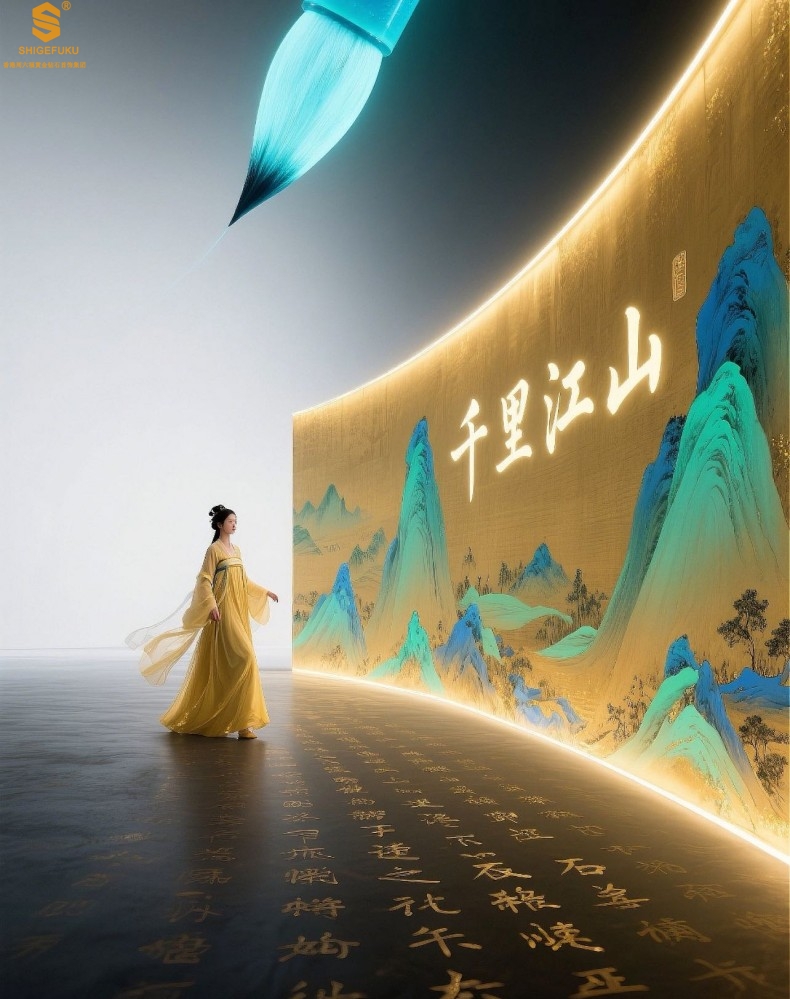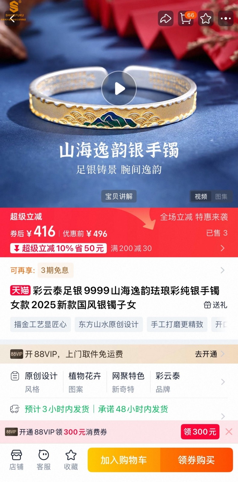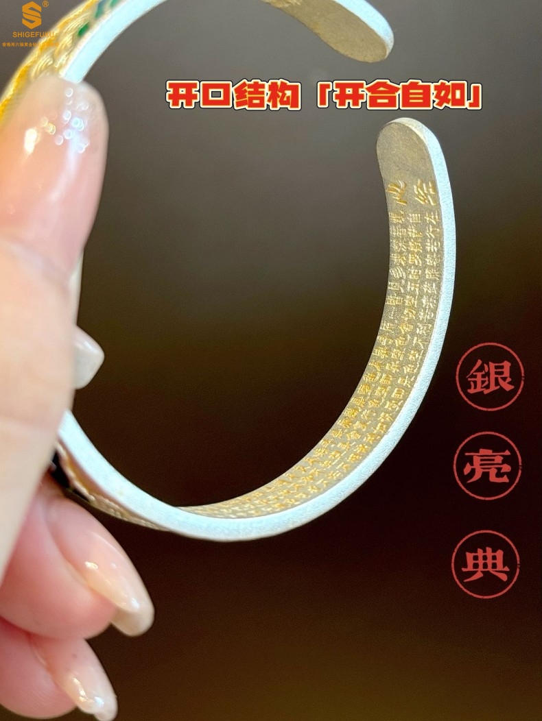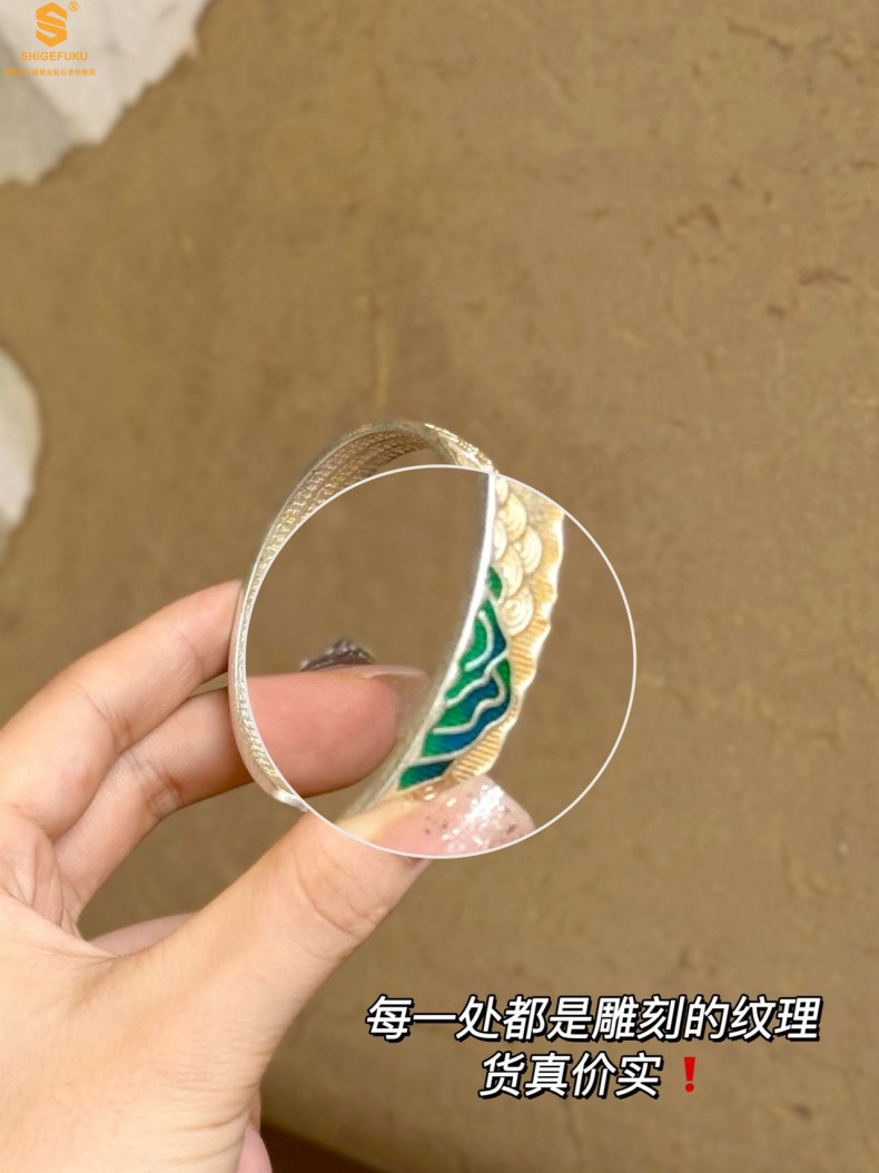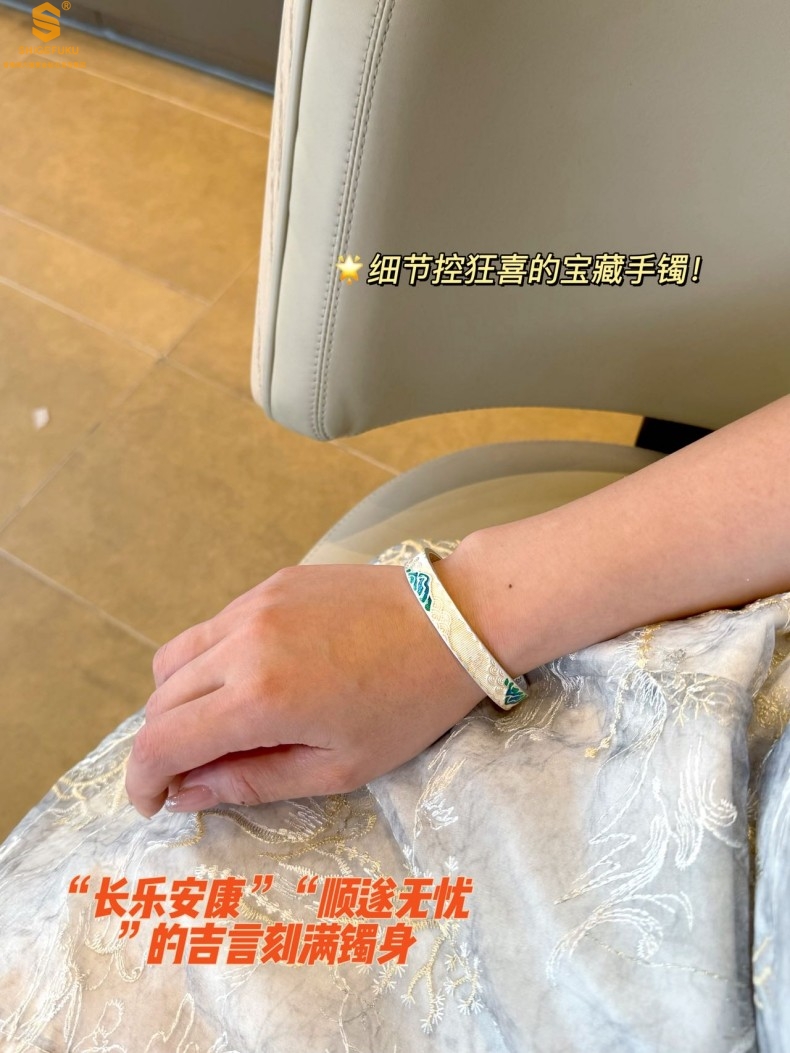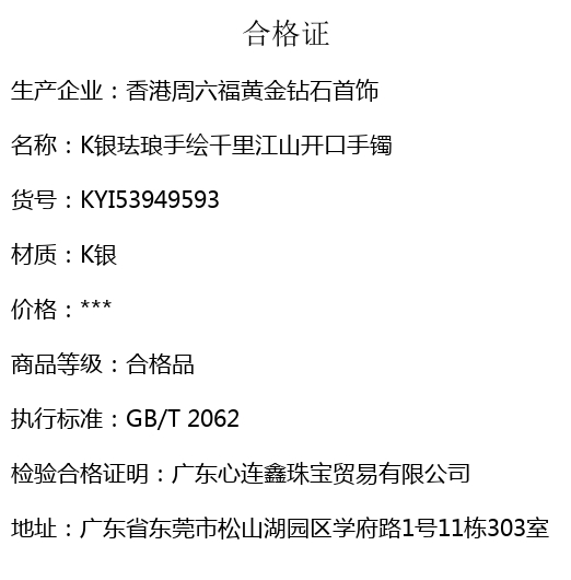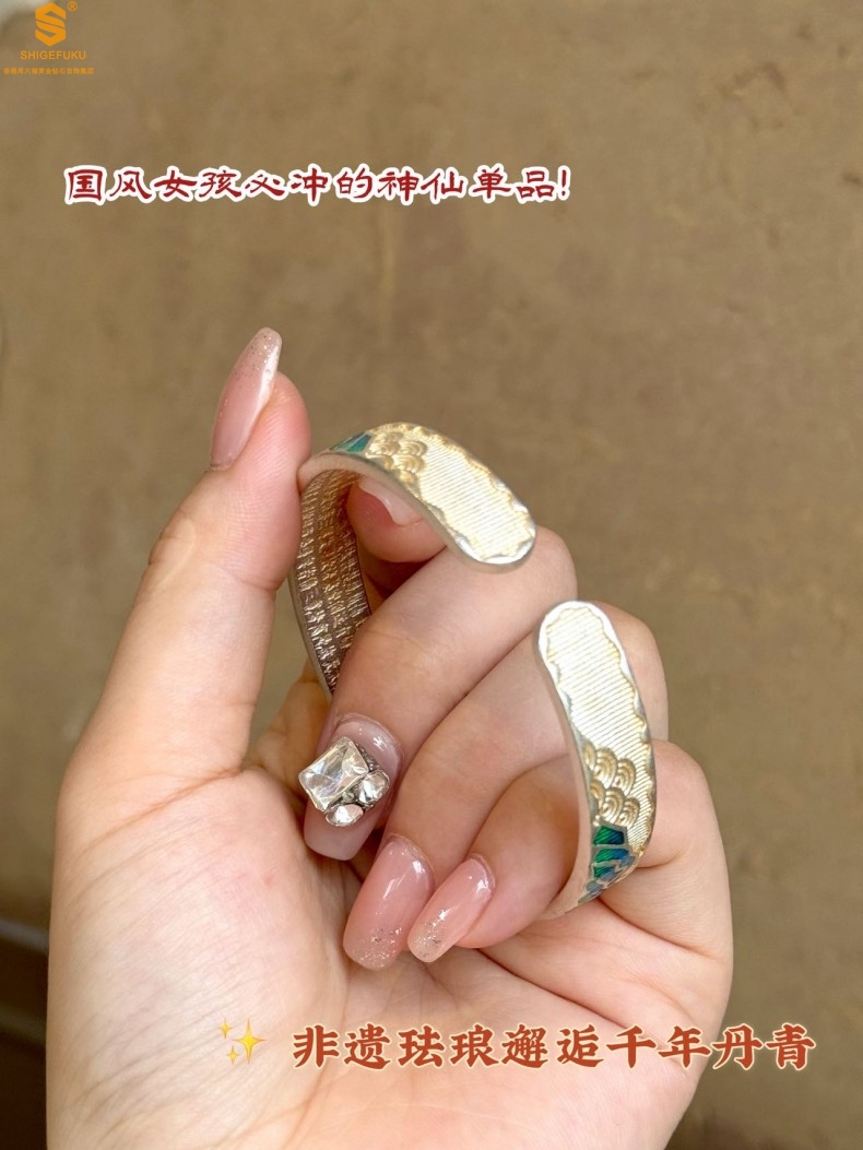 【品名】K银珐琅手绘千里江山开口手镯(10mm)