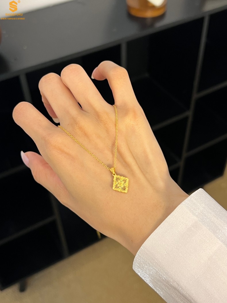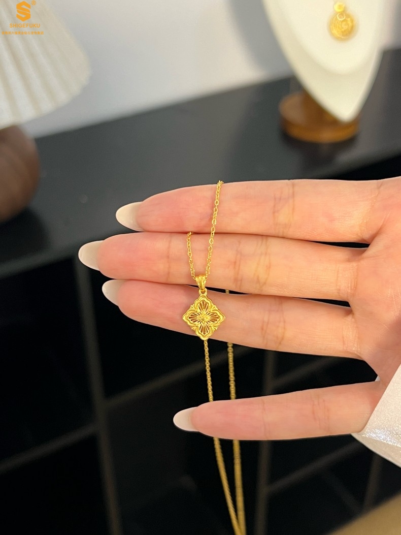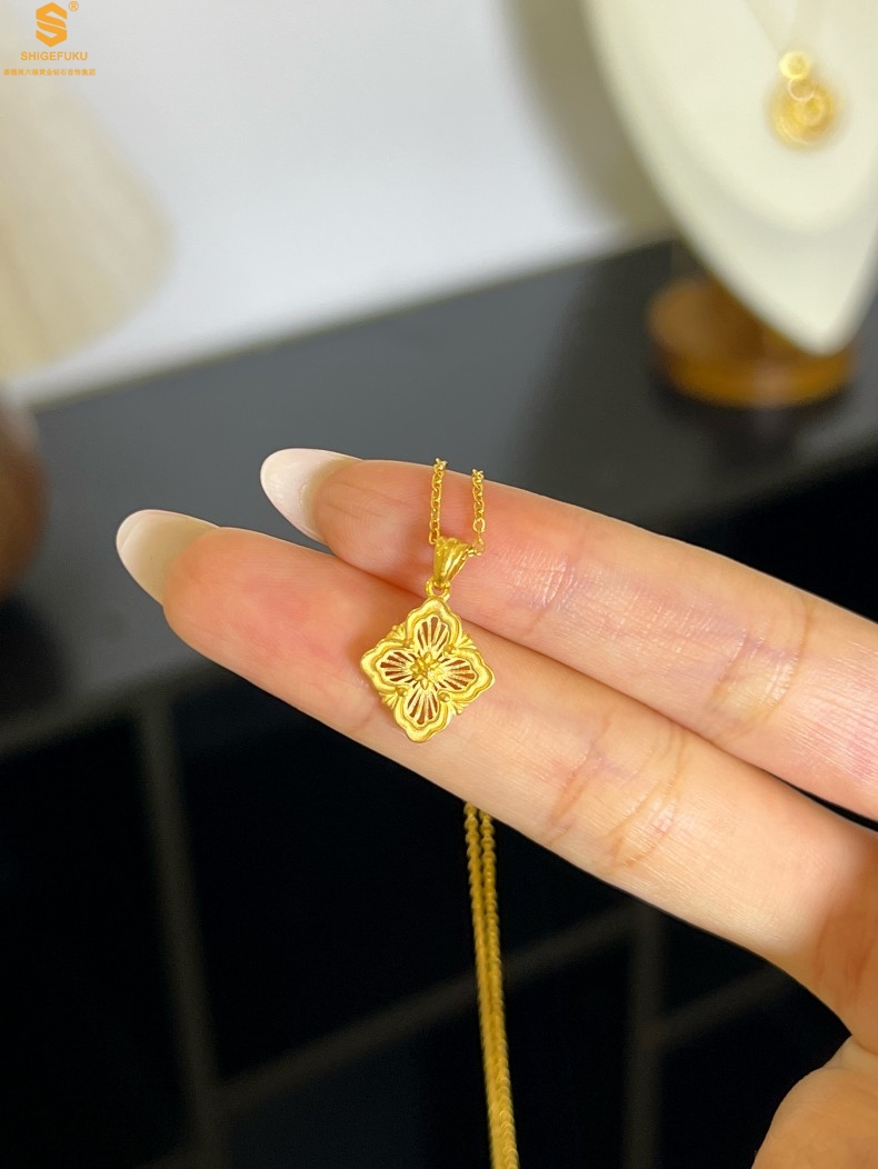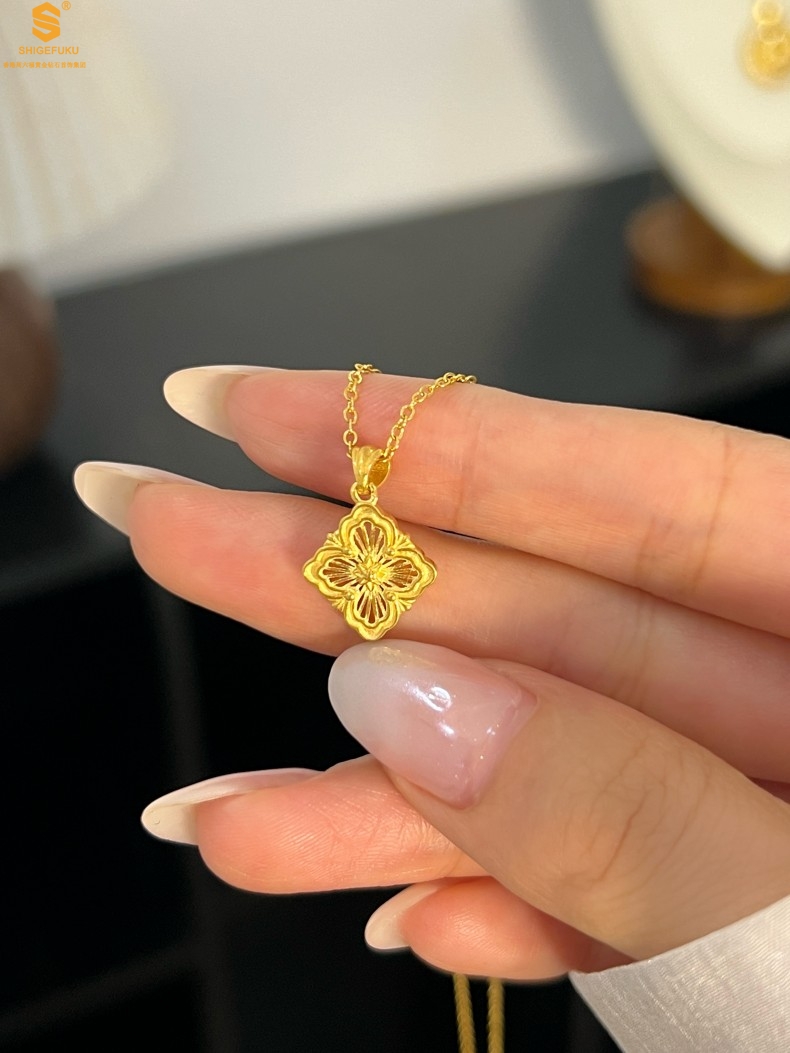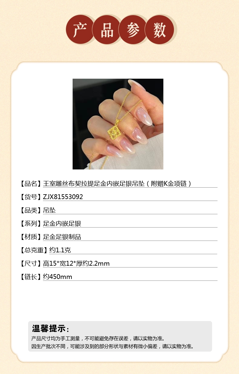 【品名】王室雕丝布契拉提足金内嵌足银吊坠(附赠K金项链)