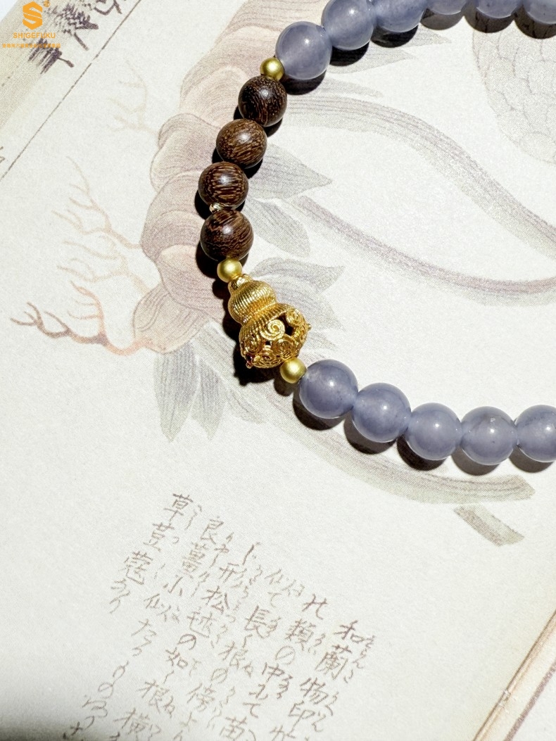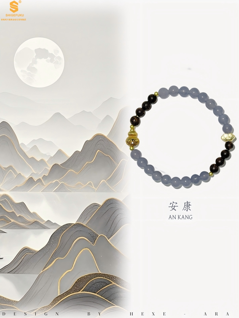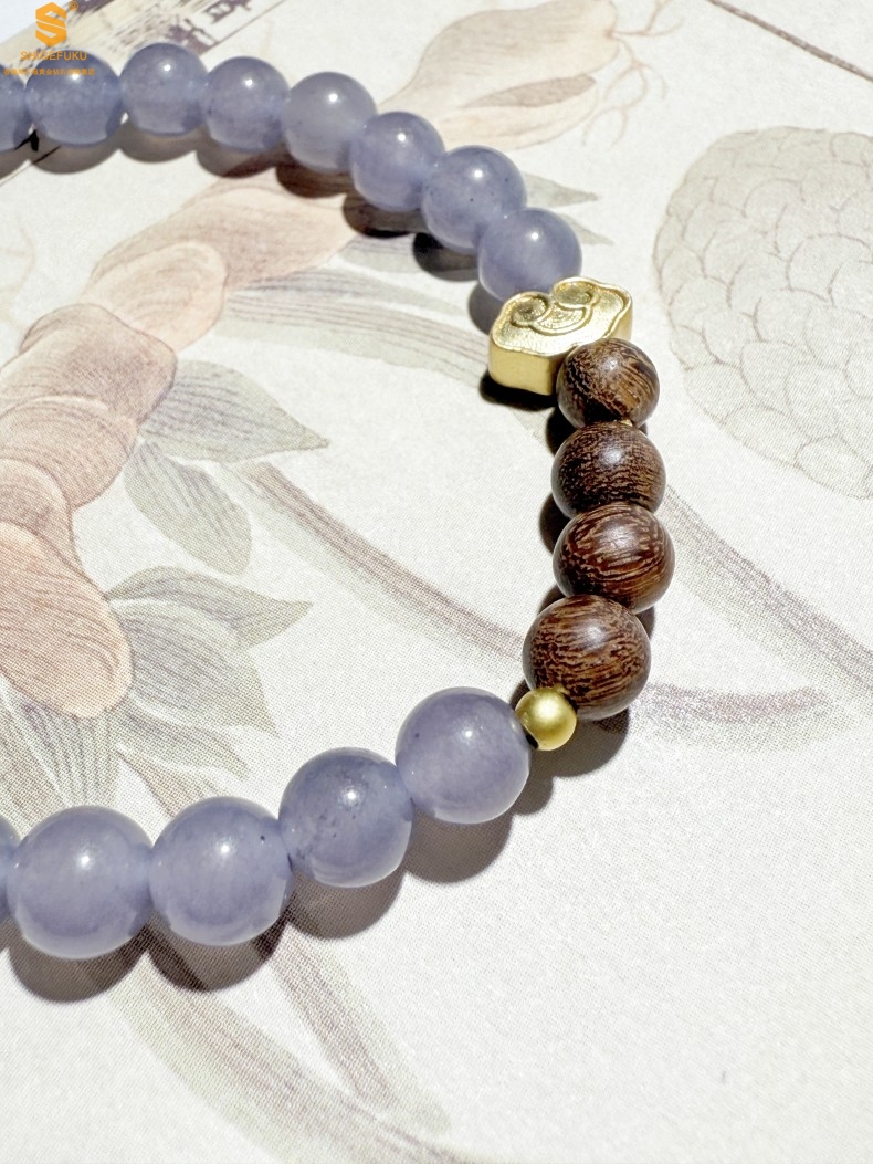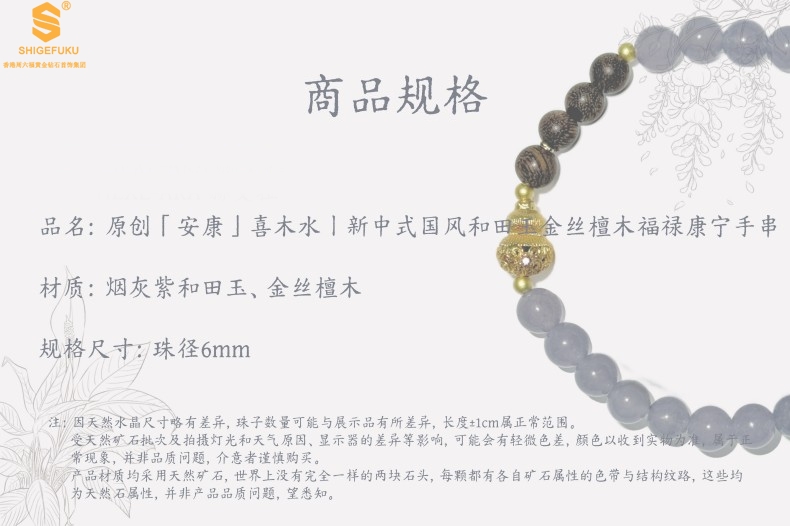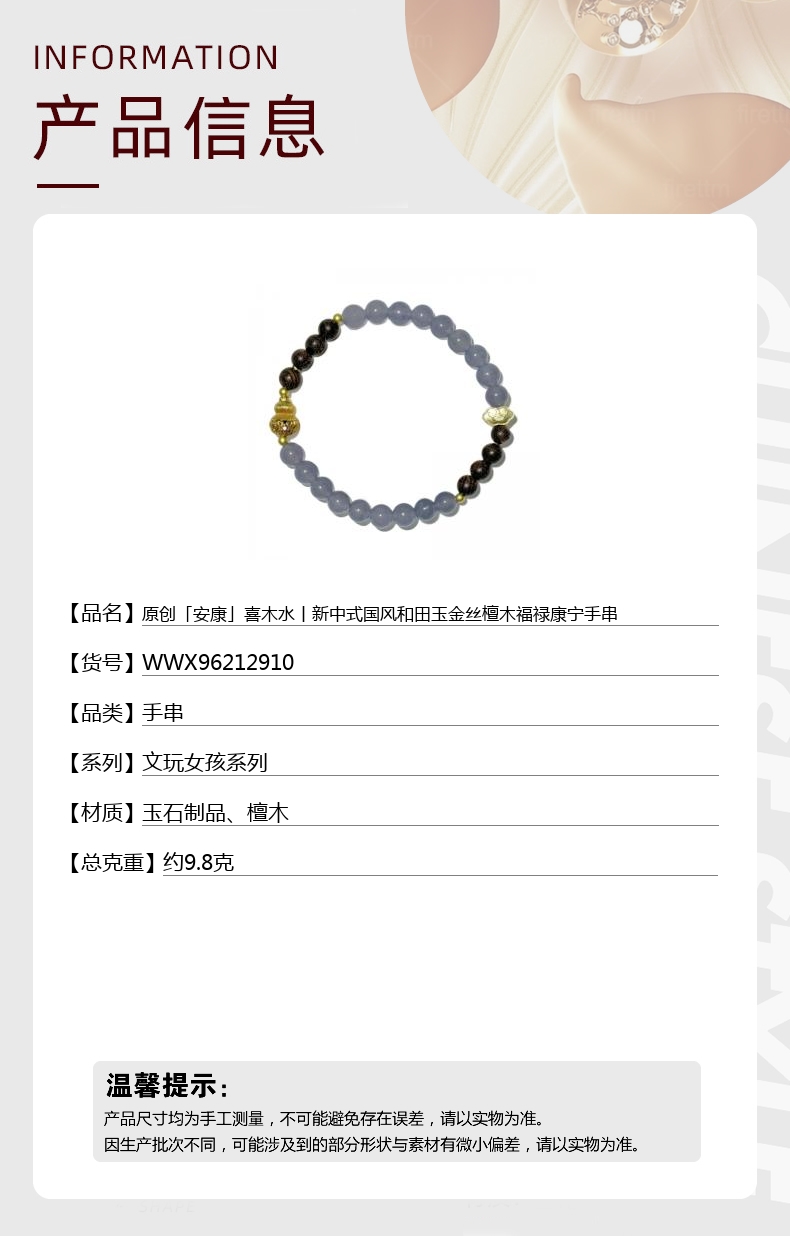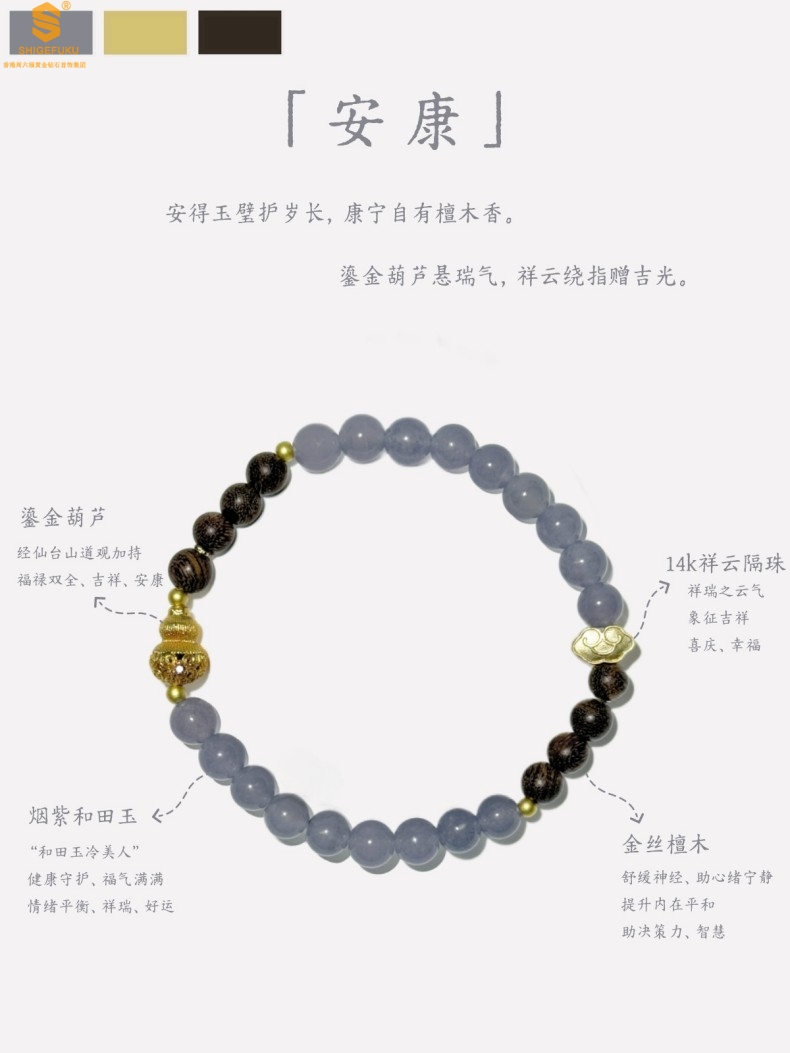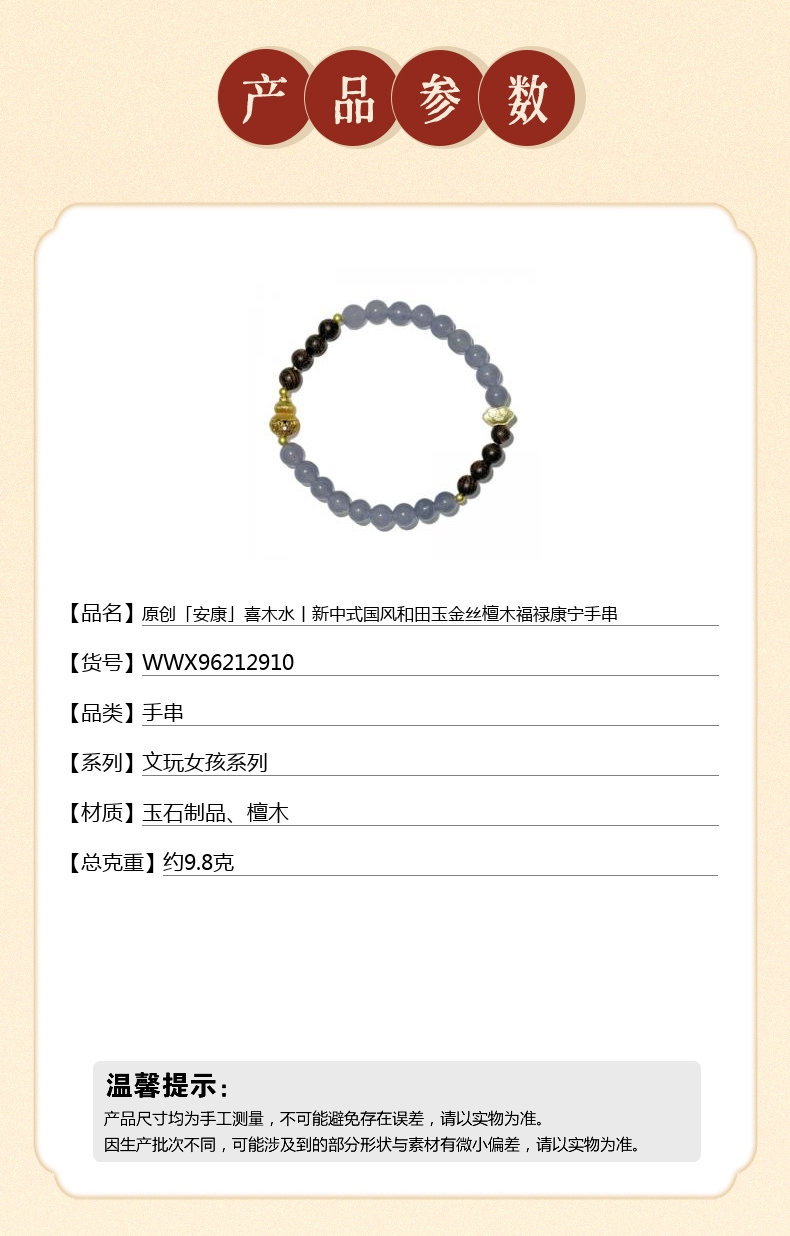 【品名】原创「安康」喜木水丨新中式国风和田玉金丝檀木福禄康宁手串