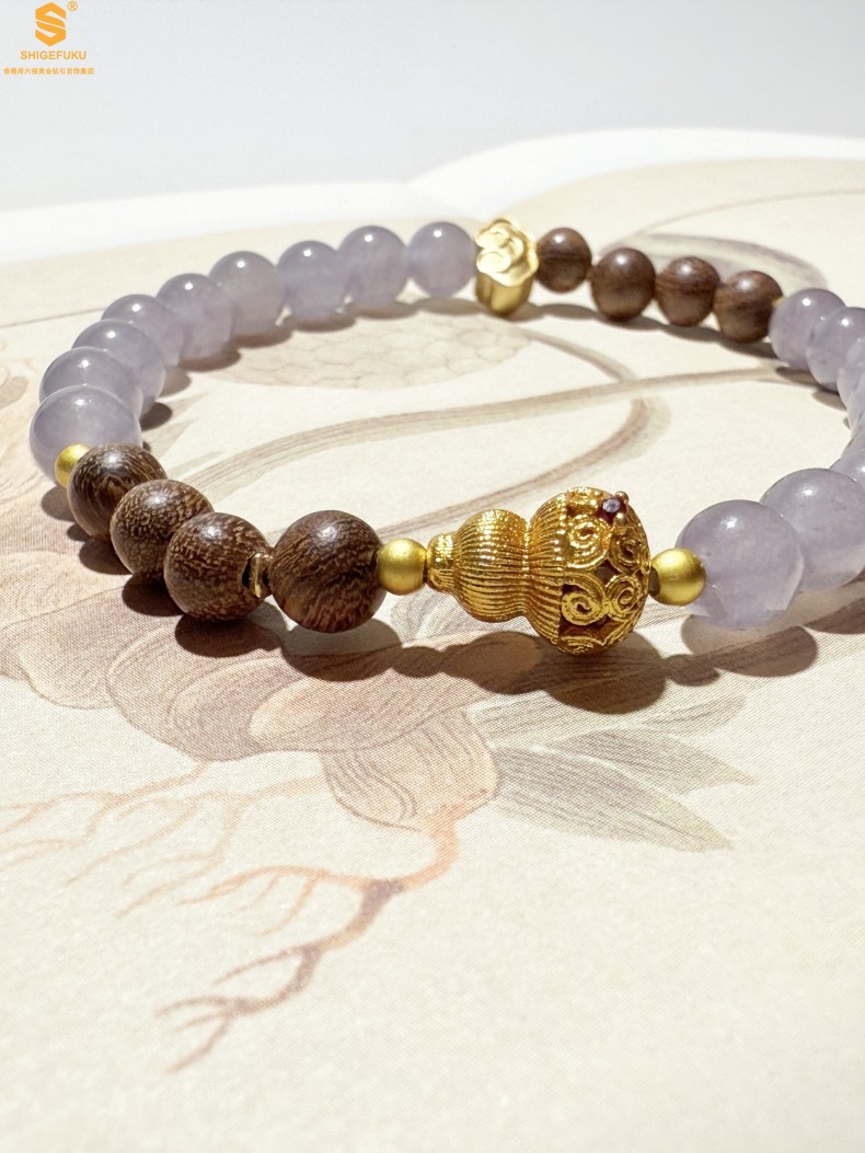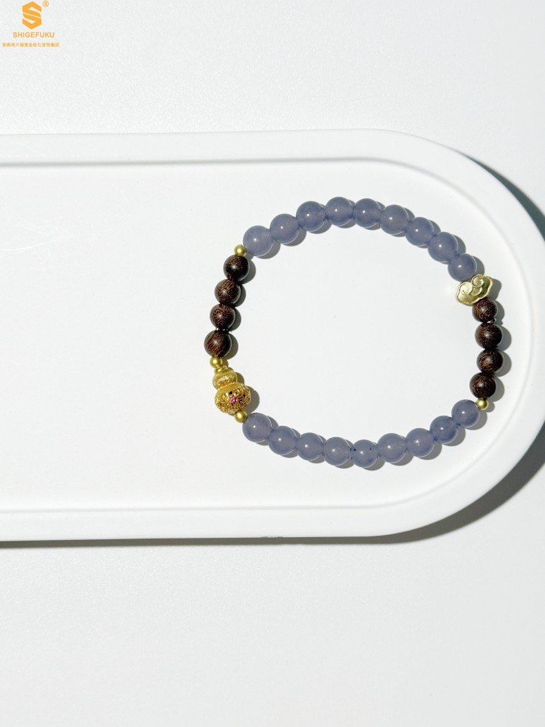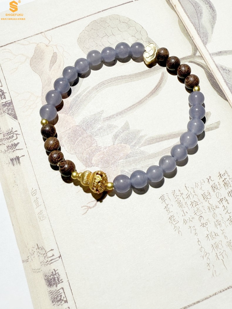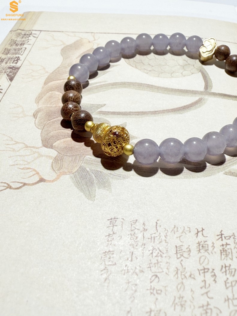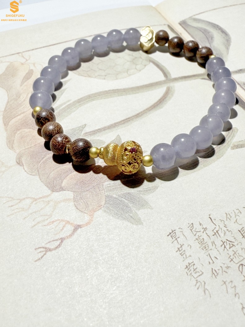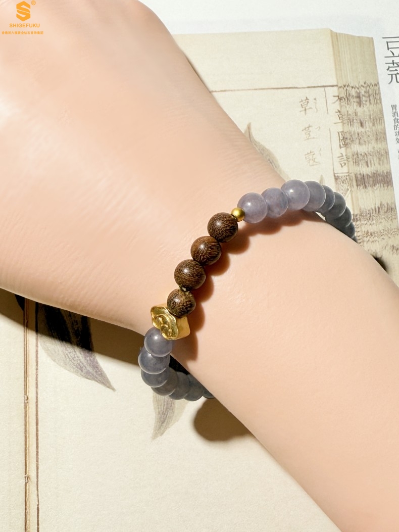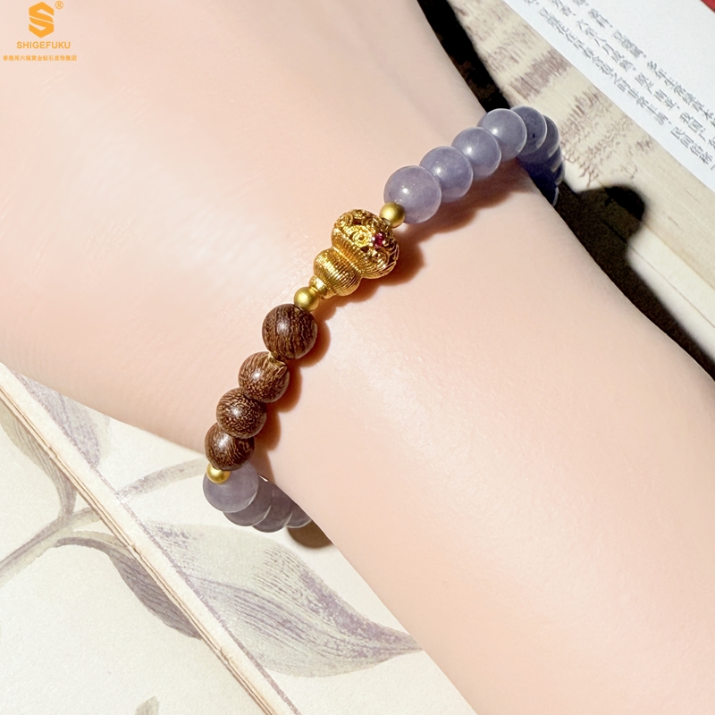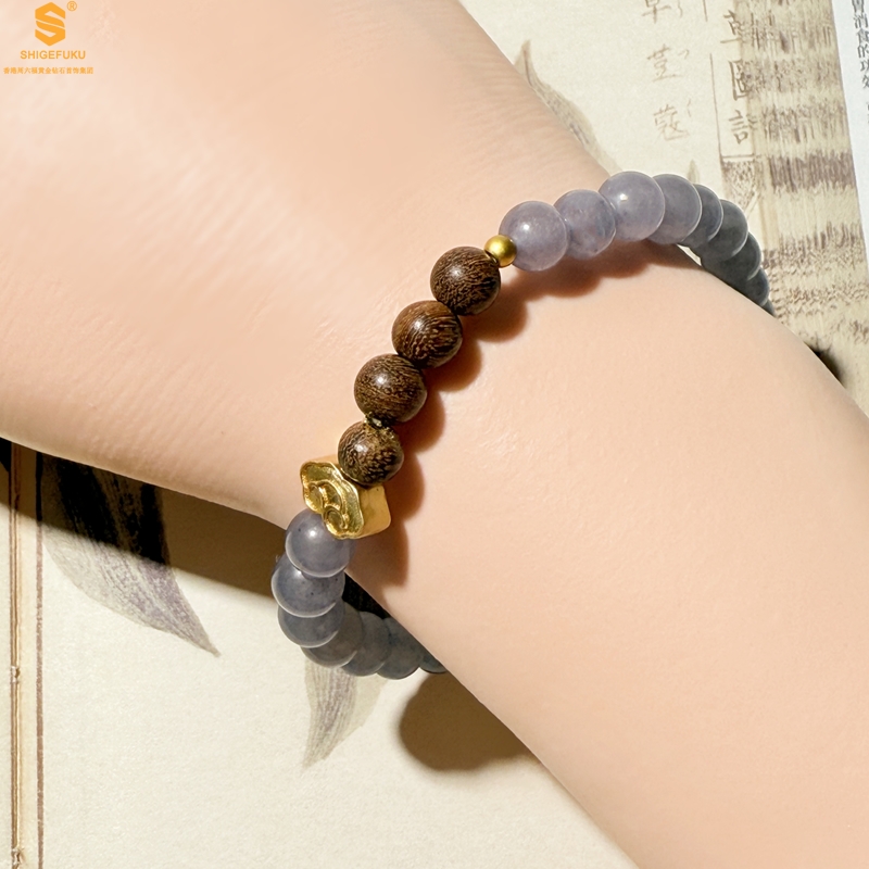 【品名】原创「安康」喜木水丨新中式国风和田玉金丝檀木福禄康宁手串