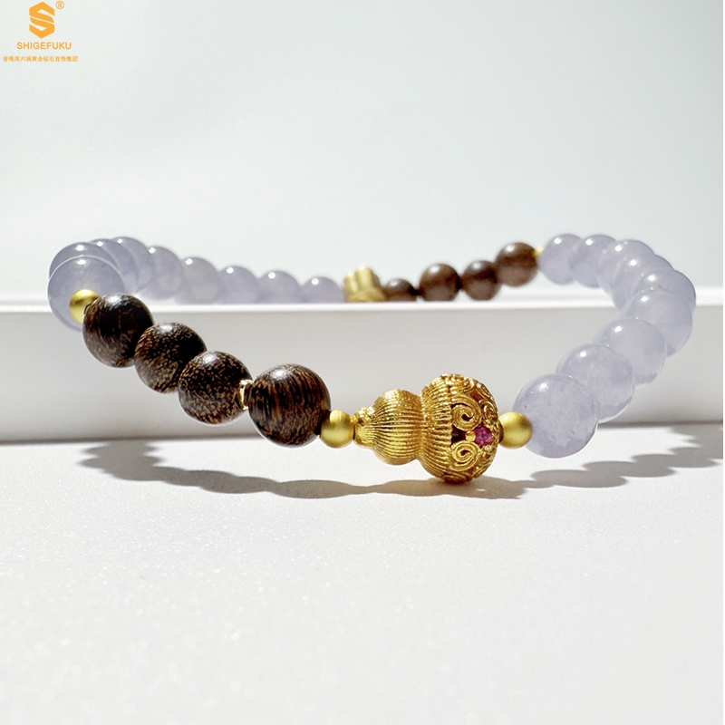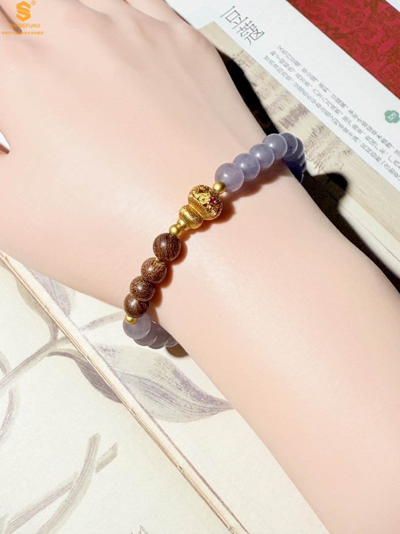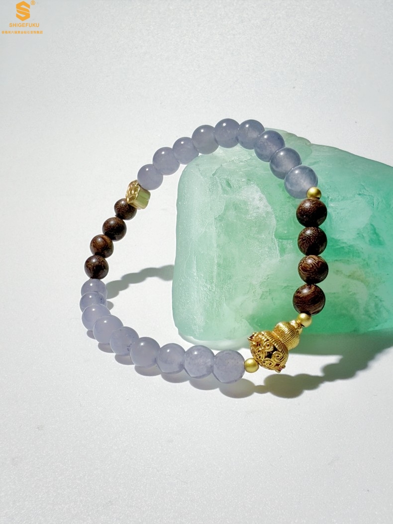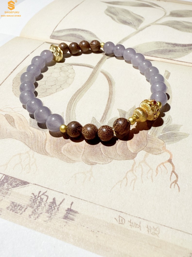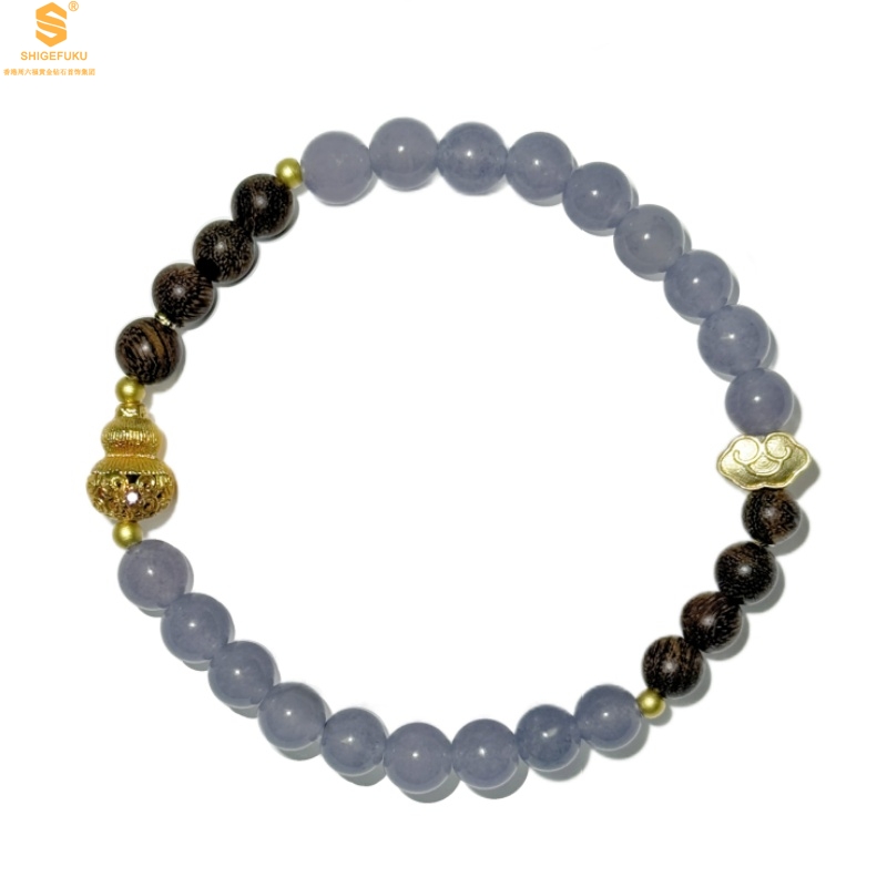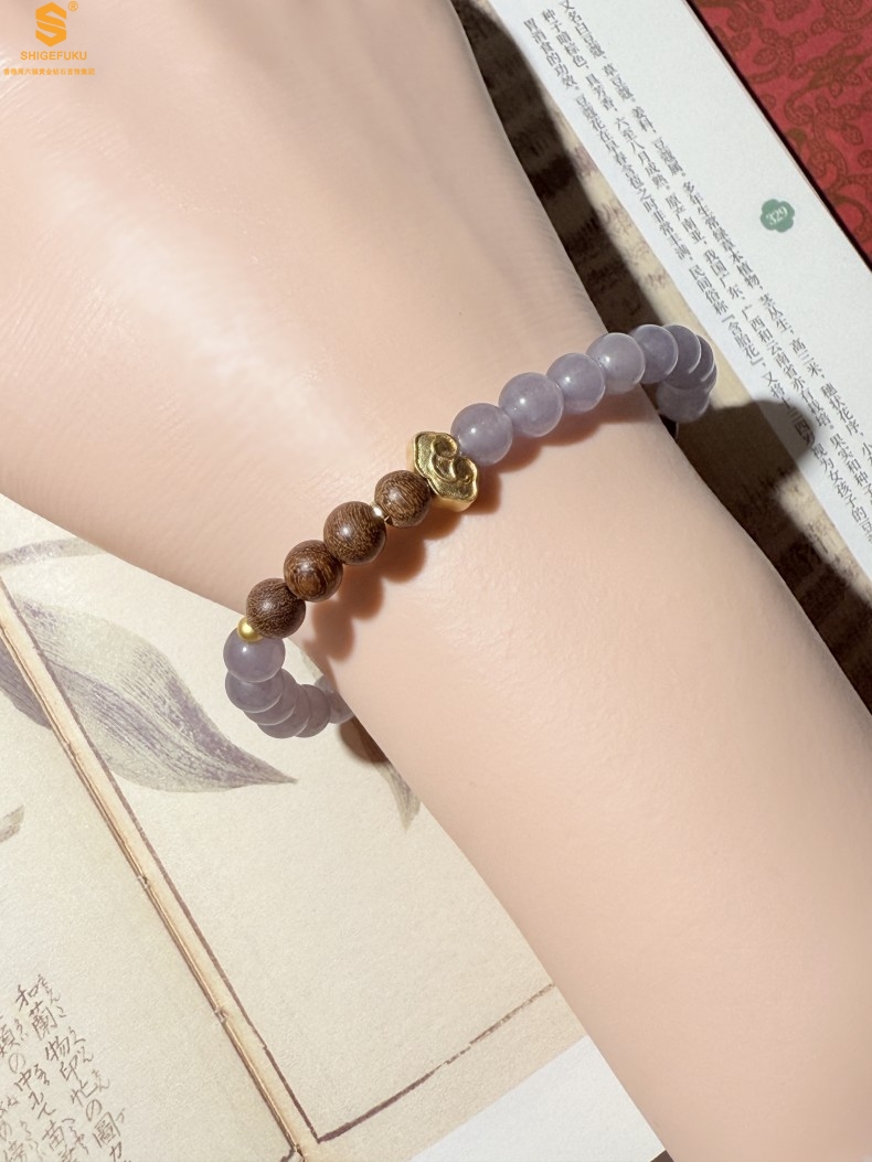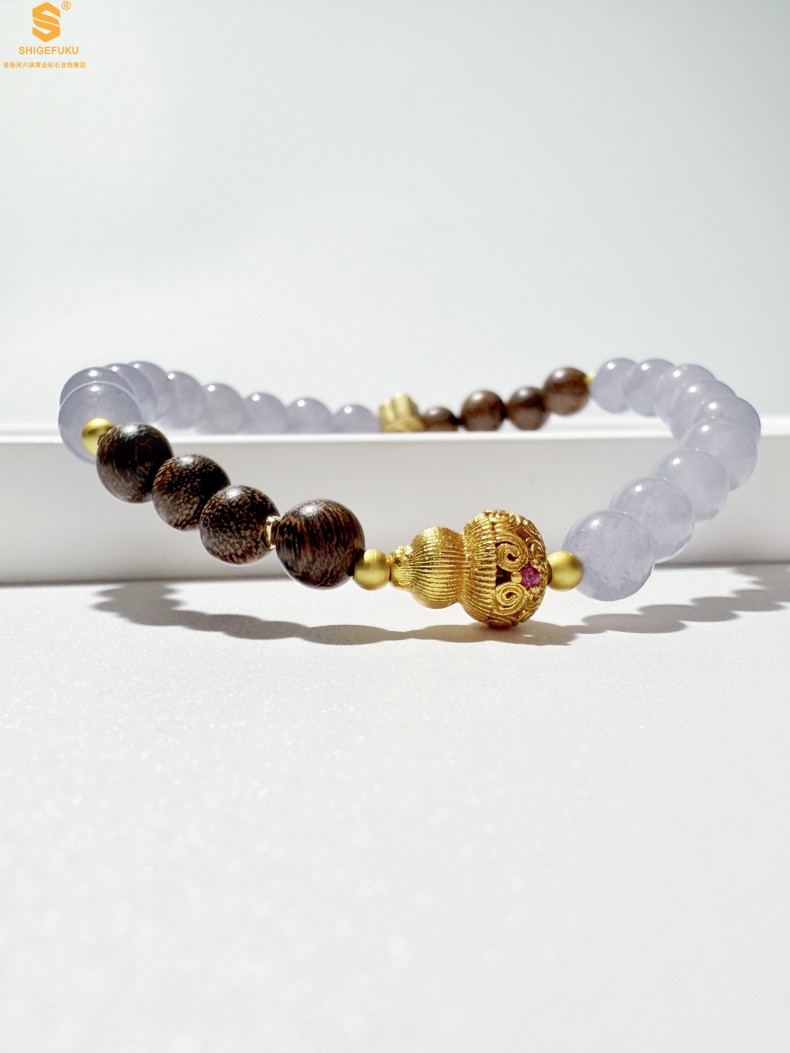 【品名】原创「安康」喜木水丨新中式国风和田玉金丝檀木福禄康宁手串
