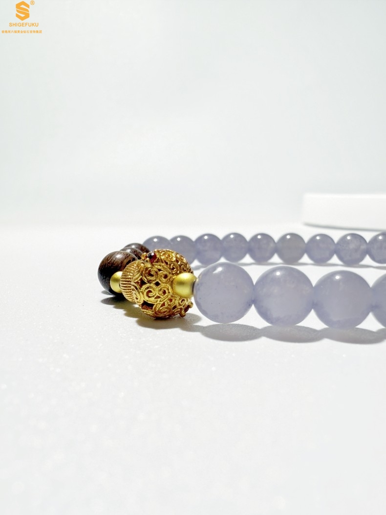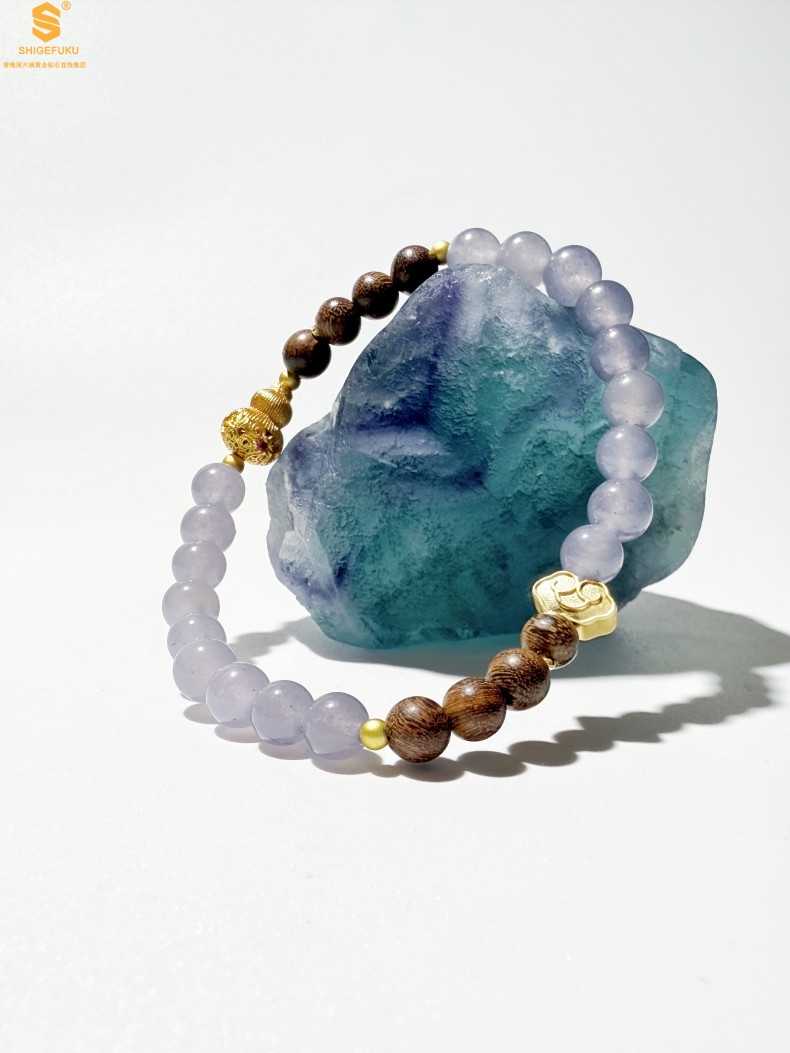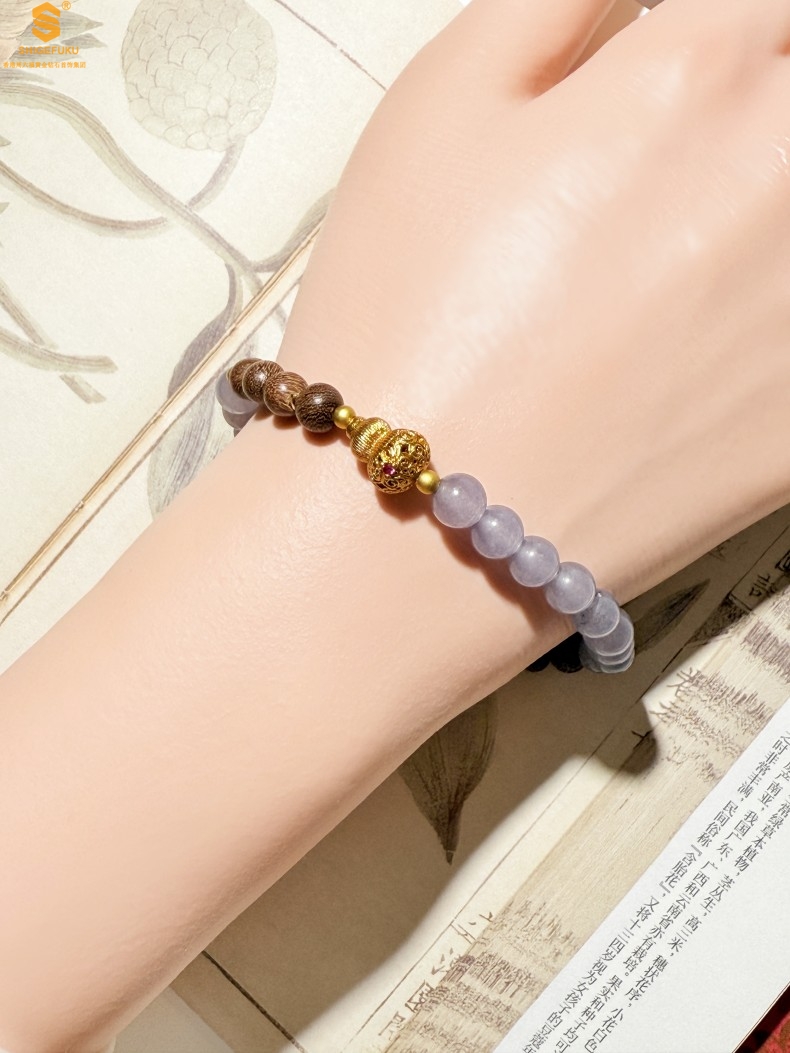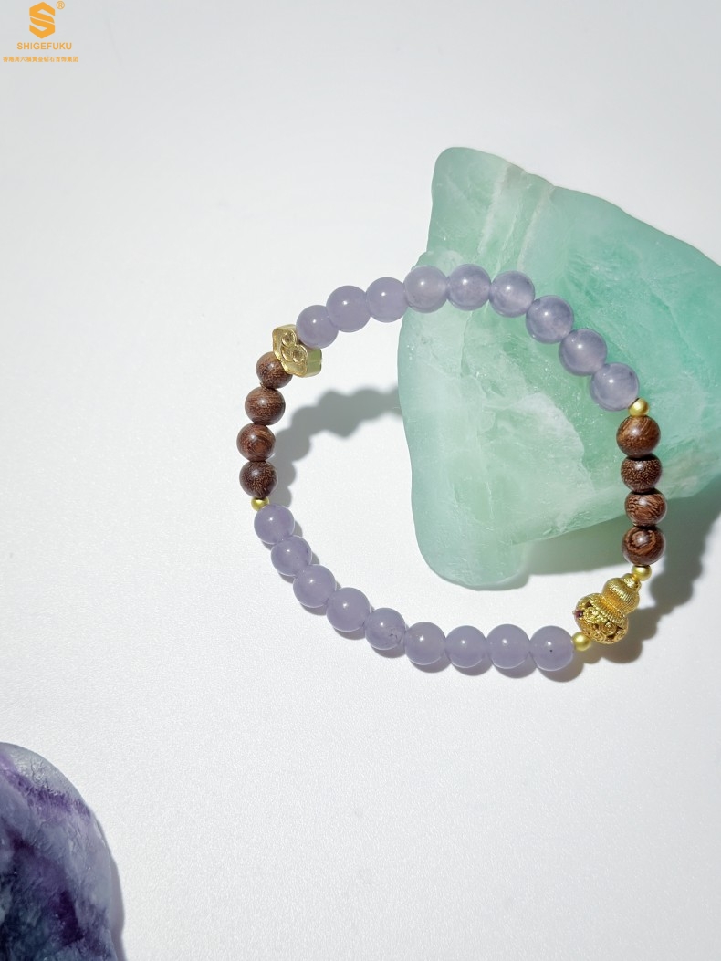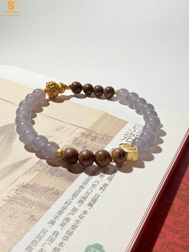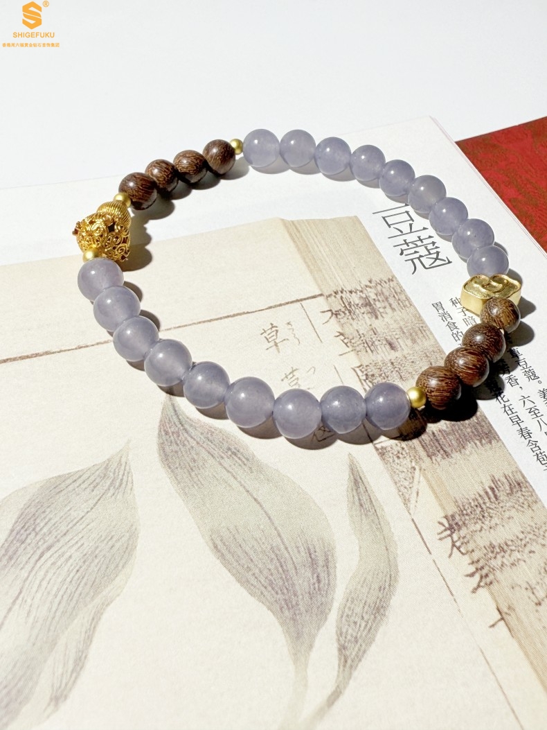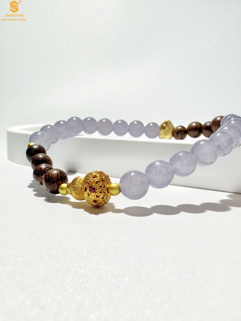 【品名】原创「安康」喜木水丨新中式国风和田玉金丝檀木福禄康宁手串