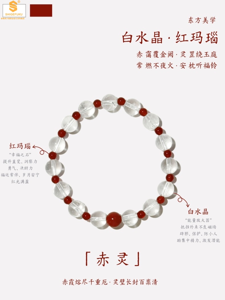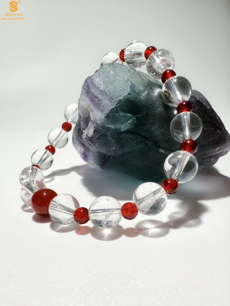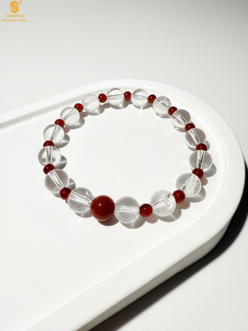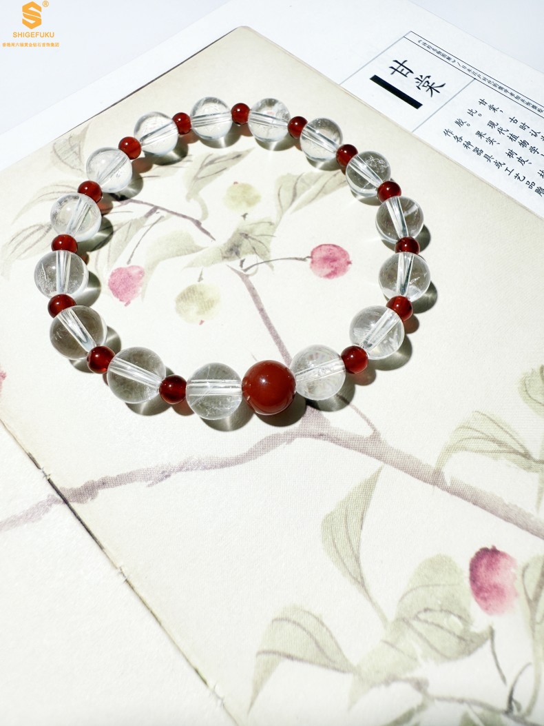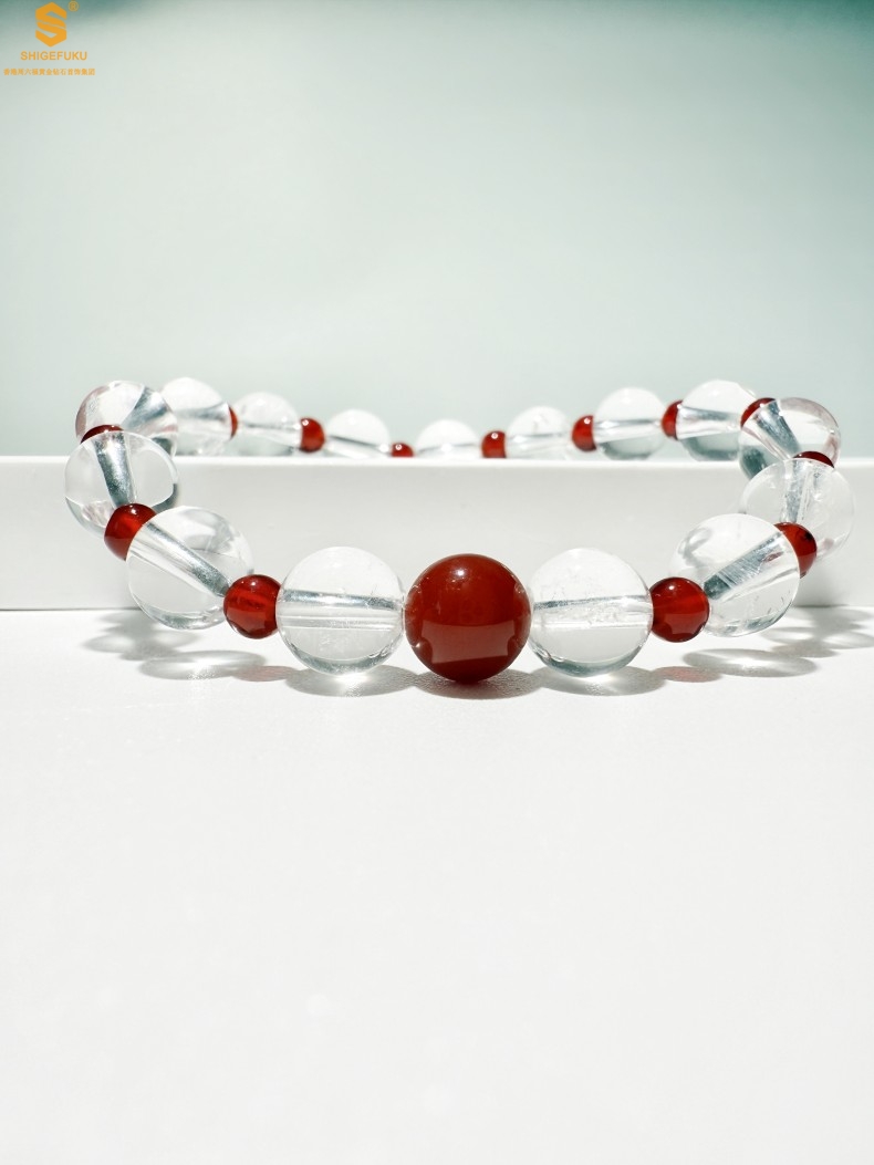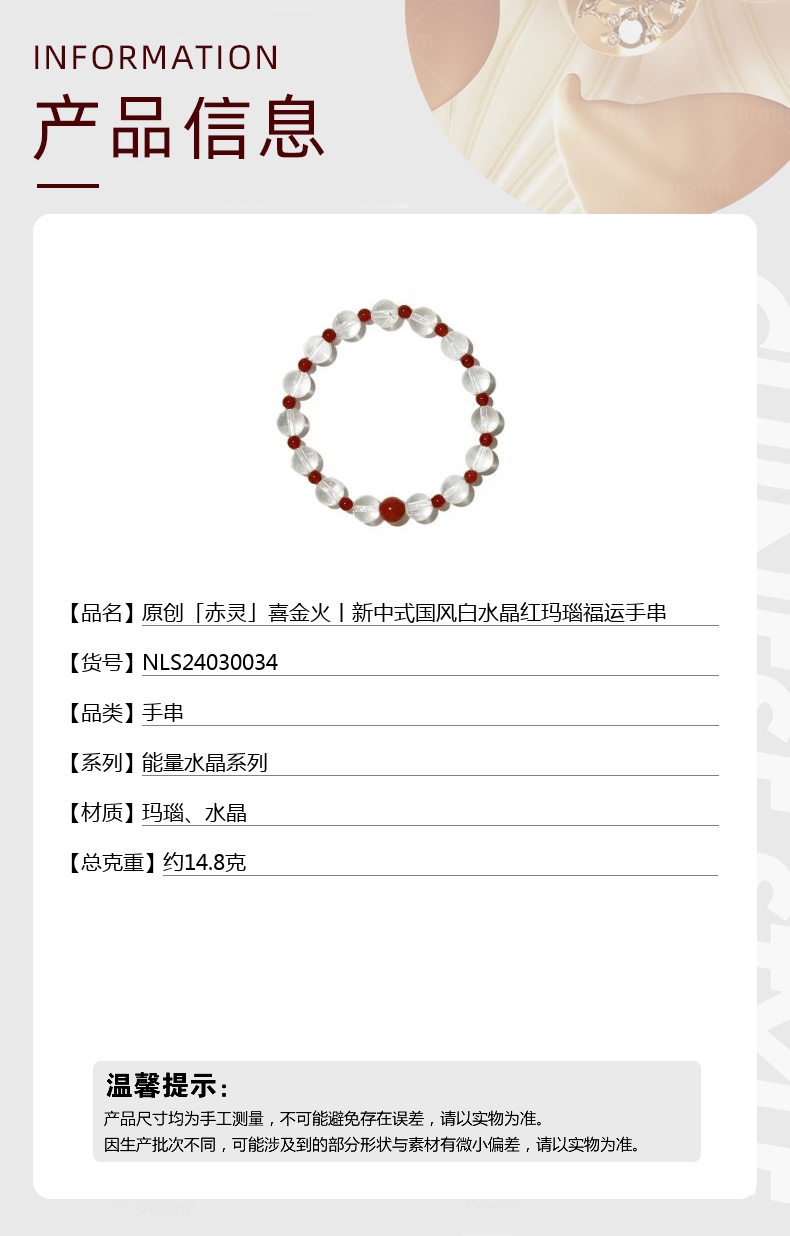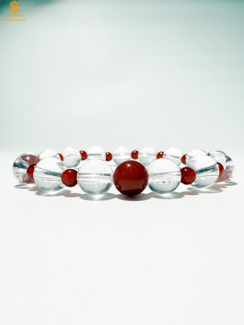 【品名】原创「赤灵」喜金火丨新中式国风白水晶红玛瑙福运手串