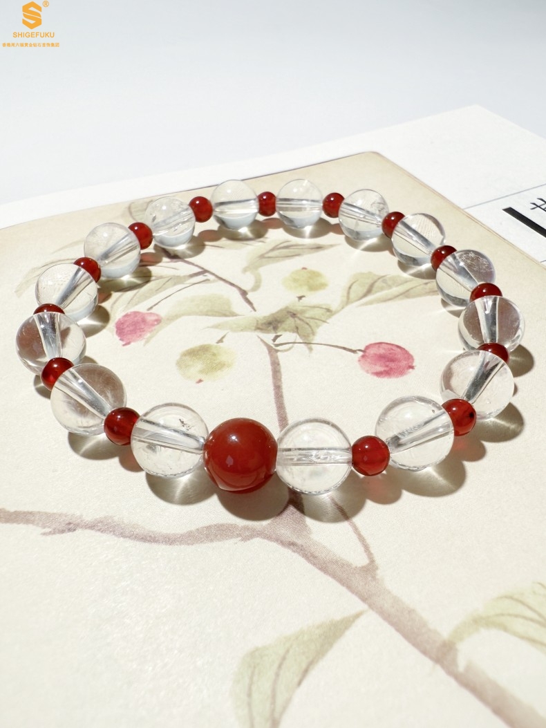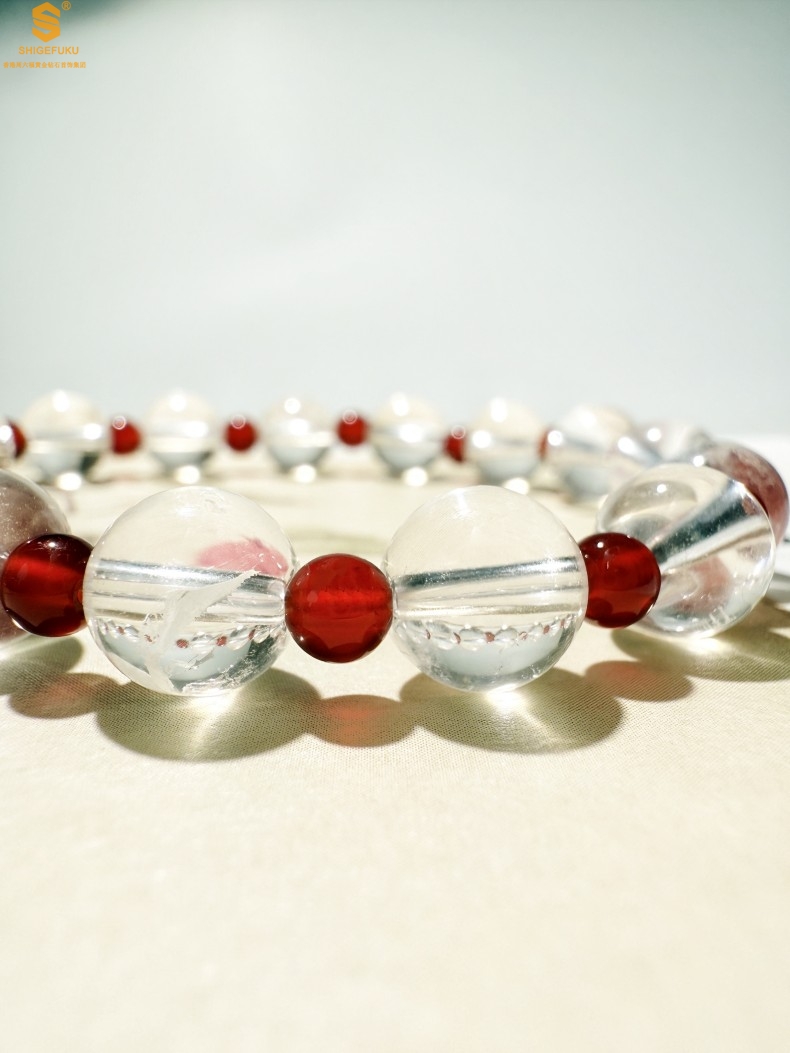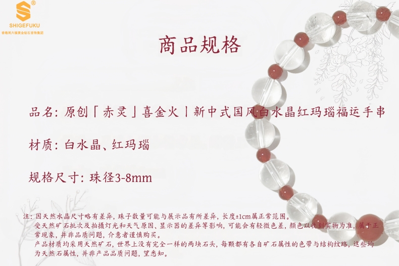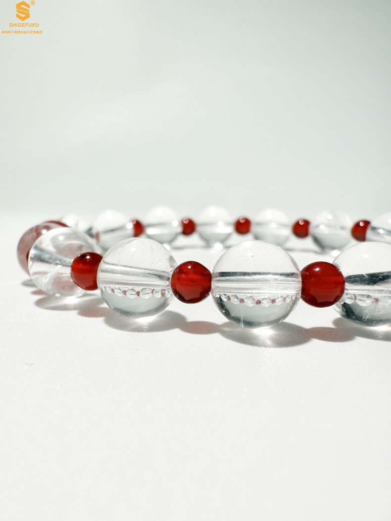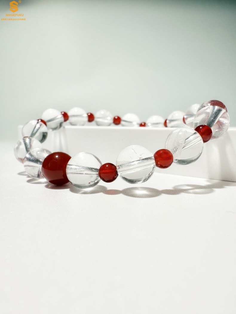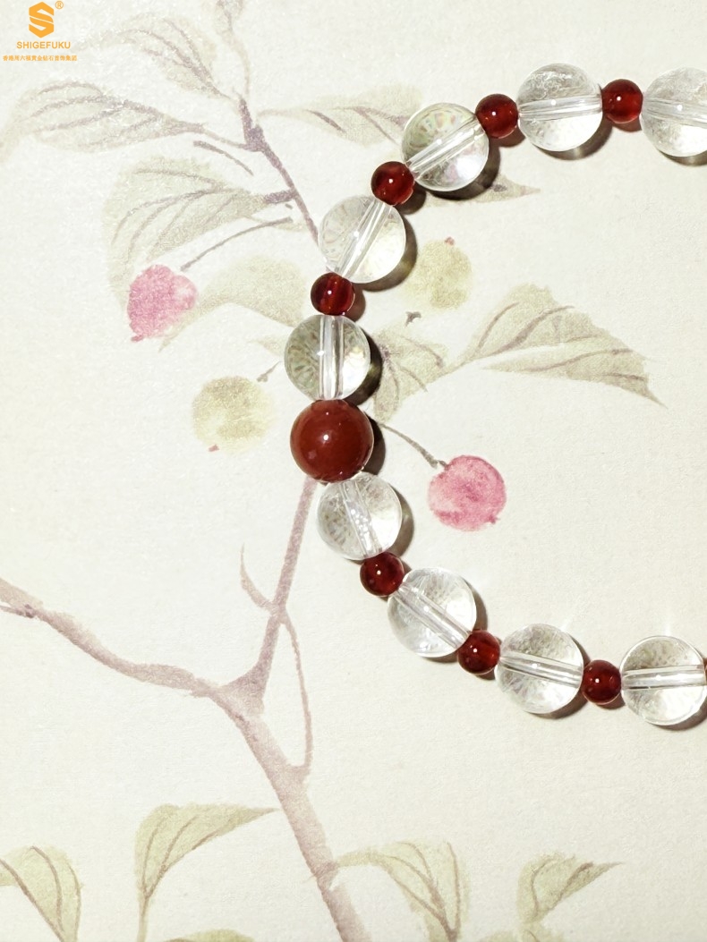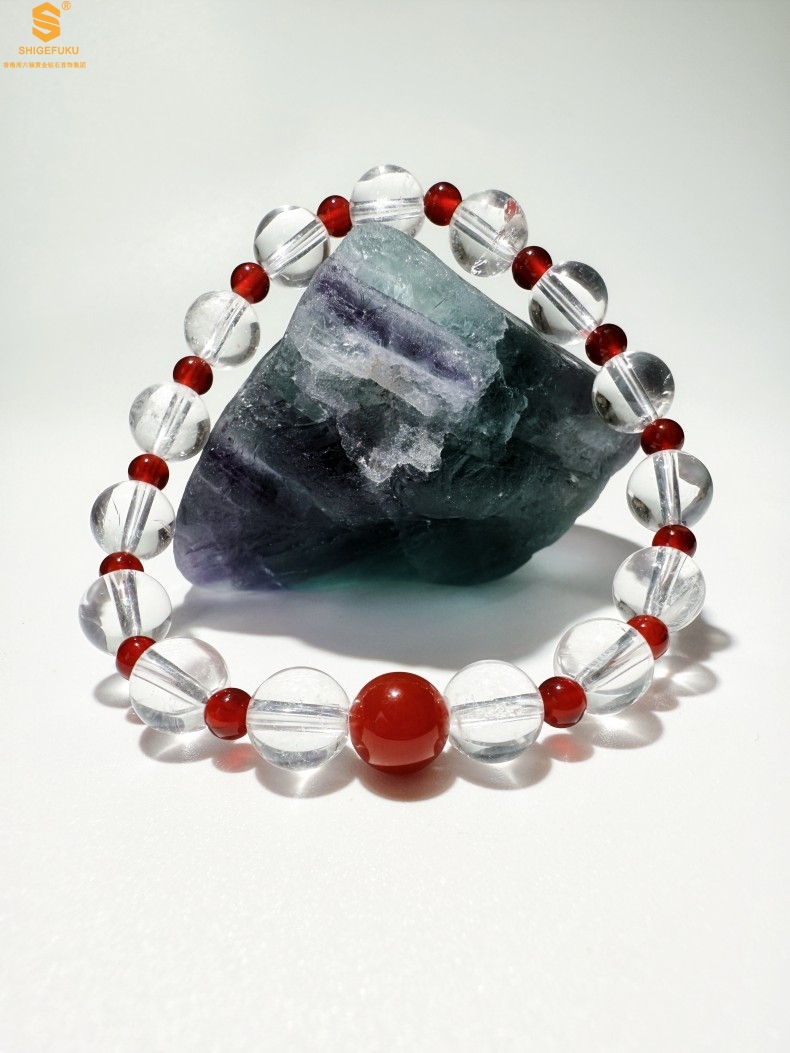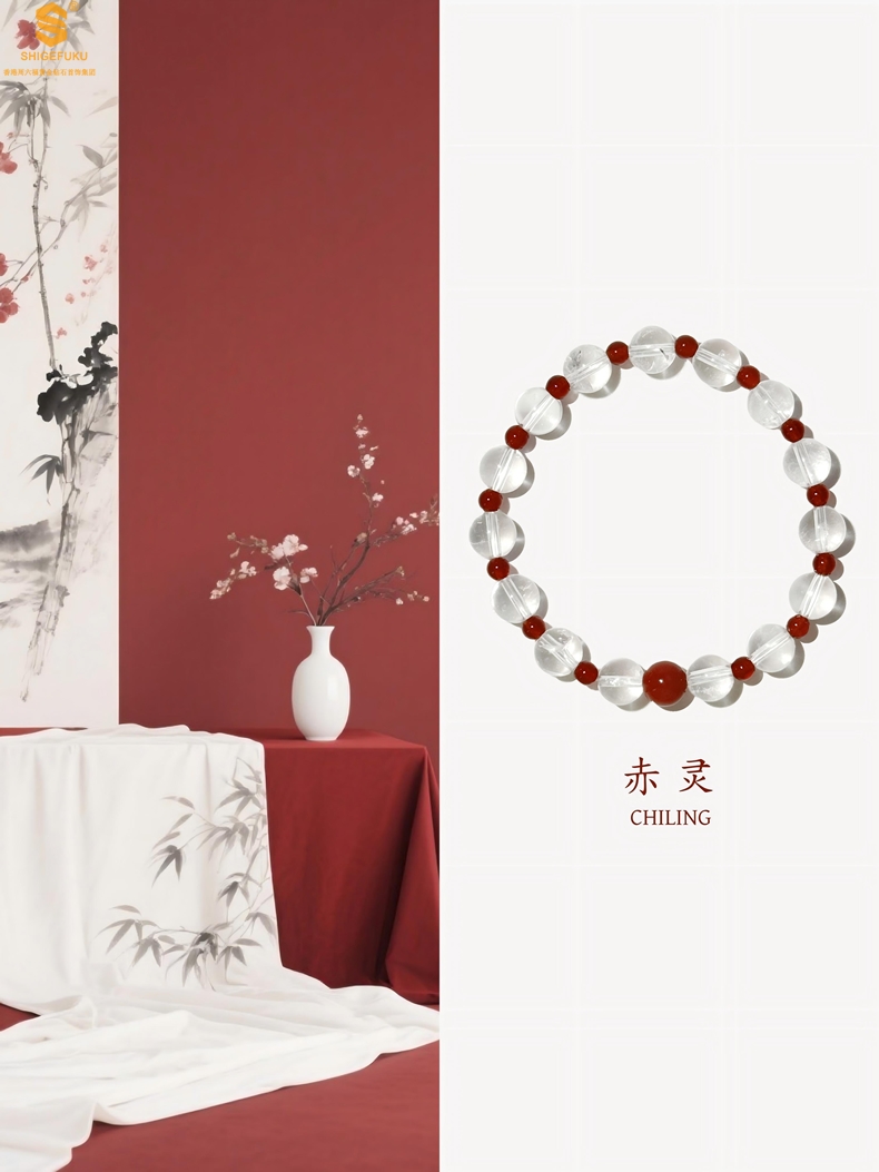【品名】原创「赤灵」喜金火丨新中式国风白水晶红玛瑙福运手串