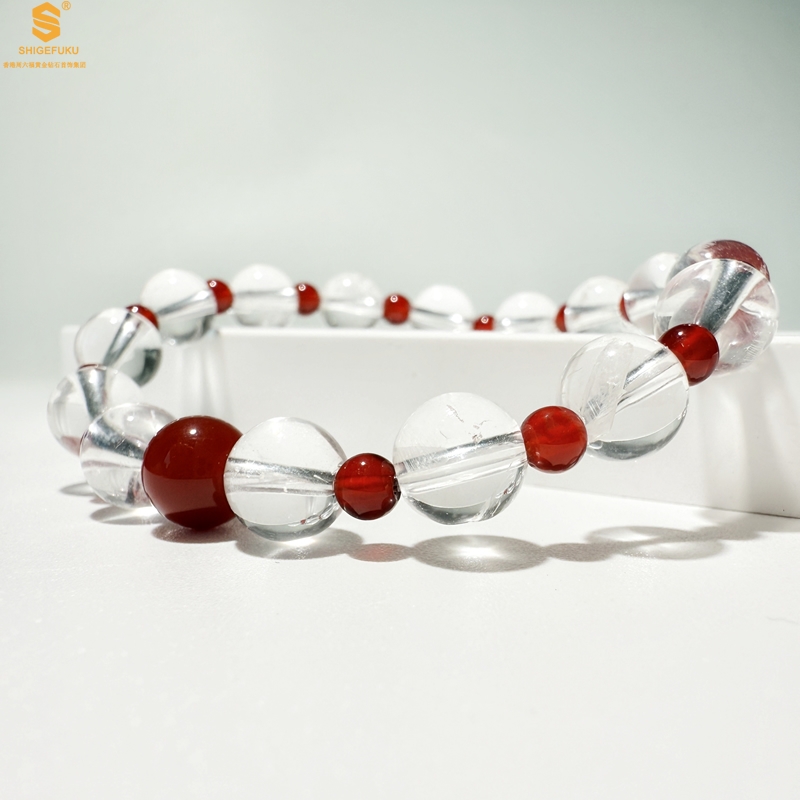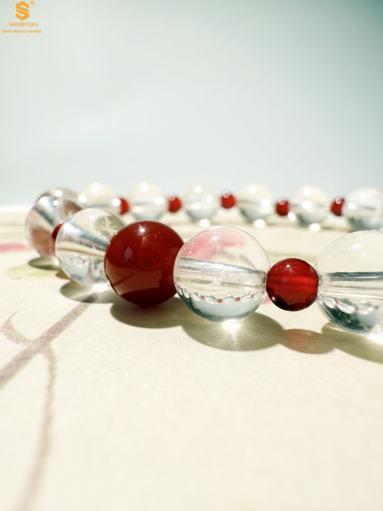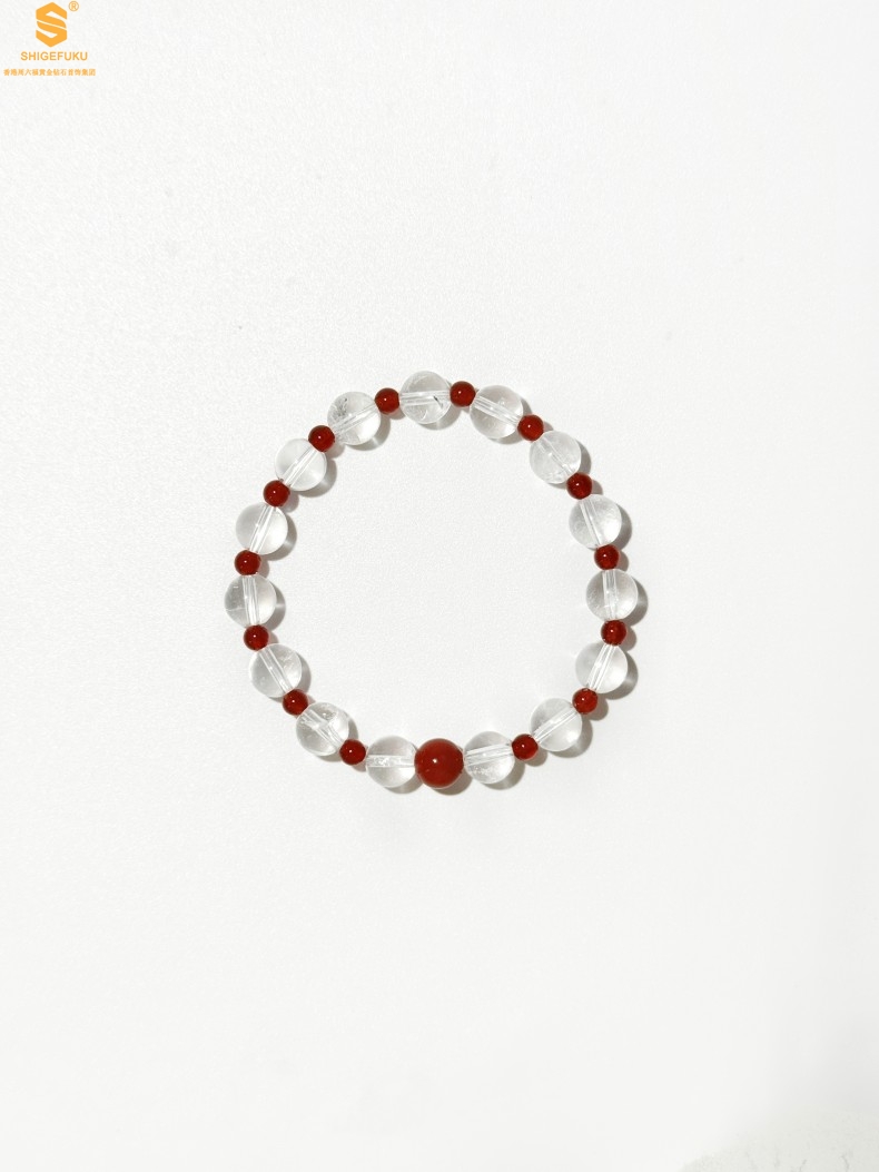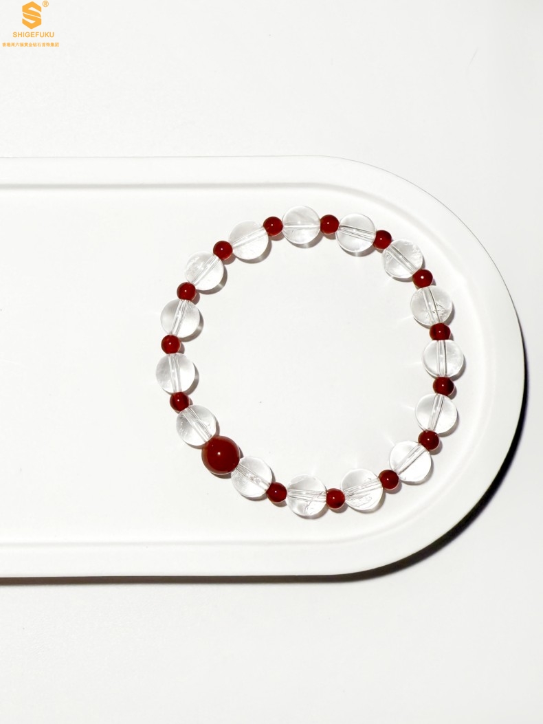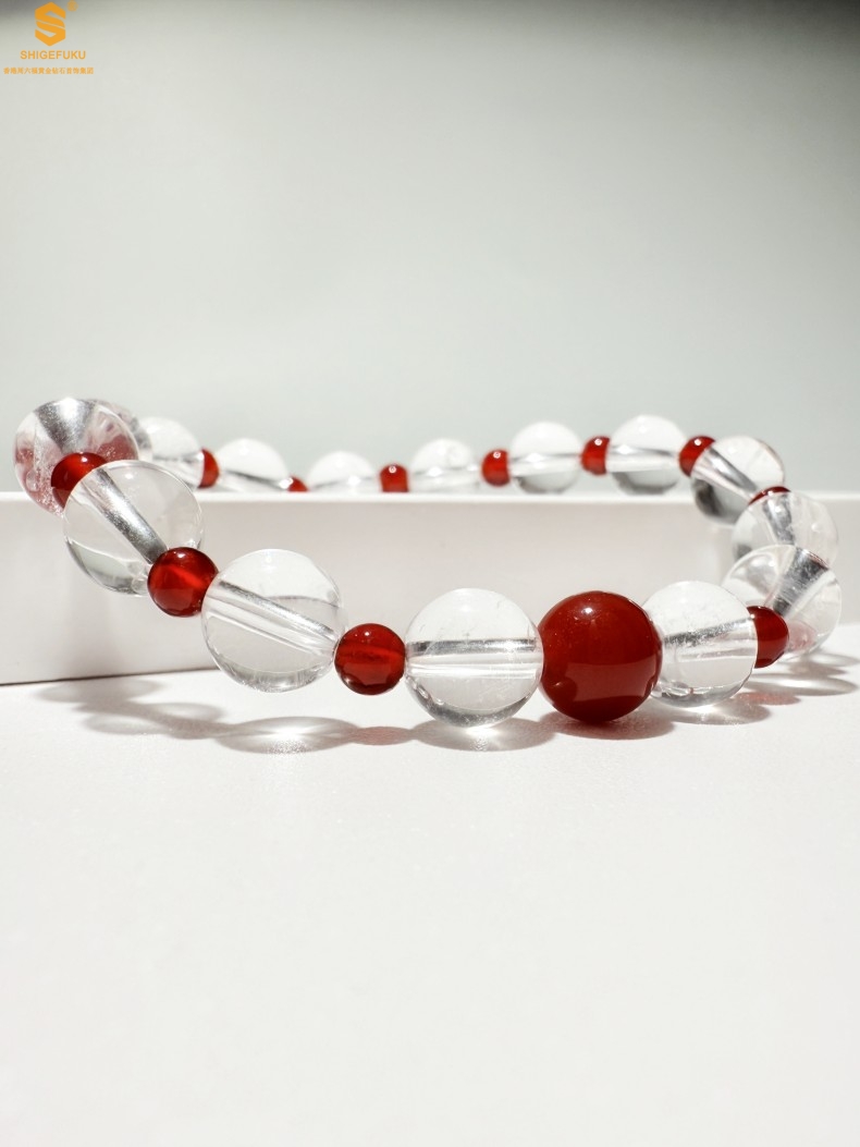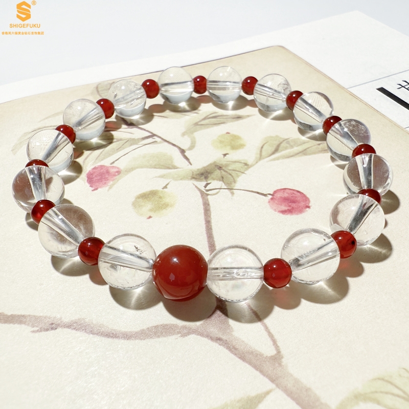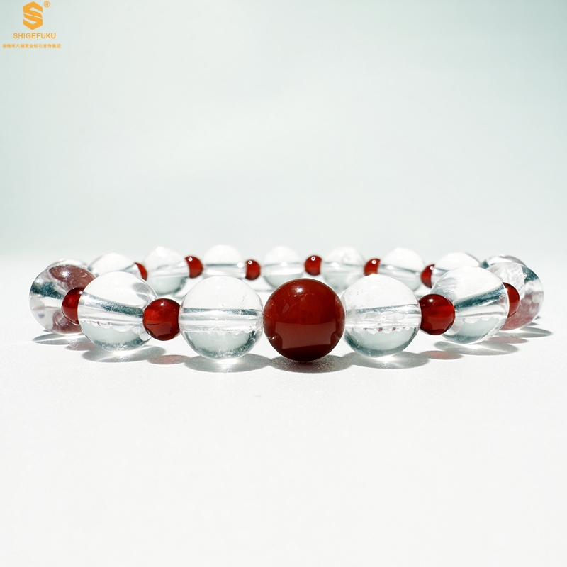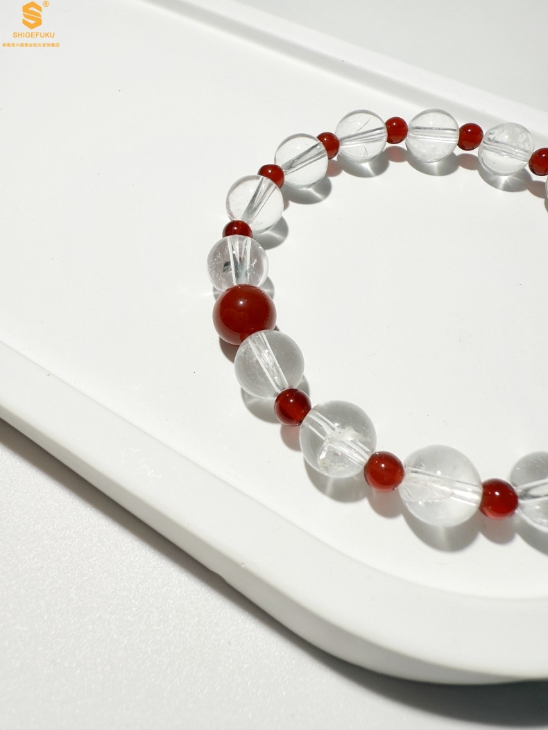 【品名】原创「赤灵」喜金火丨新中式国风白水晶红玛瑙福运手串