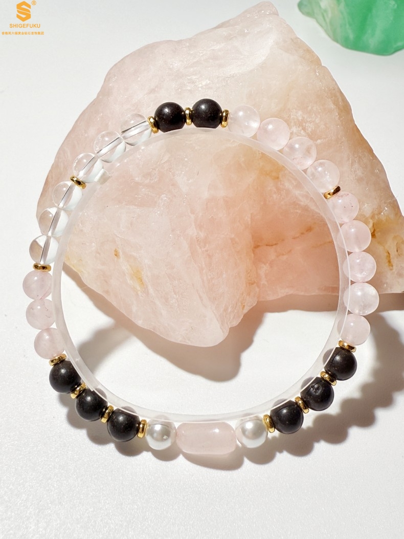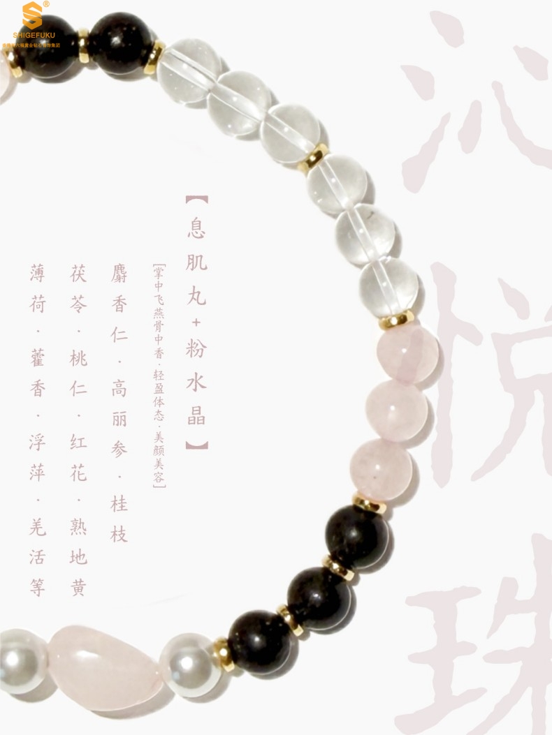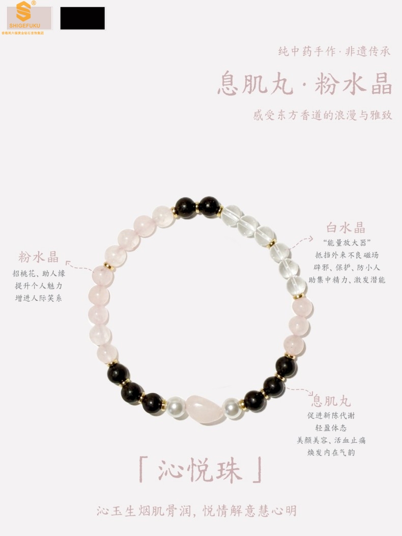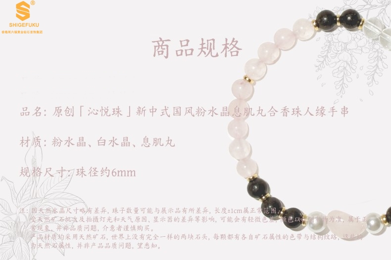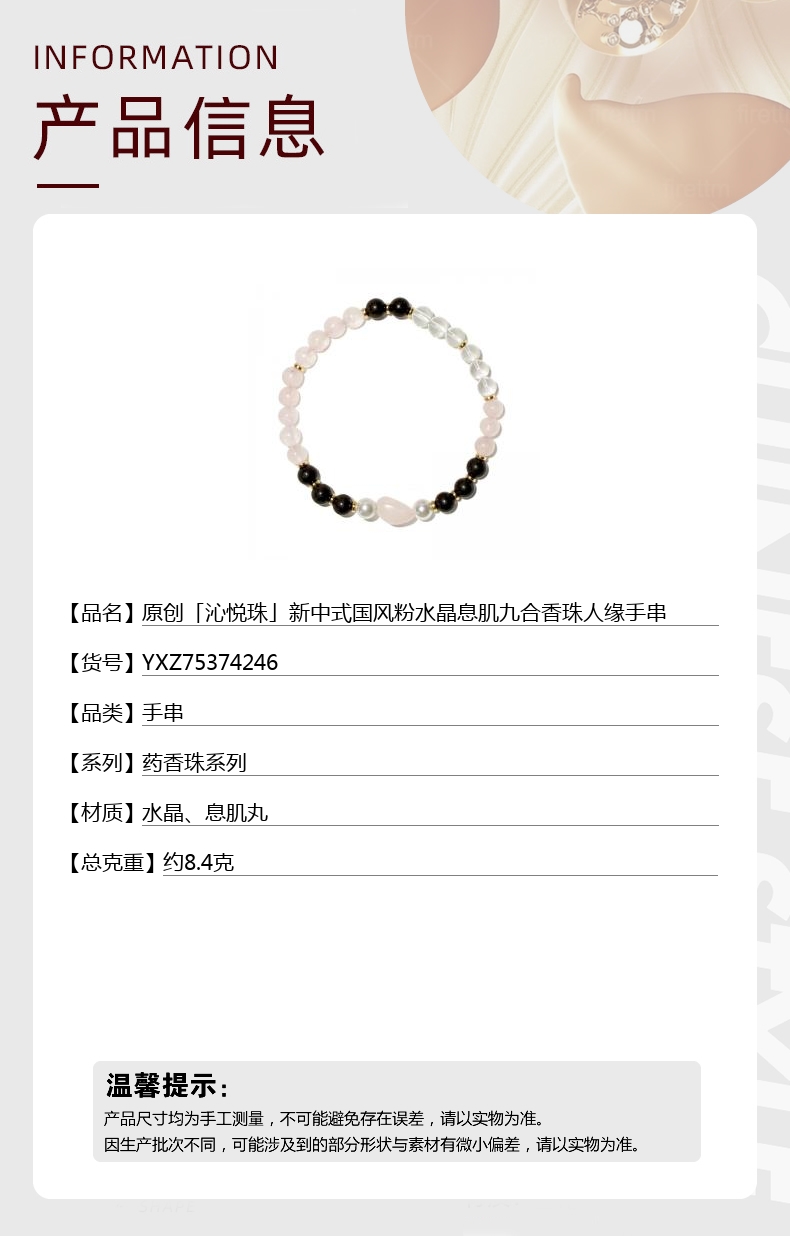 【品名】原创「沁悦珠」新中式国风粉水晶息肌九合香珠人缘手串