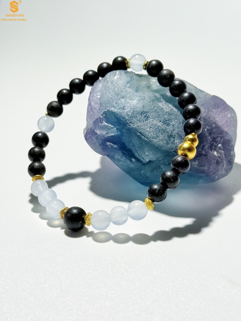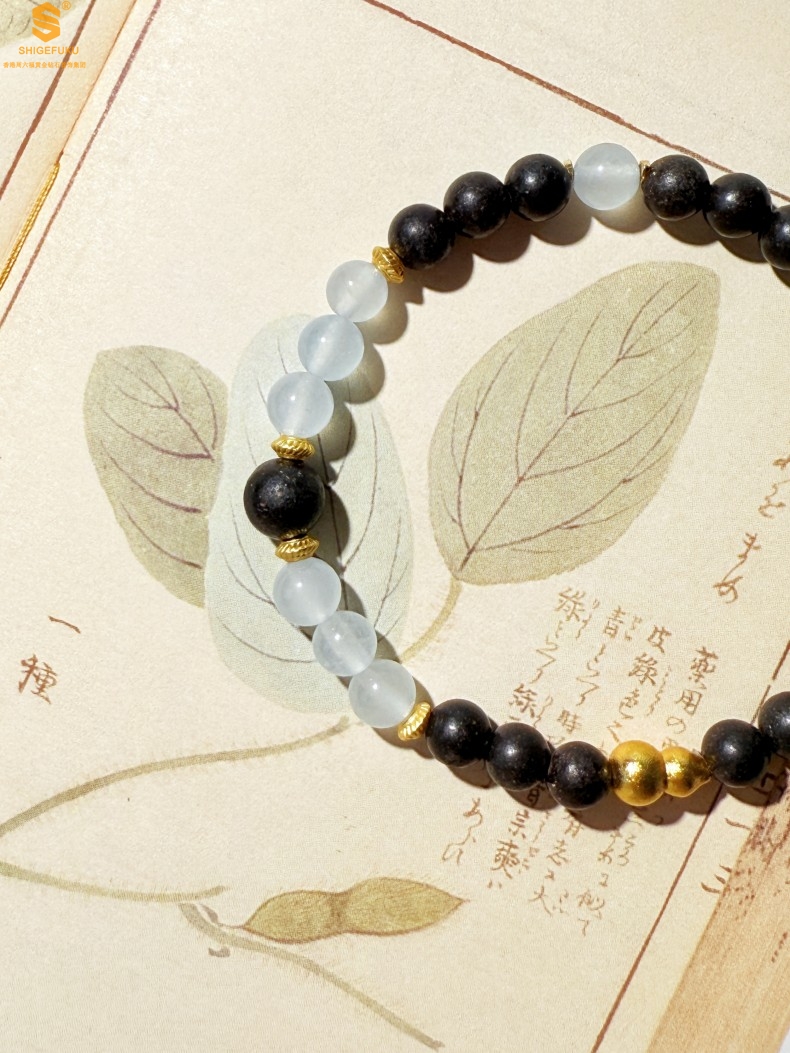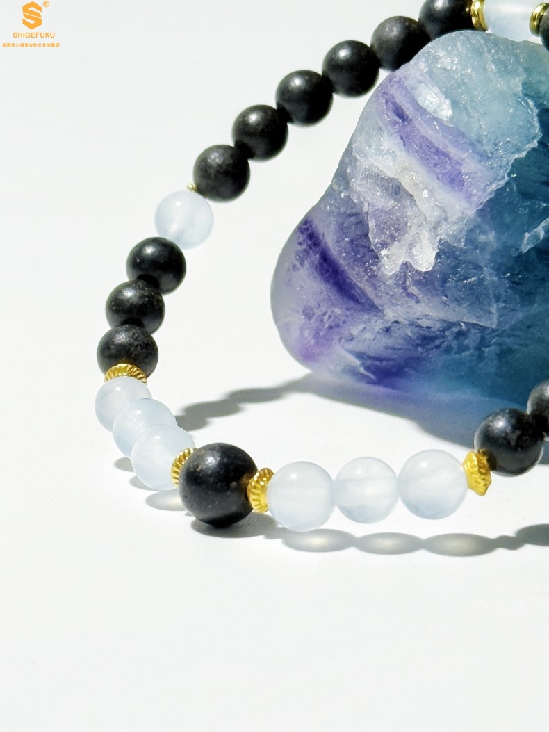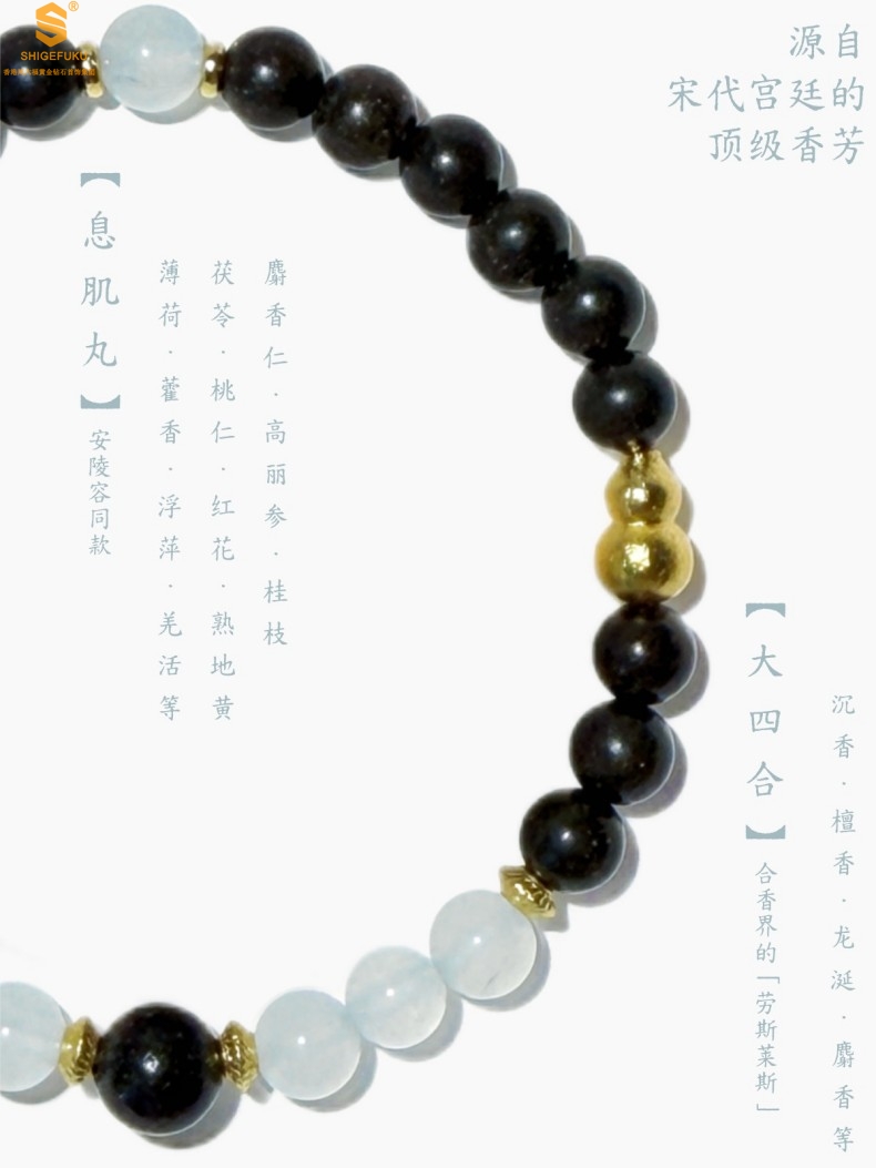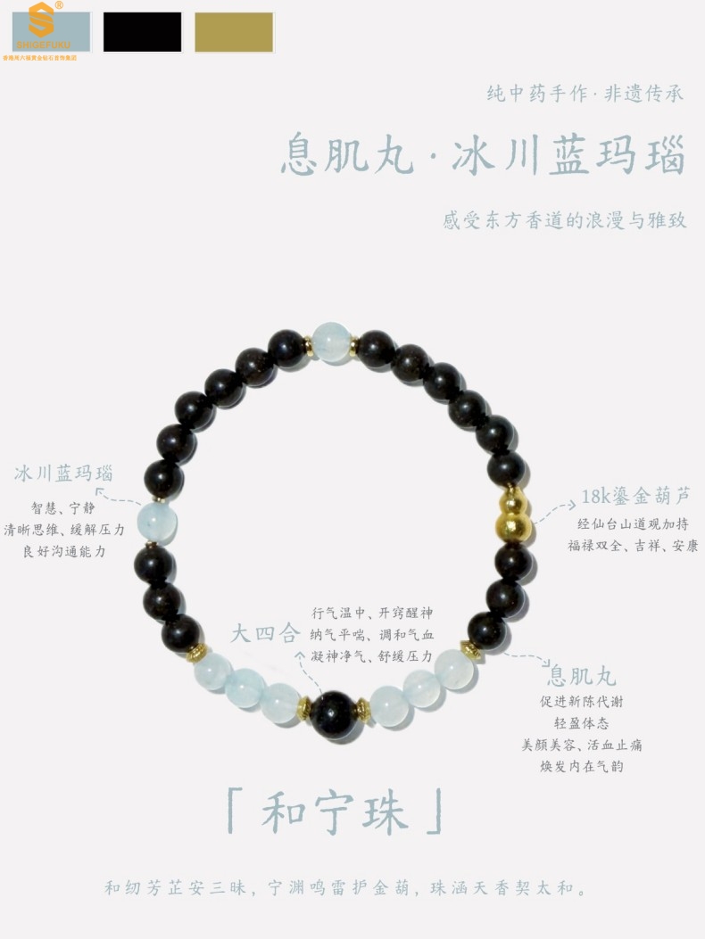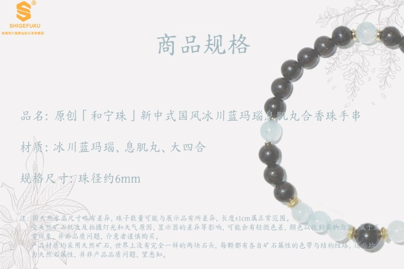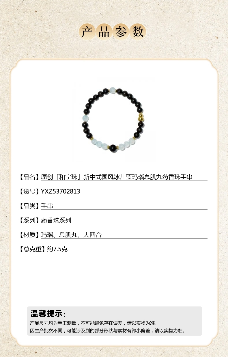 【品名】原创「和宁珠」新中式国风冰川蓝玛瑙息肌丸药香珠手串