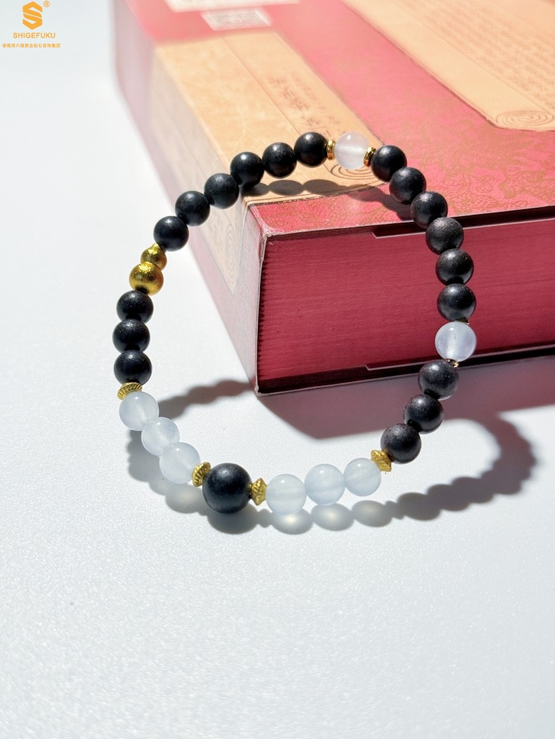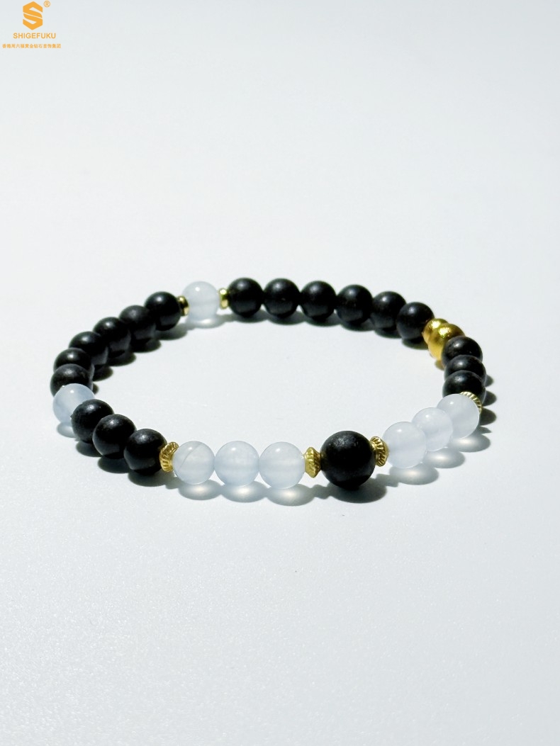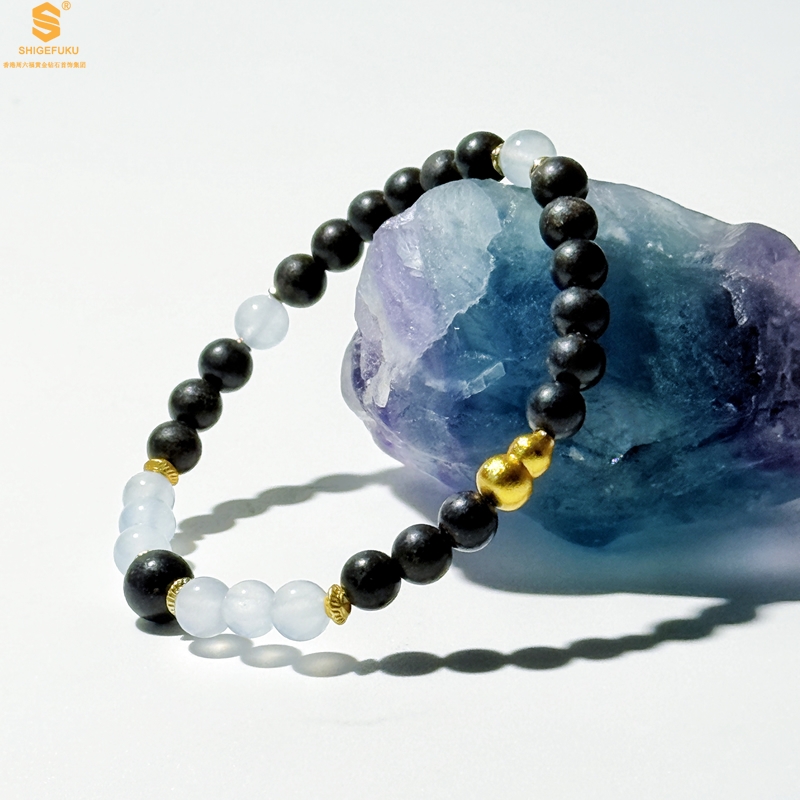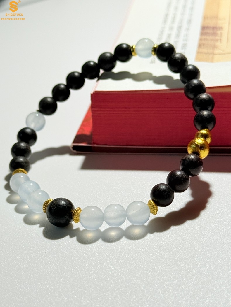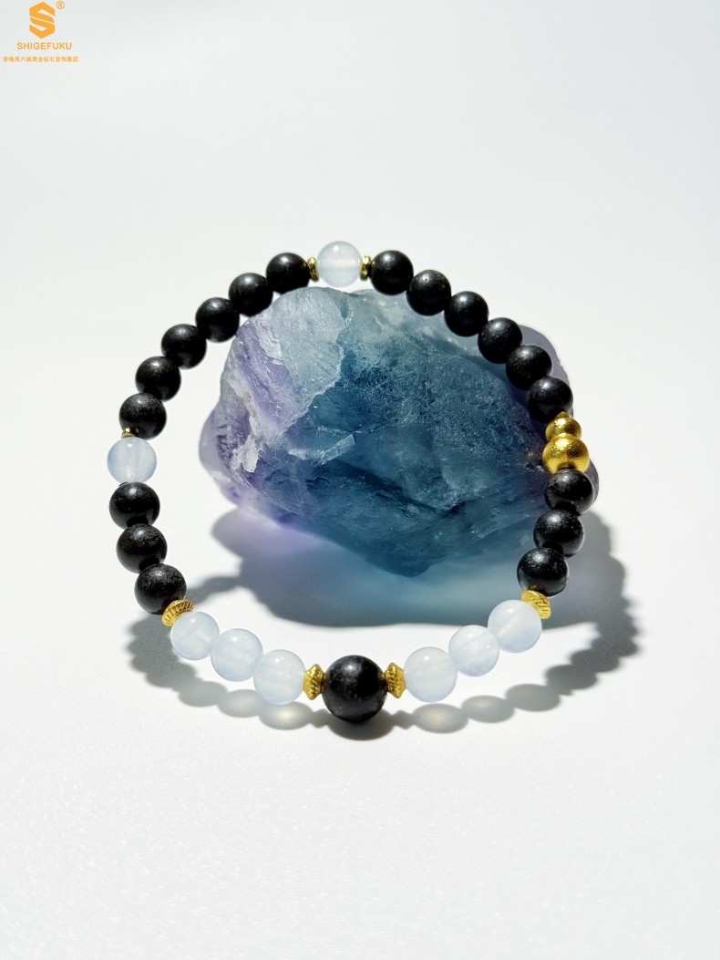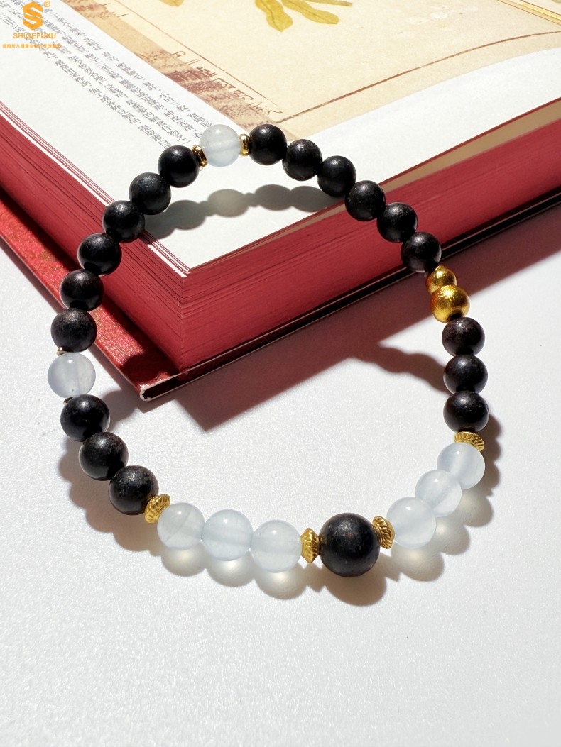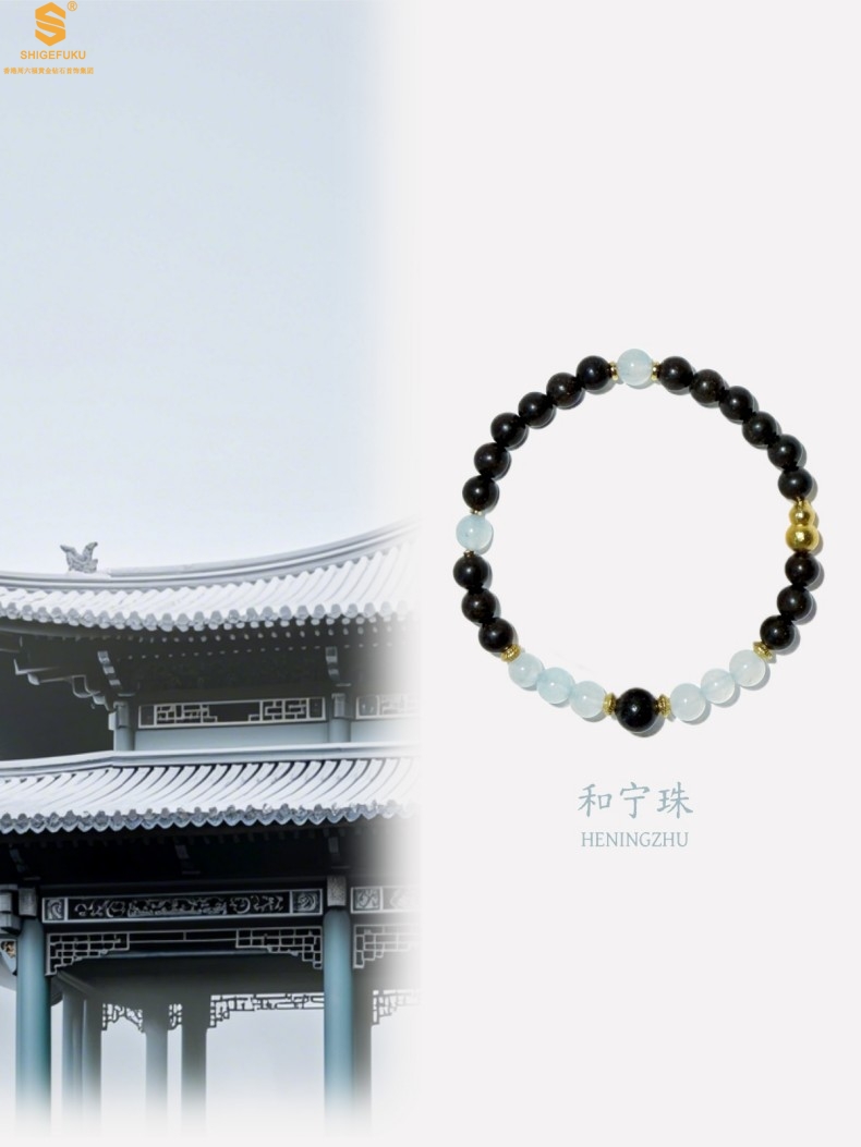 【品名】原创「和宁珠」新中式国风冰川蓝玛瑙息肌丸药香珠手串