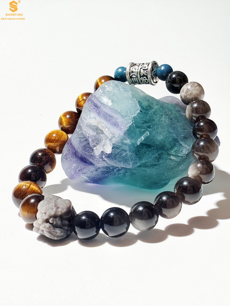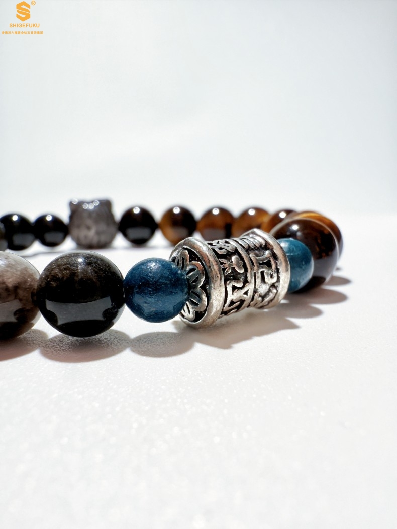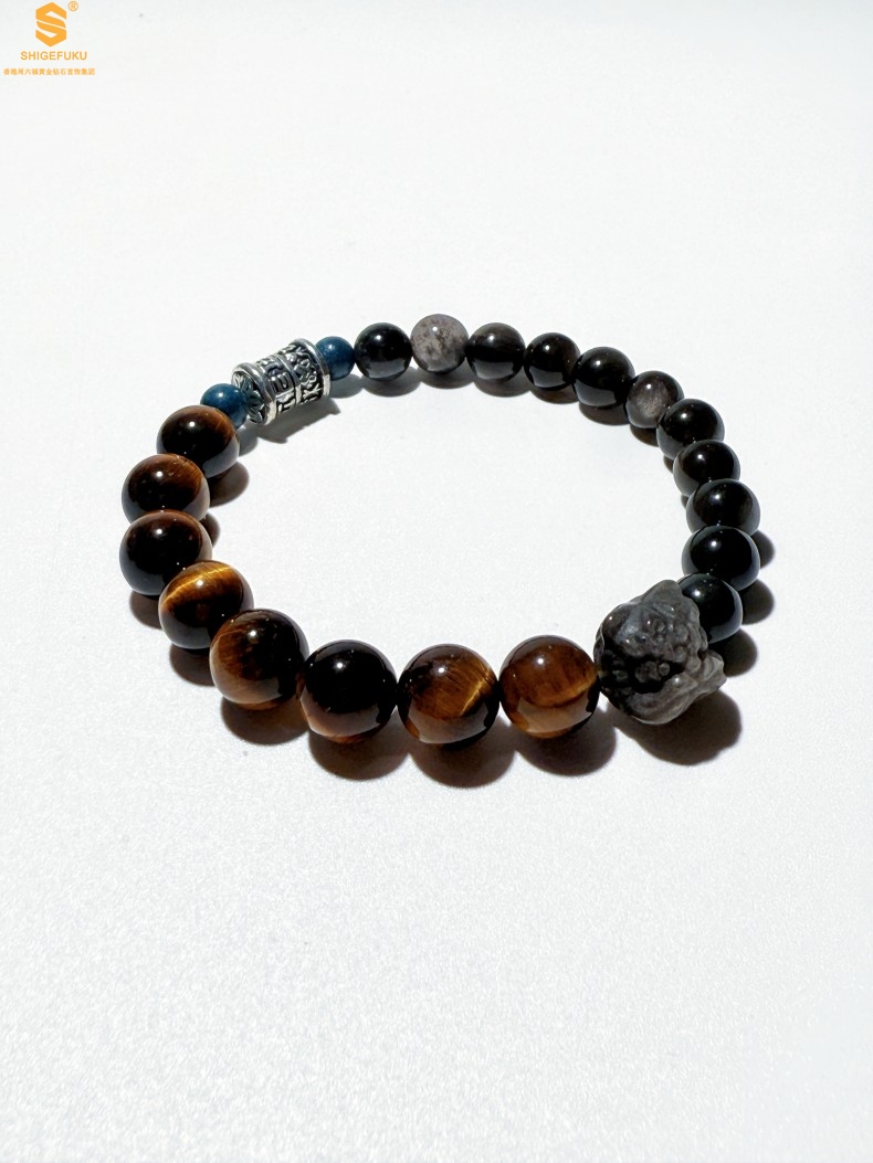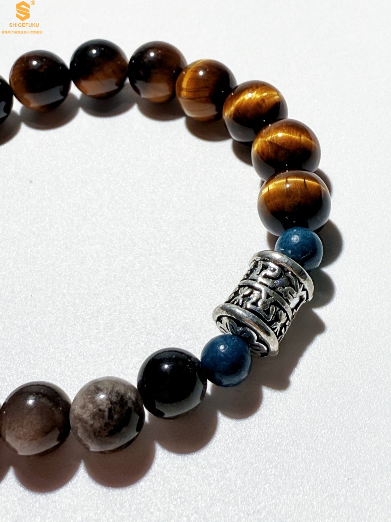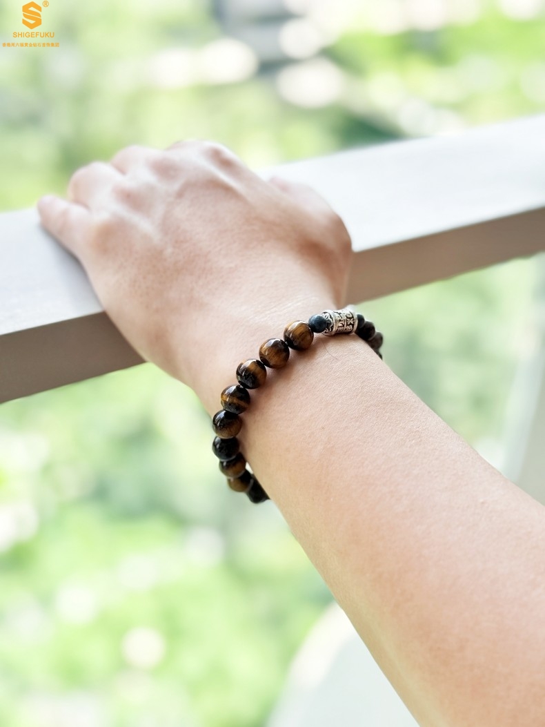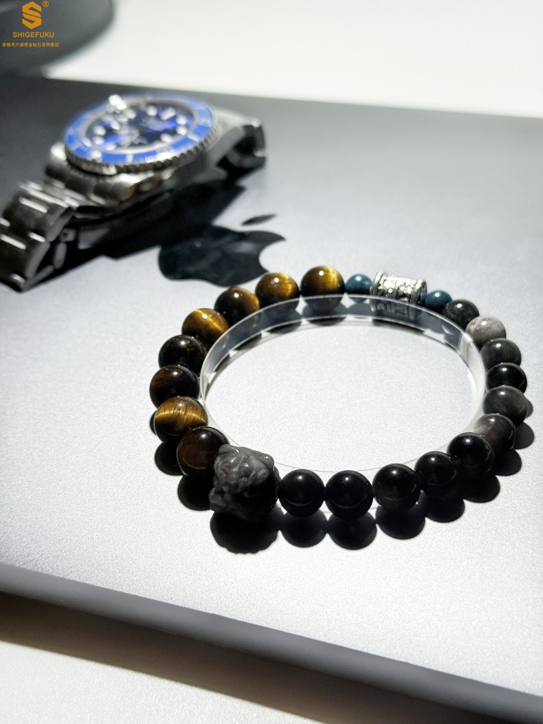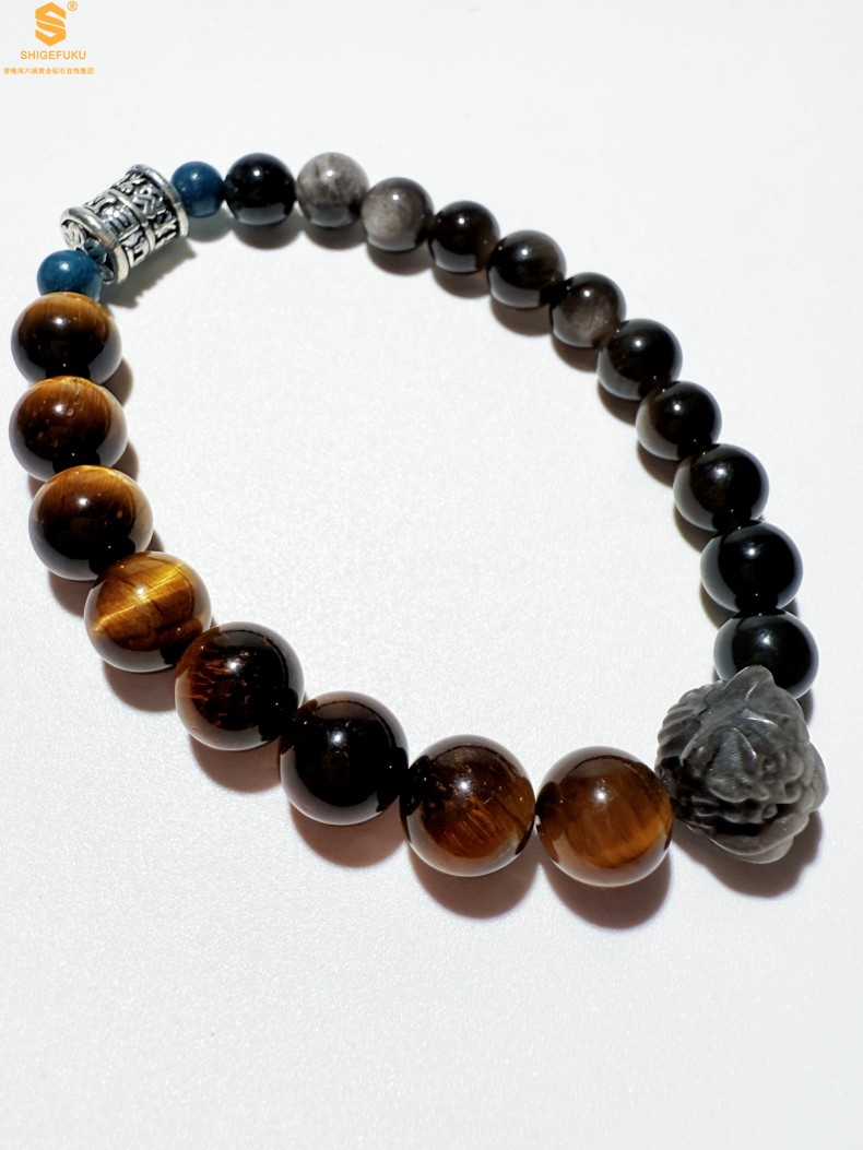 【品名】原创「曜魄珠」新中式国风男士虎眼石银耀石醒狮招财药香珠手串