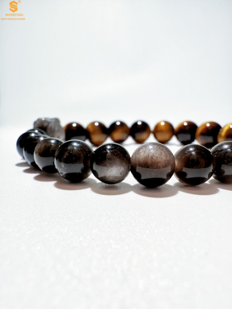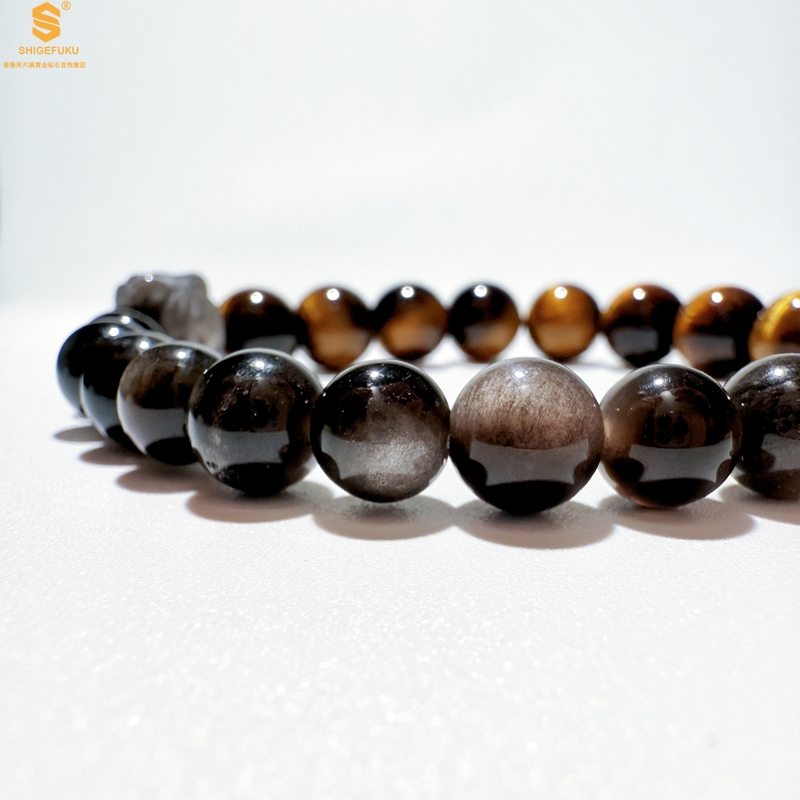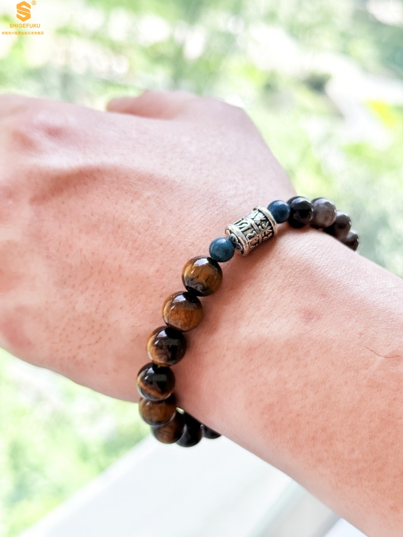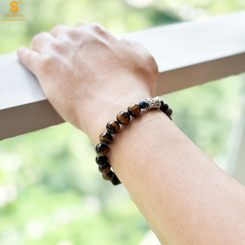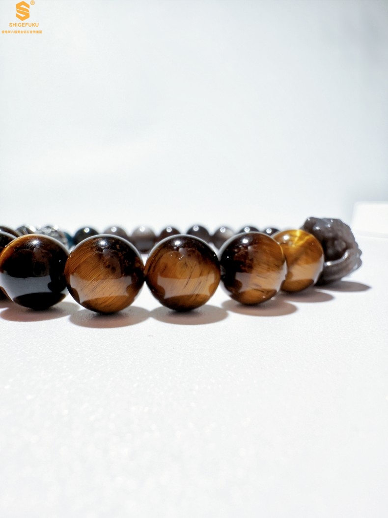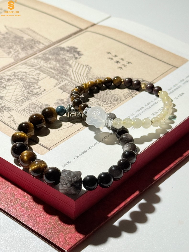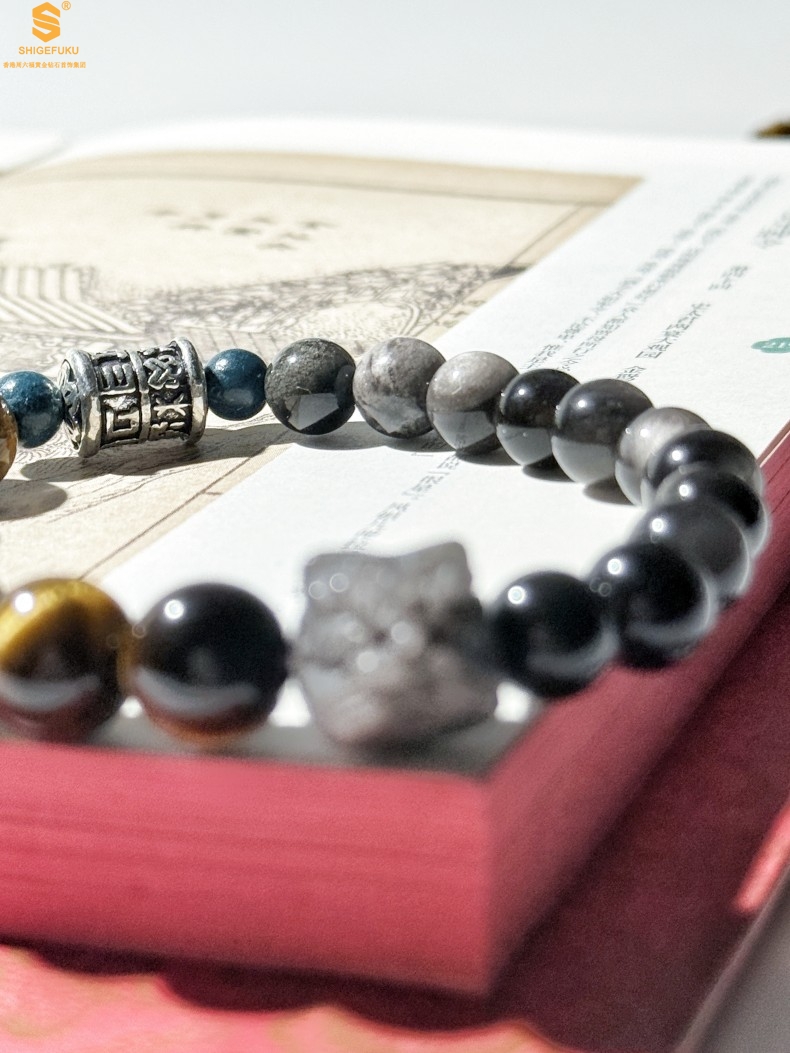 【品名】原创「曜魄珠」新中式国风男士虎眼石银耀石醒狮招财药香珠手串