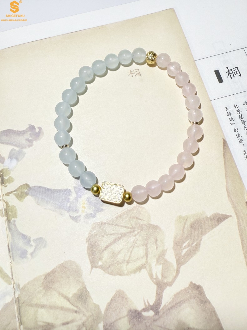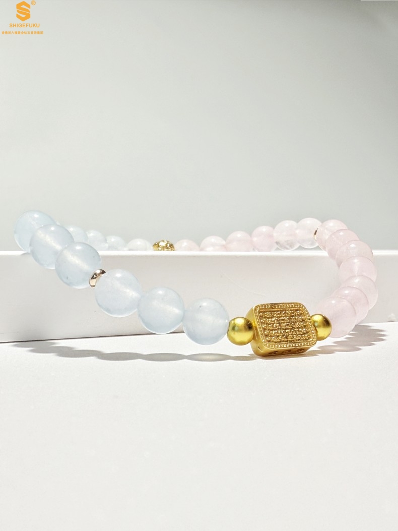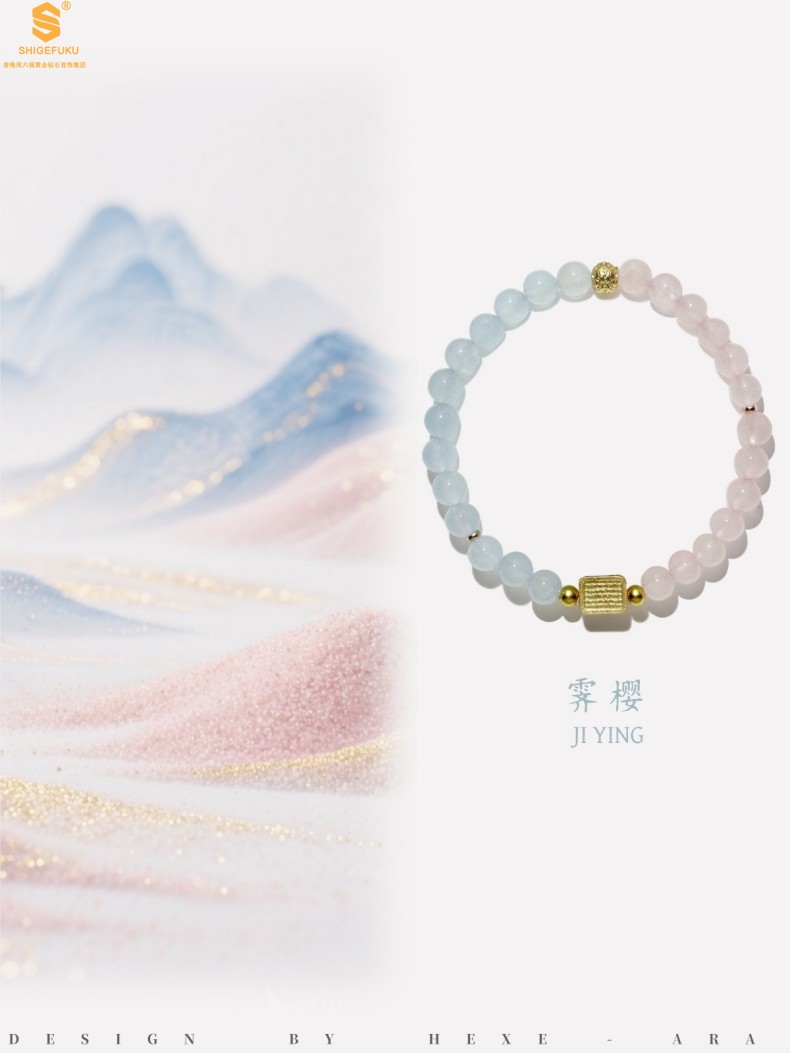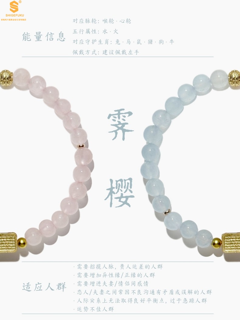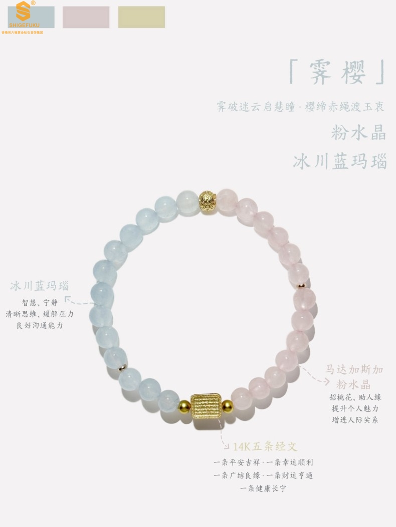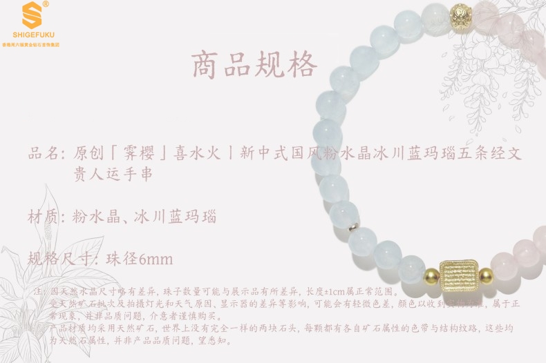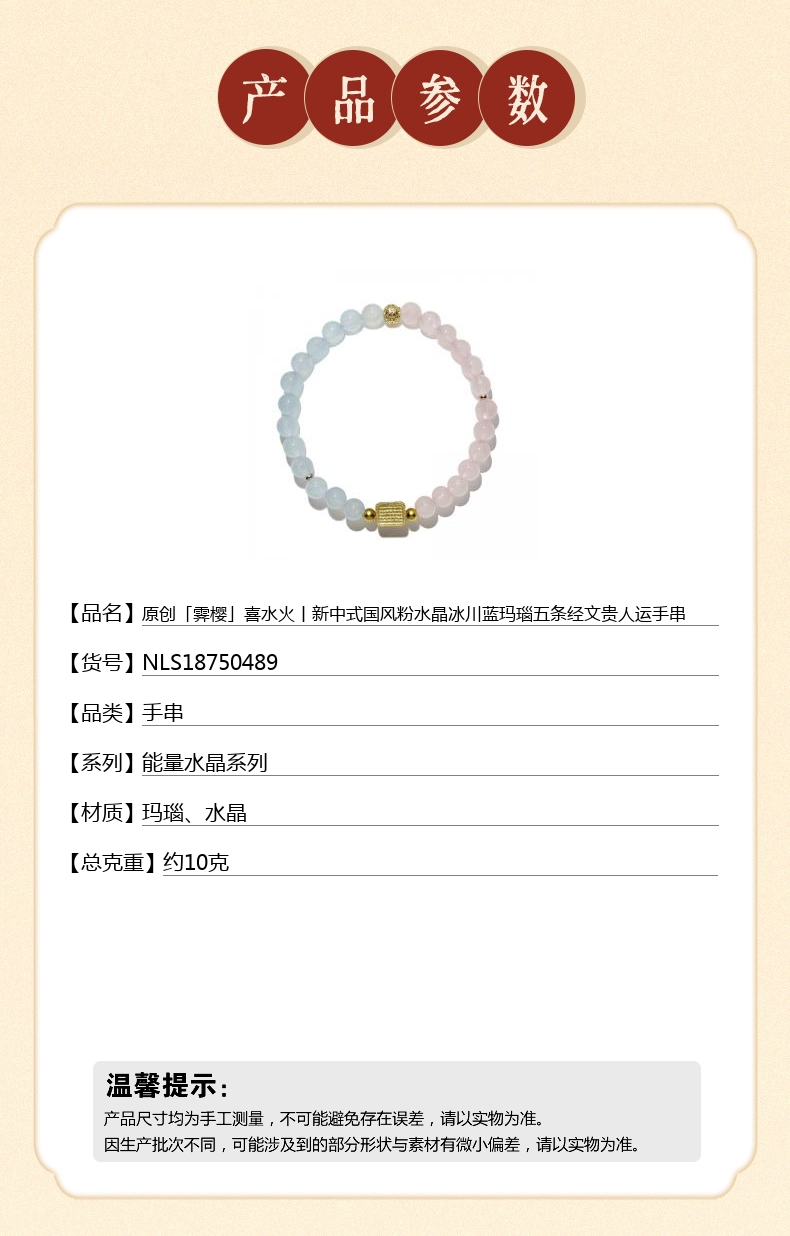 【品名】原创「霁樱」喜水火丨新中式国风粉水晶冰川蓝玛瑙五条经文贵人运手串