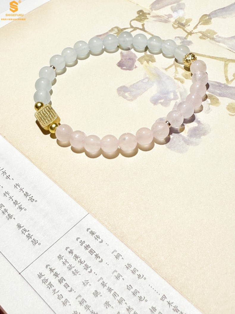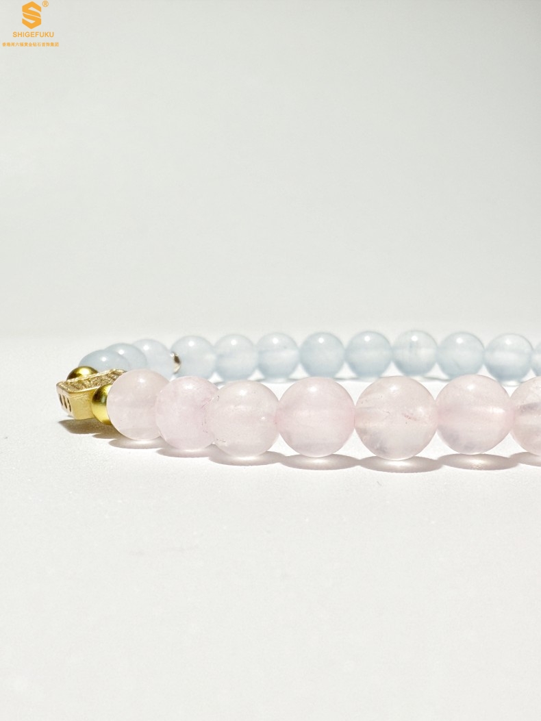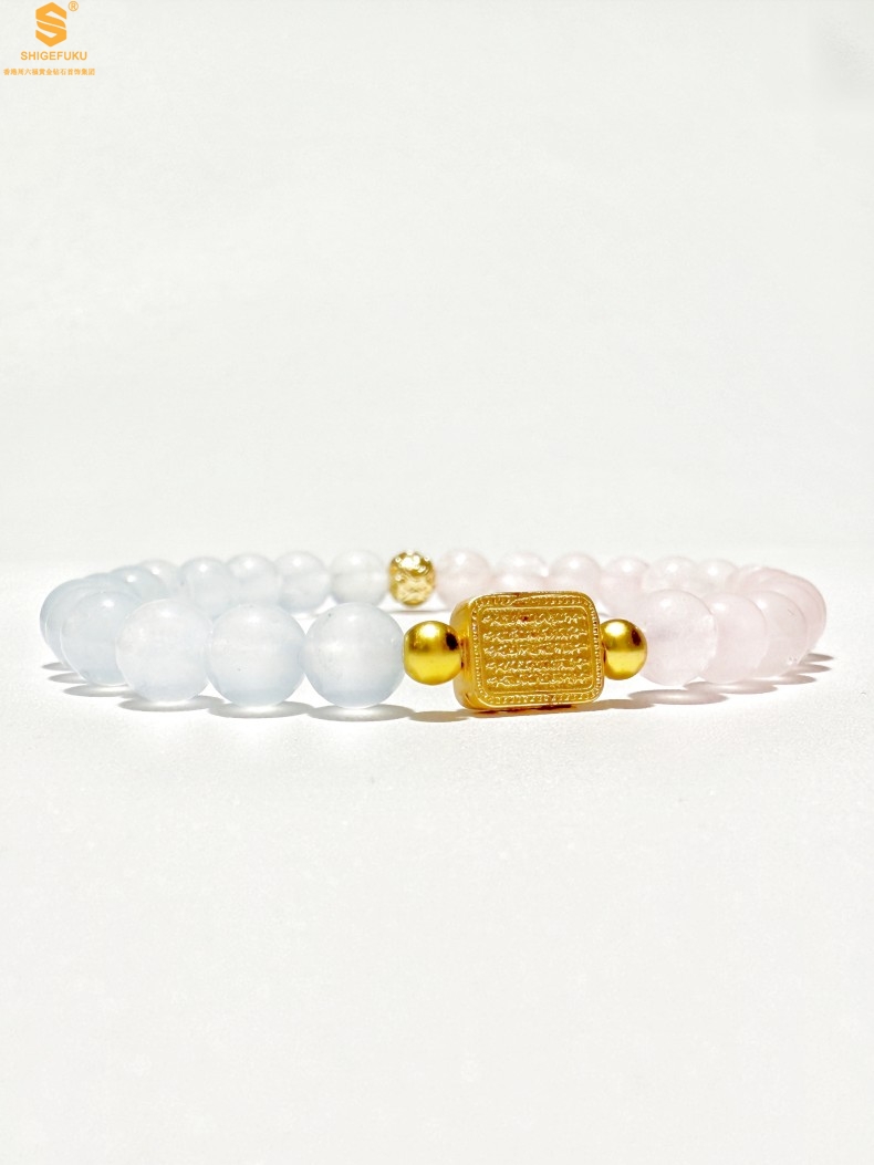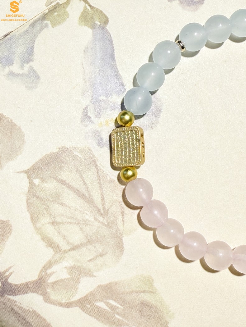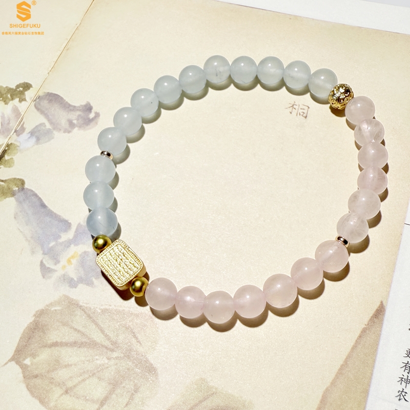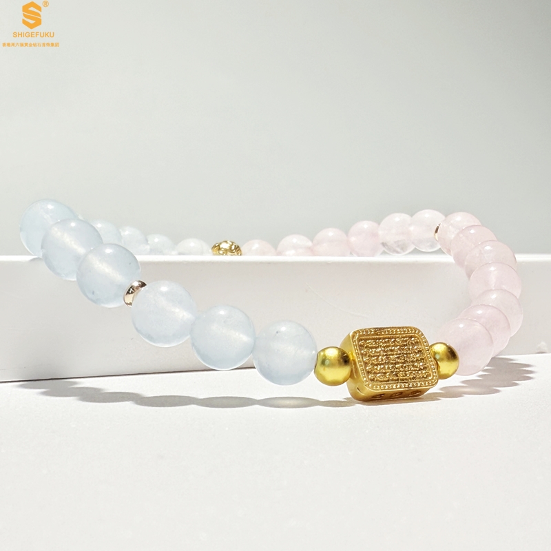 【品名】原创「霁樱」喜水火丨新中式国风粉水晶冰川蓝玛瑙五条经文贵人运手串