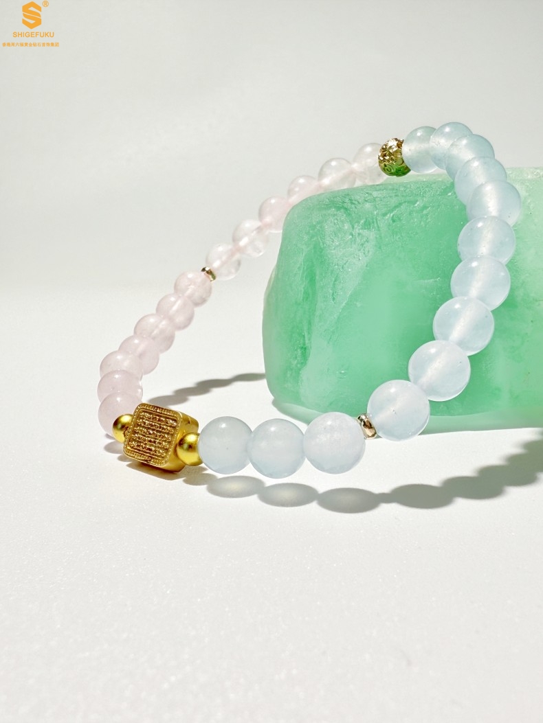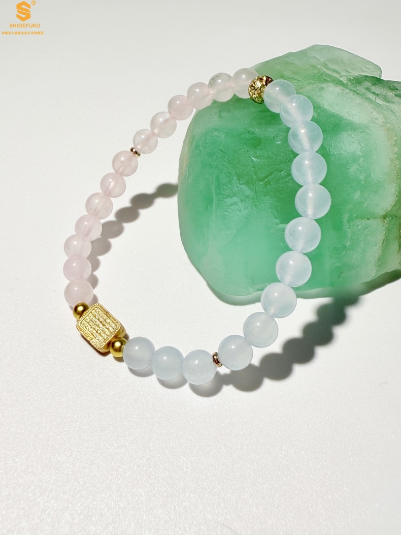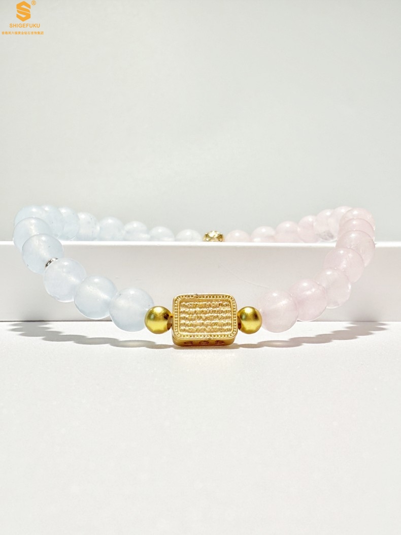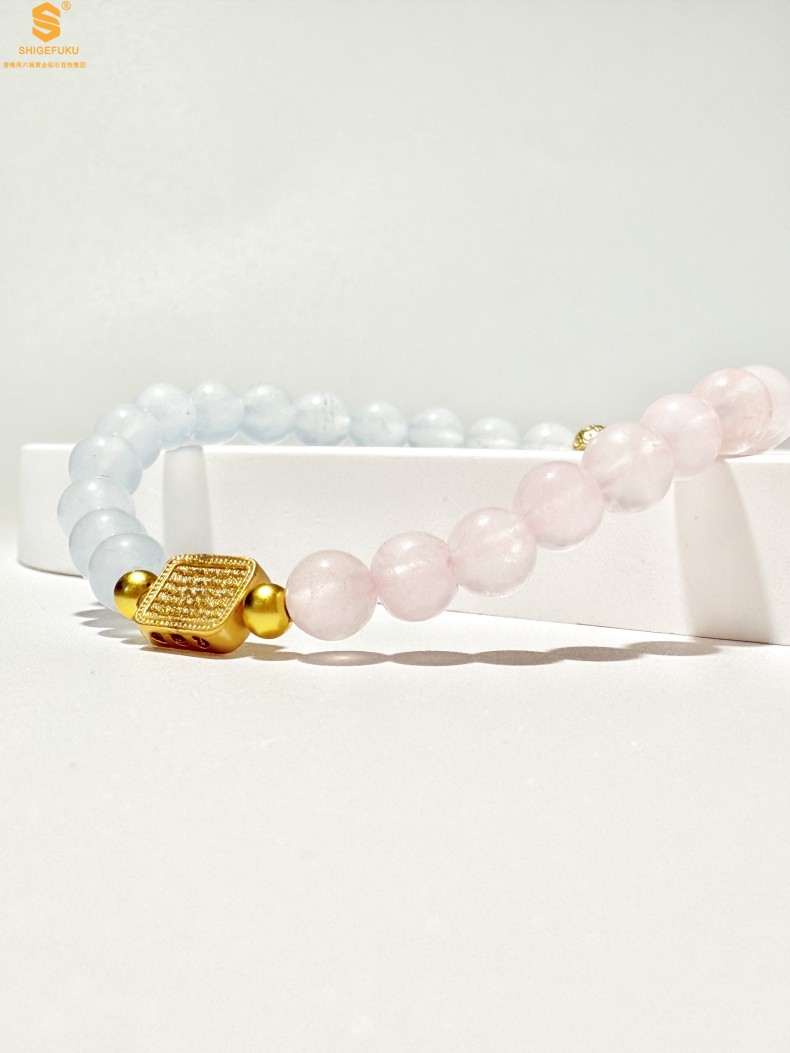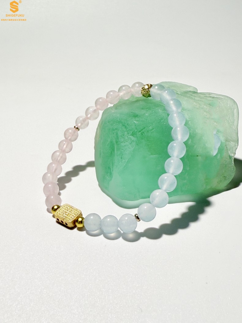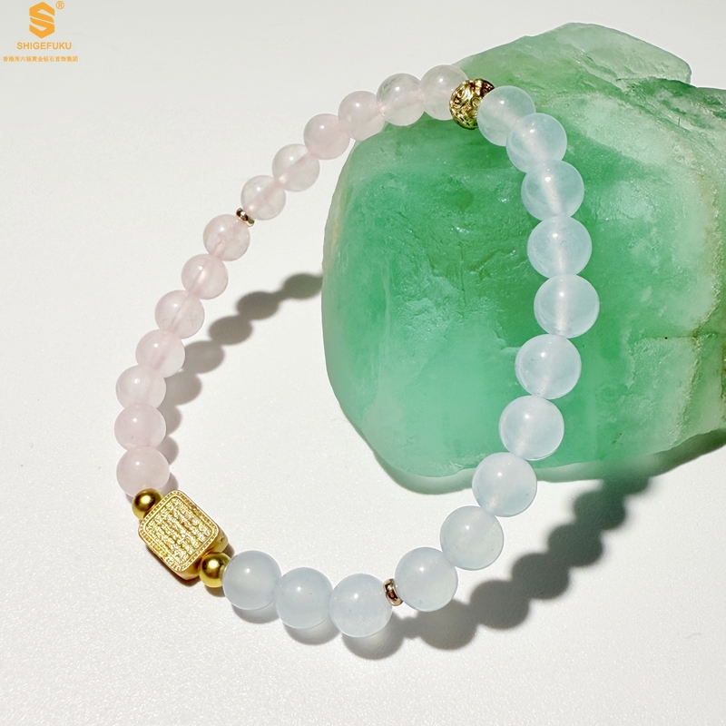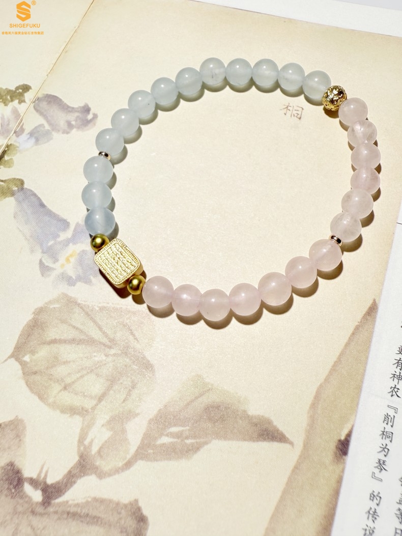 【品名】原创「霁樱」喜水火丨新中式国风粉水晶冰川蓝玛瑙五条经文贵人运手串