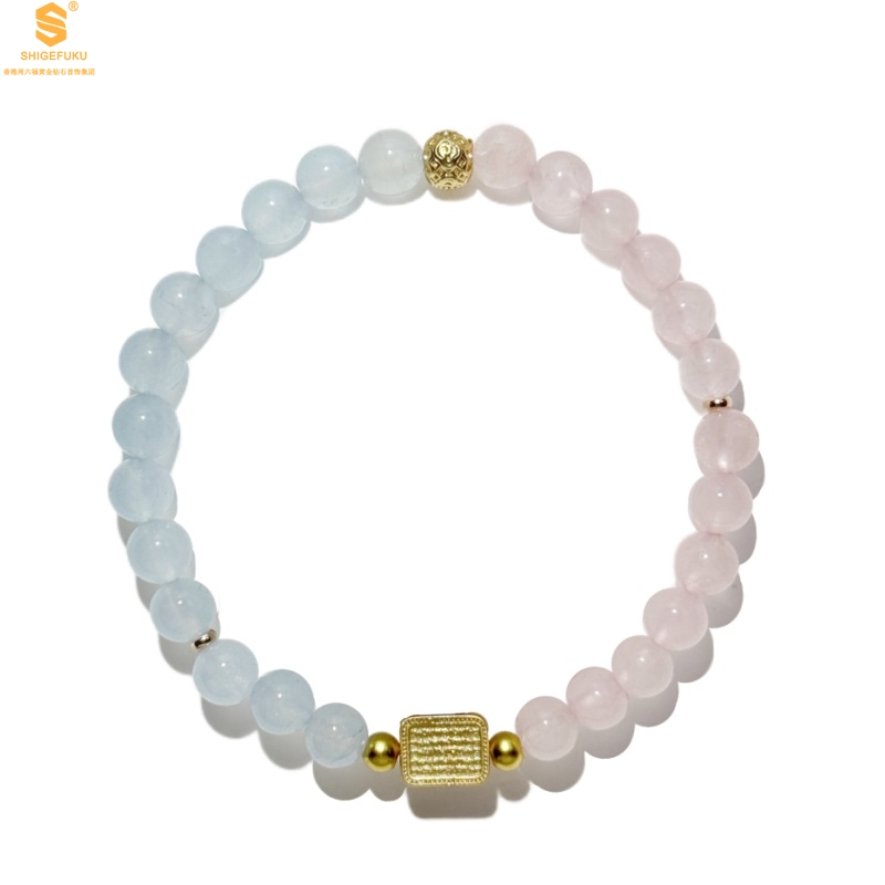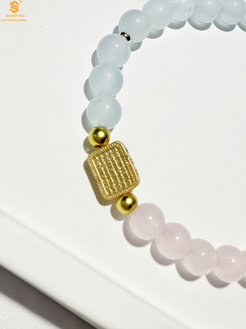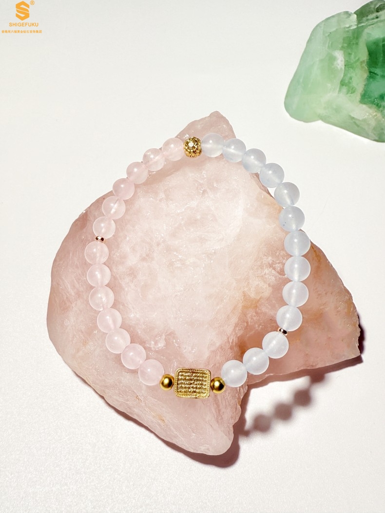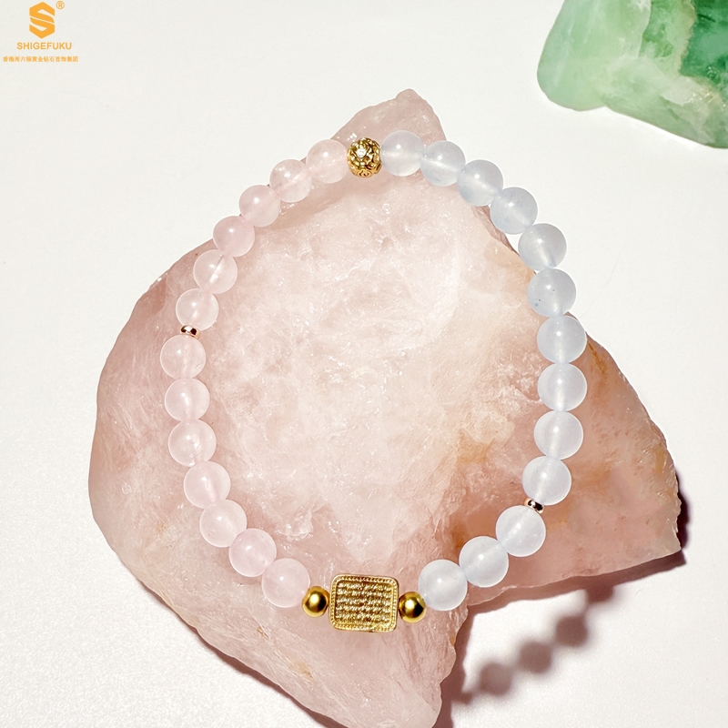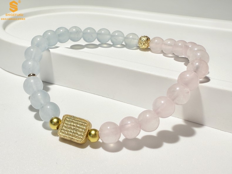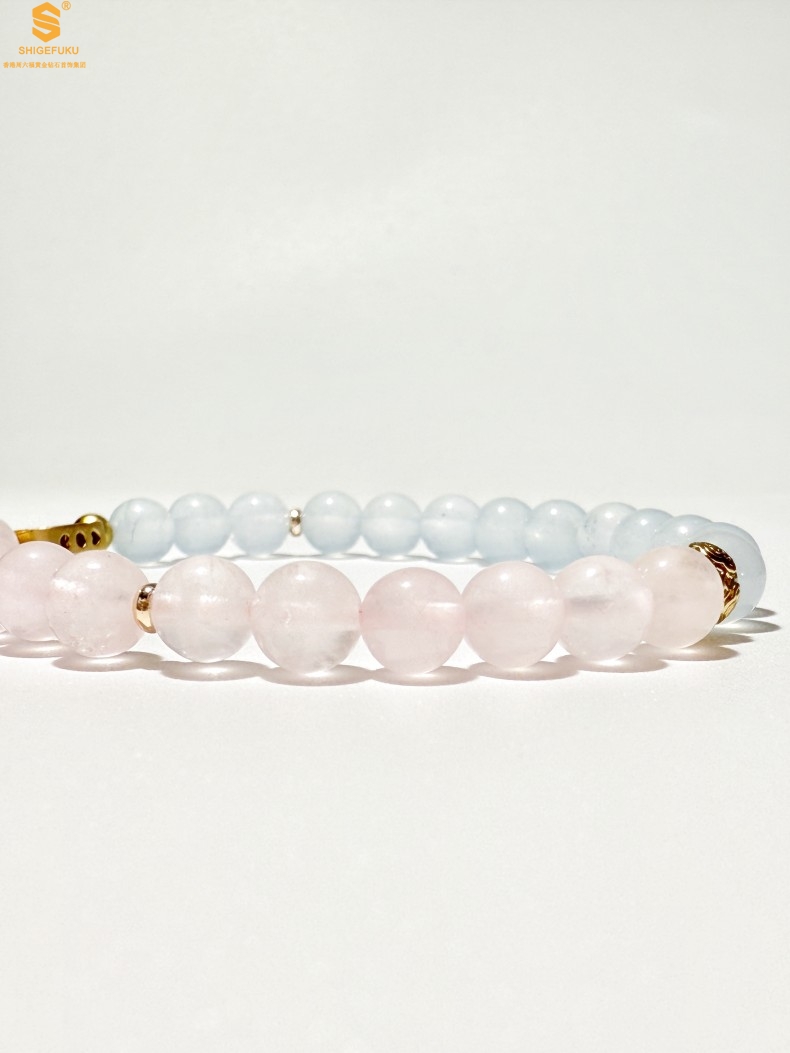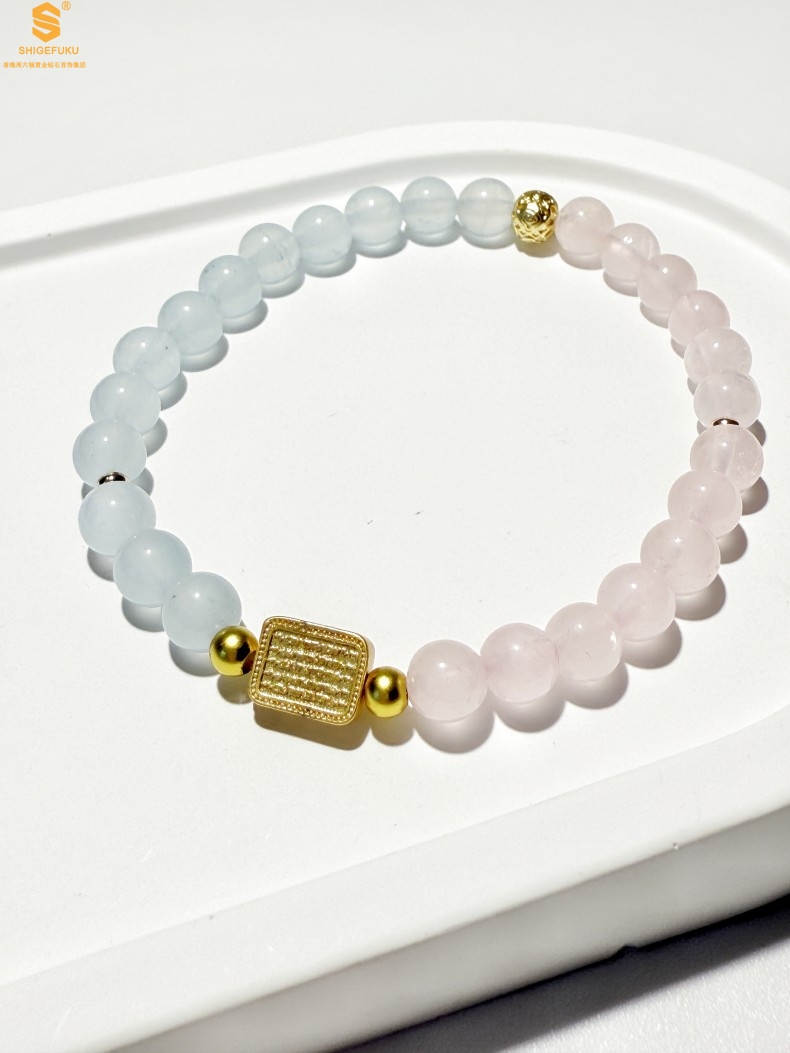 【品名】原创「霁樱」喜水火丨新中式国风粉水晶冰川蓝玛瑙五条经文贵人运手串
