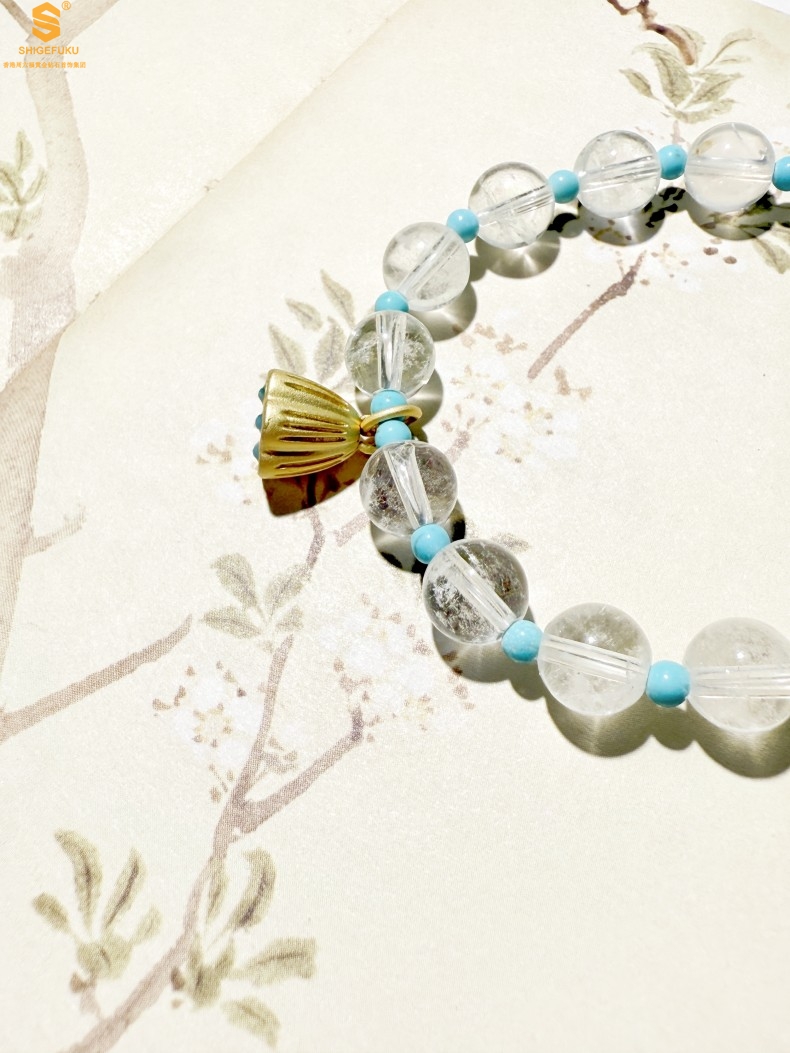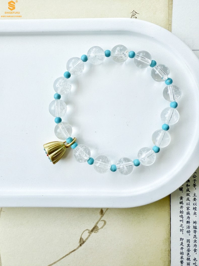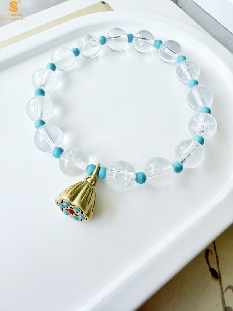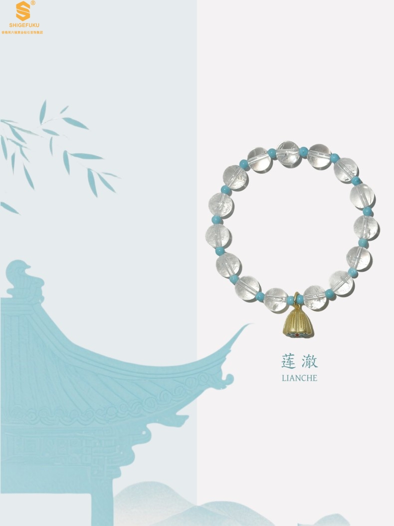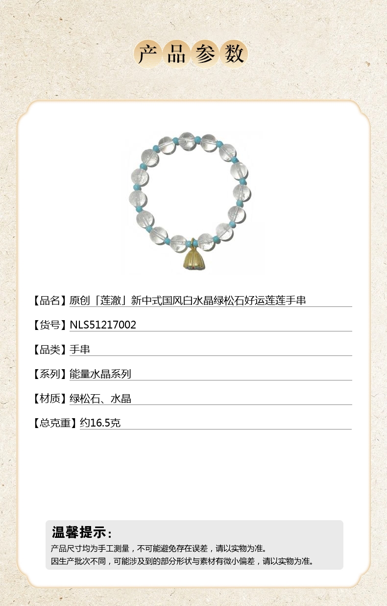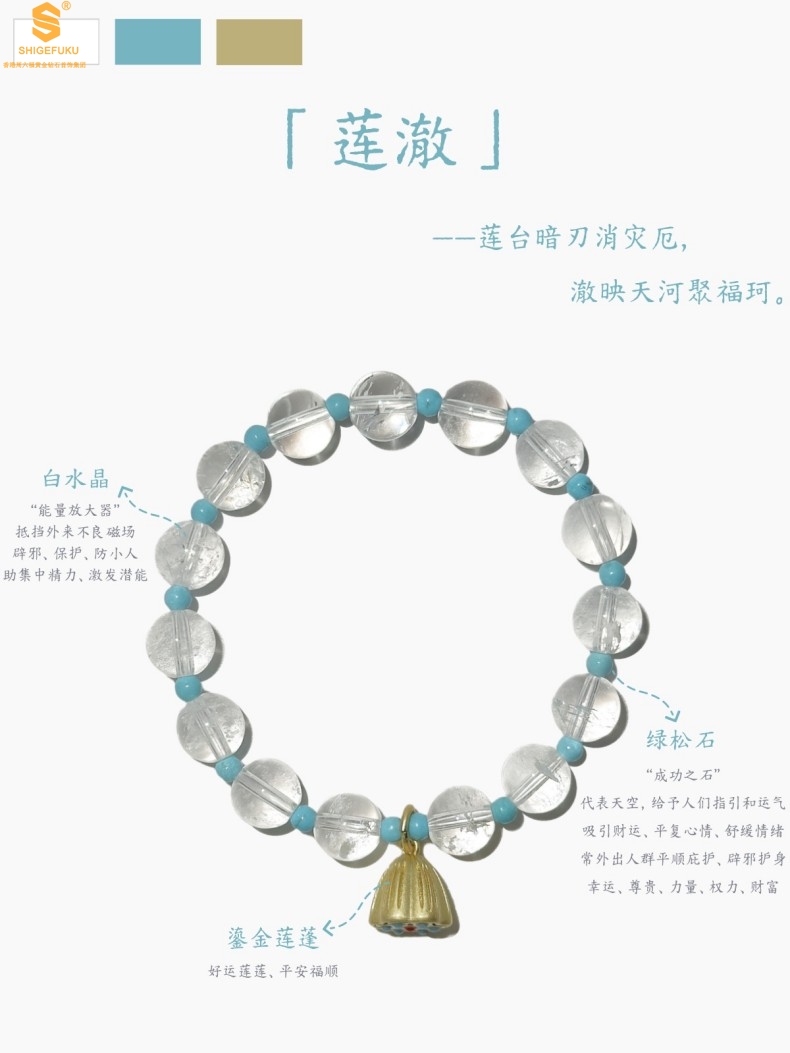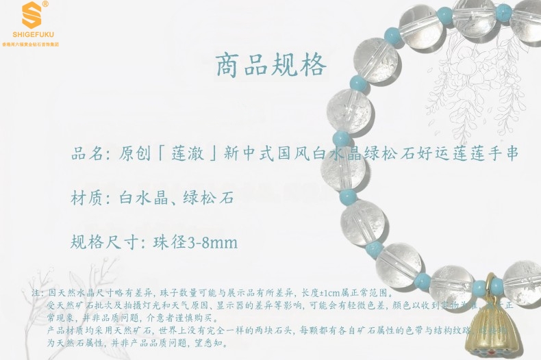 【品名】原创「莲澈」新中式国风白水晶绿松石好运莲莲手串