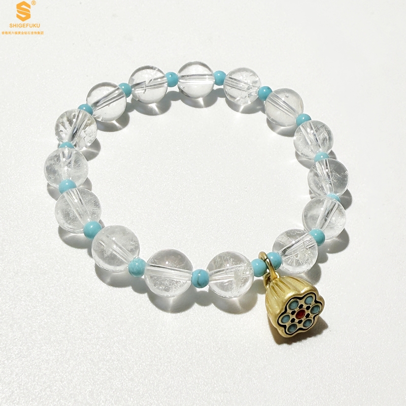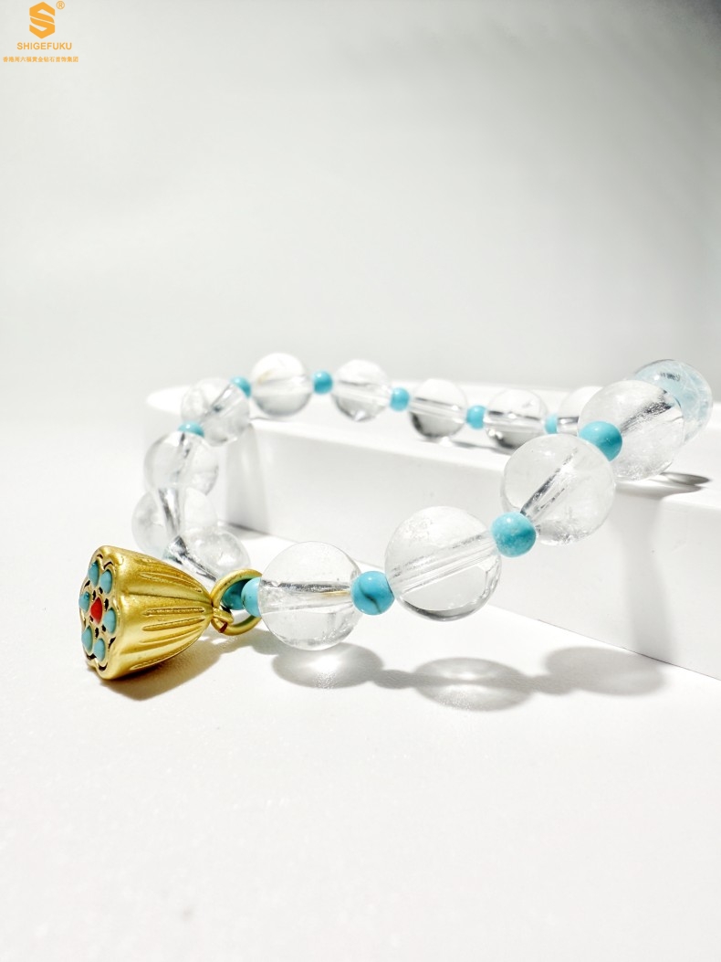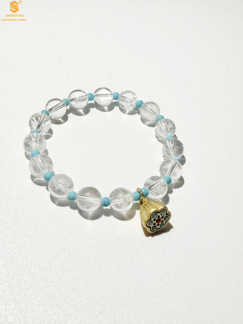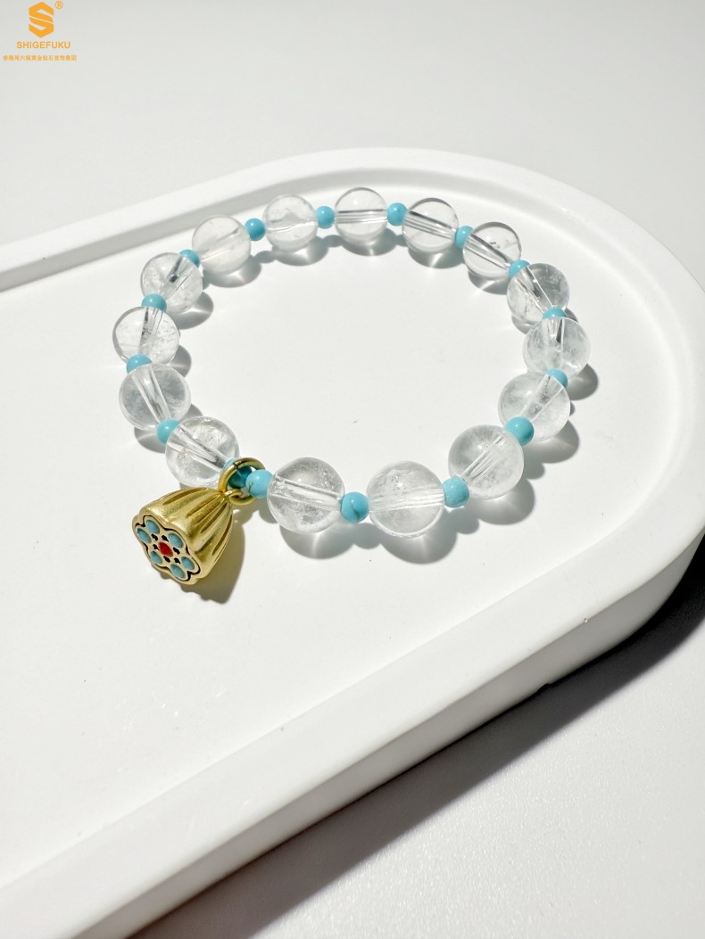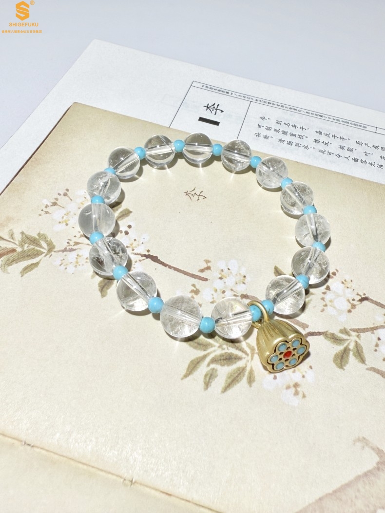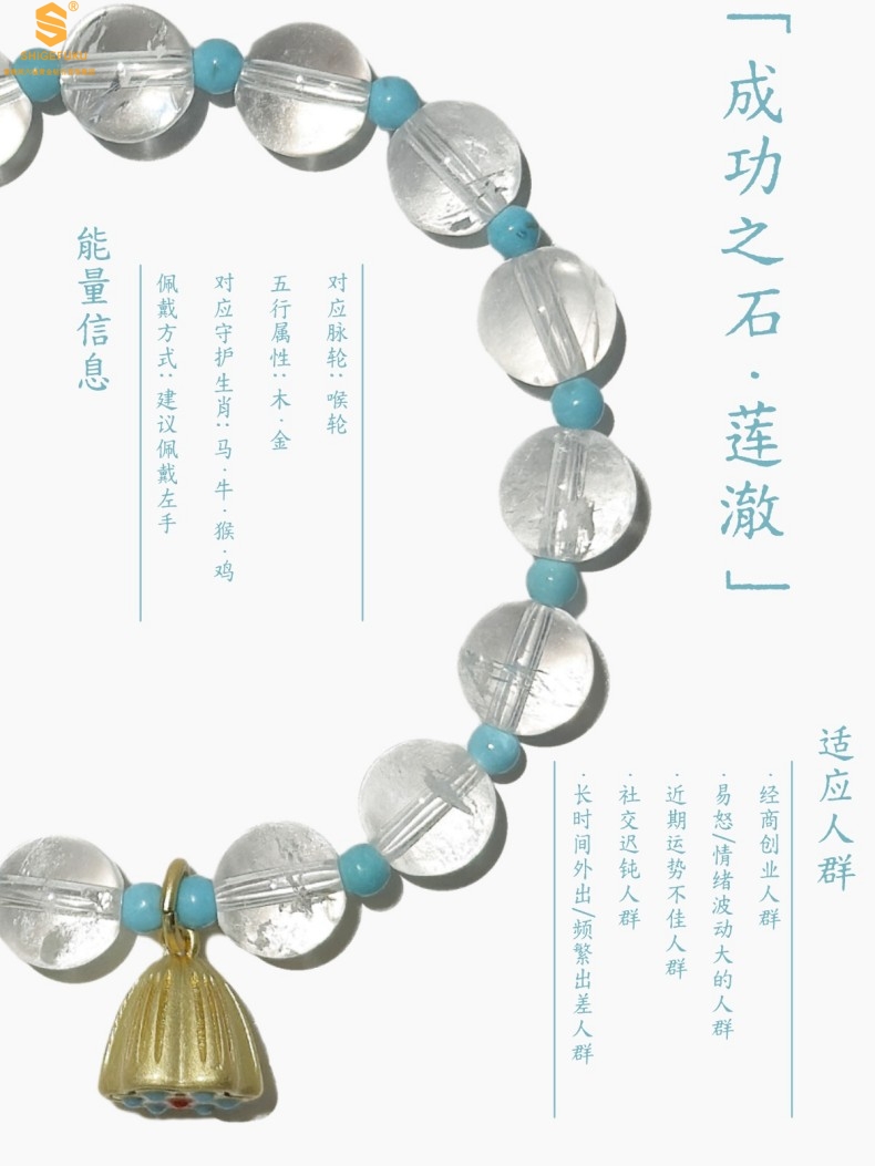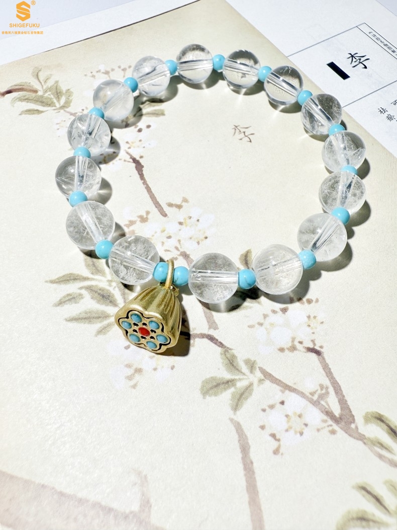 【品名】原创「莲澈」新中式国风白水晶绿松石好运莲莲手串