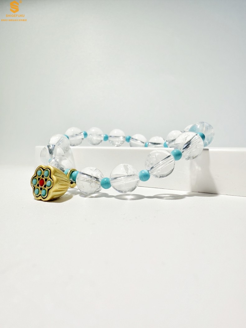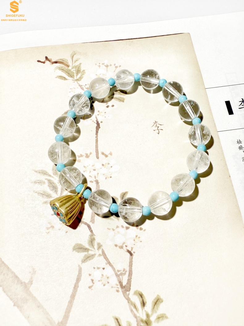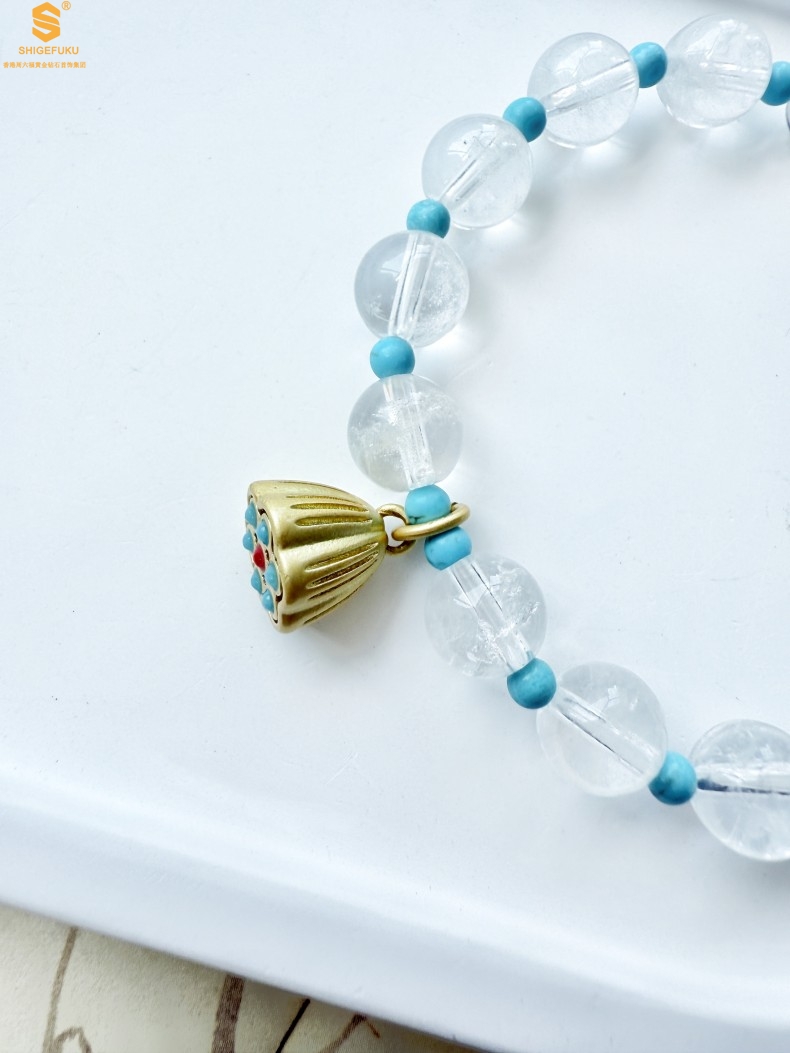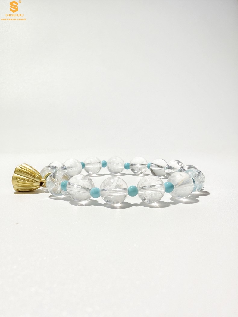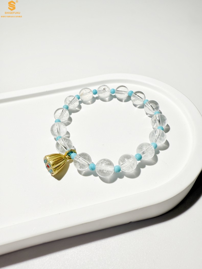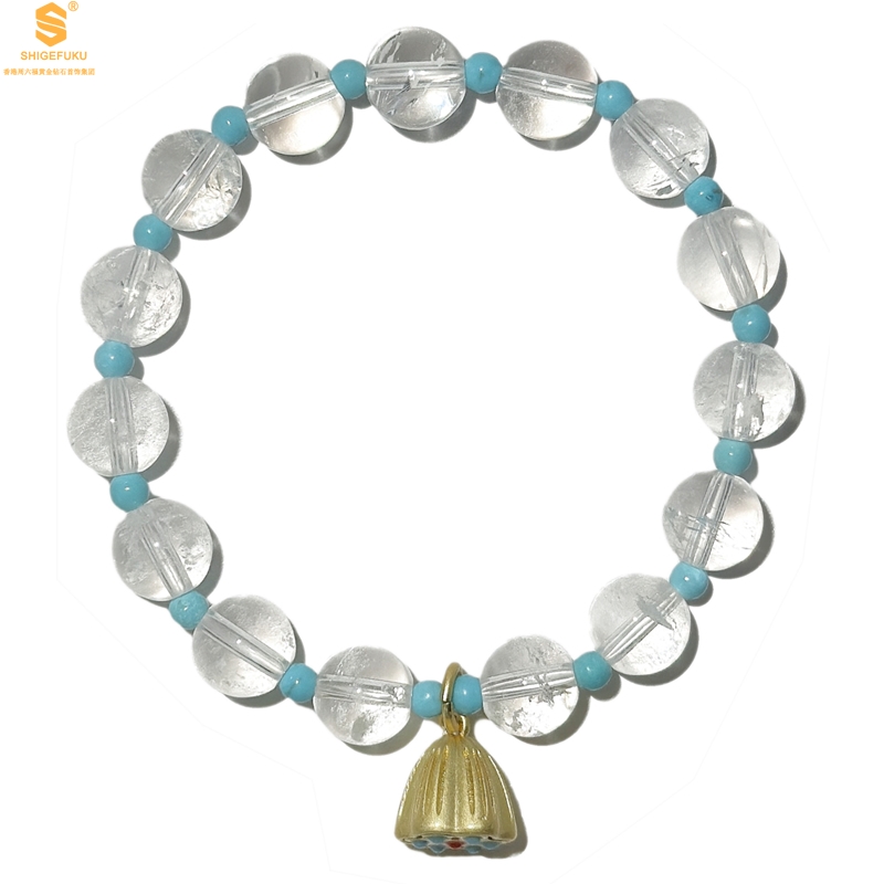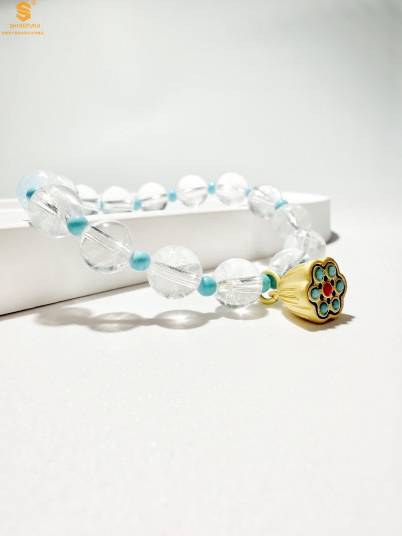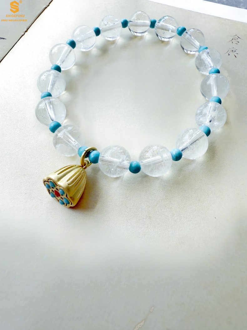 【品名】原创「莲澈」新中式国风白水晶绿松石好运莲莲手串