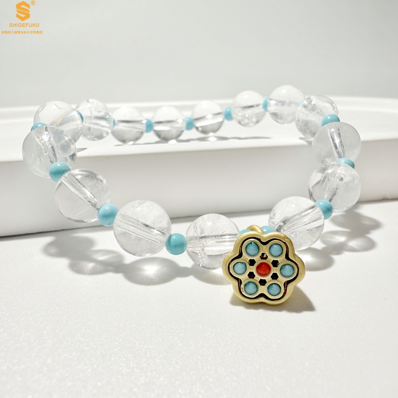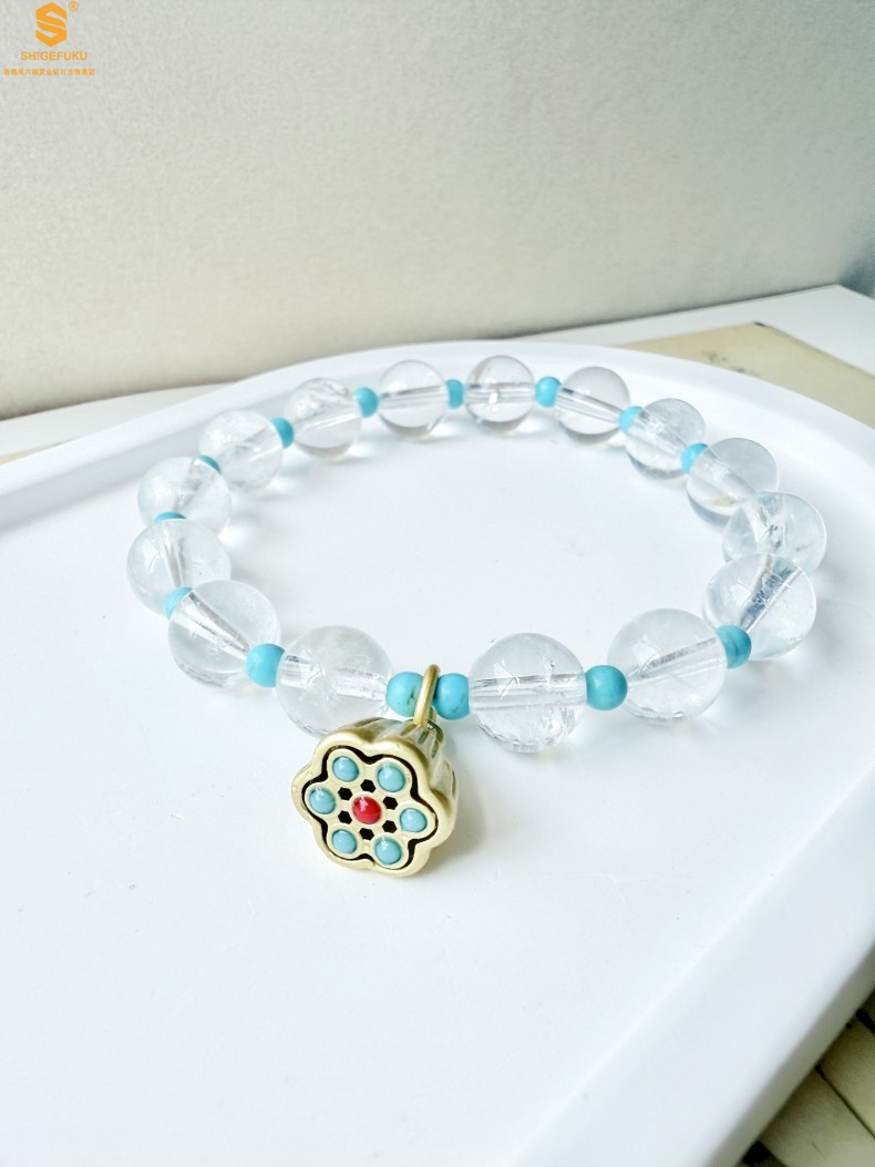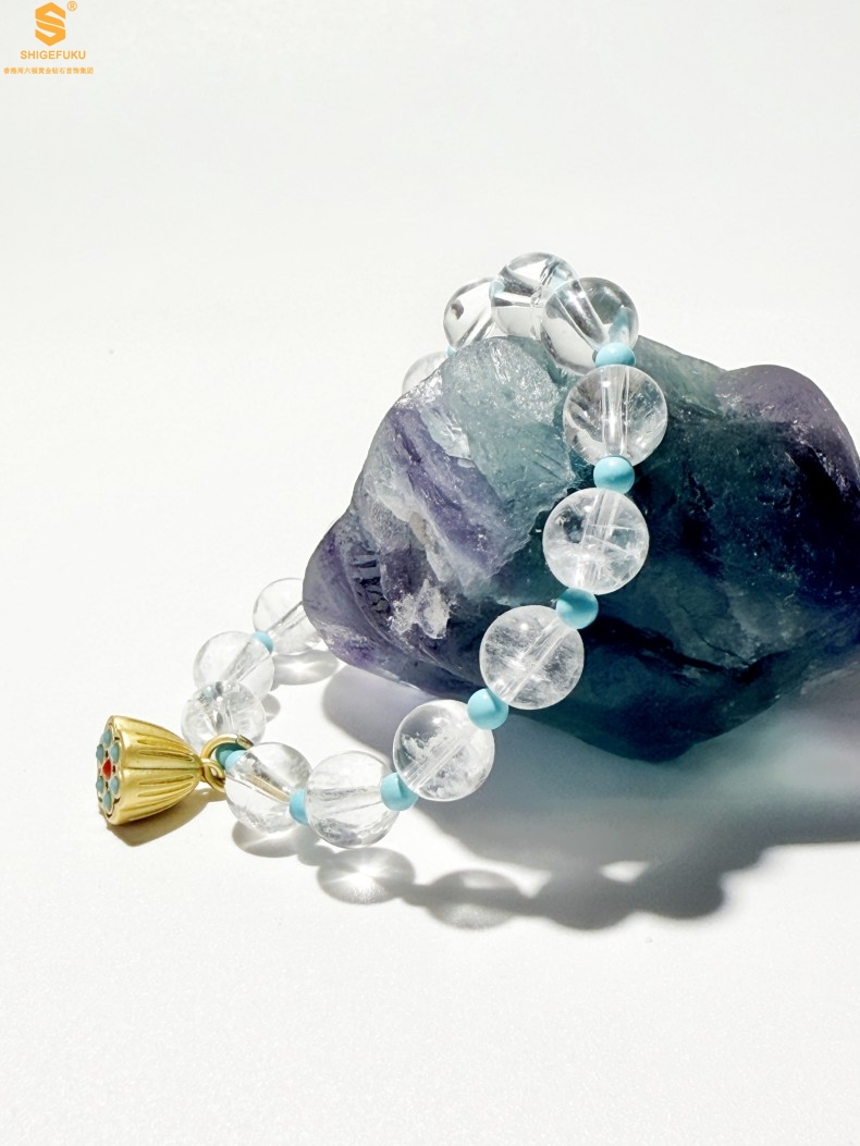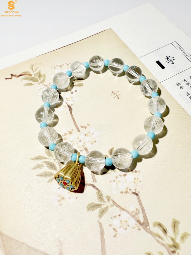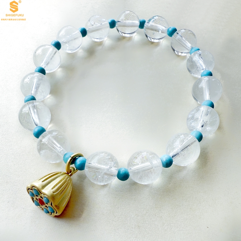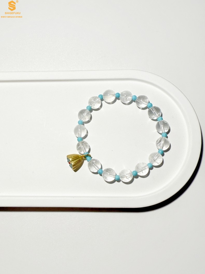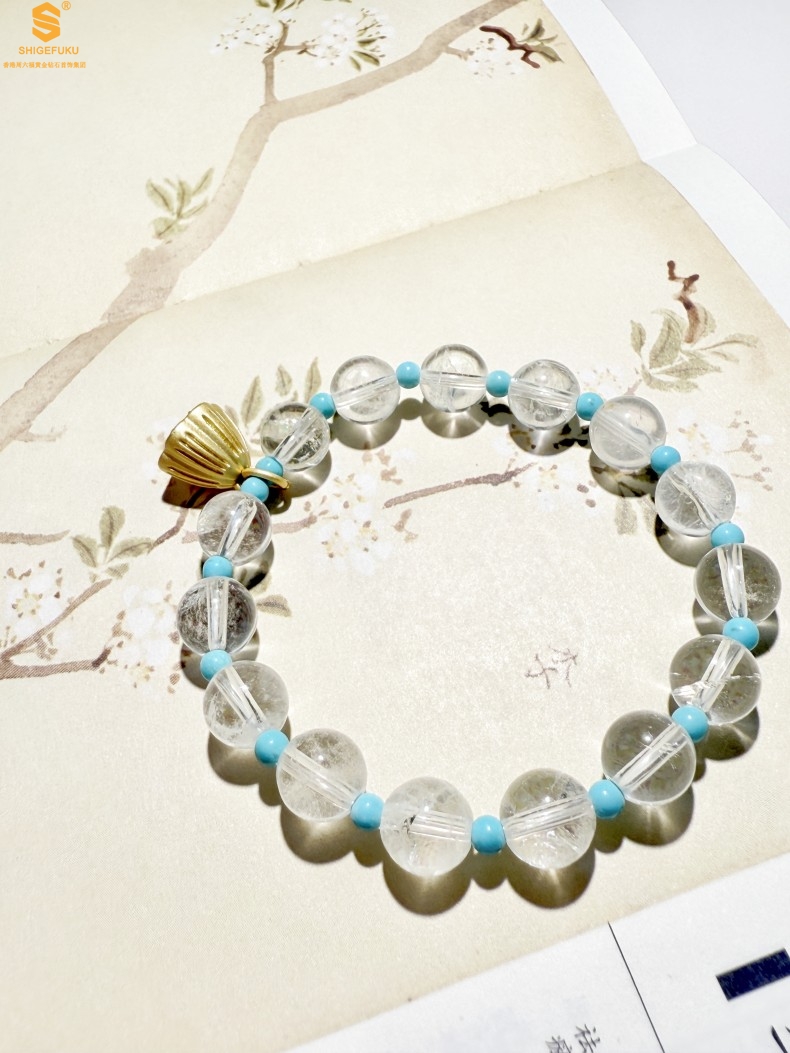 【品名】原创「莲澈」新中式国风白水晶绿松石好运莲莲手串