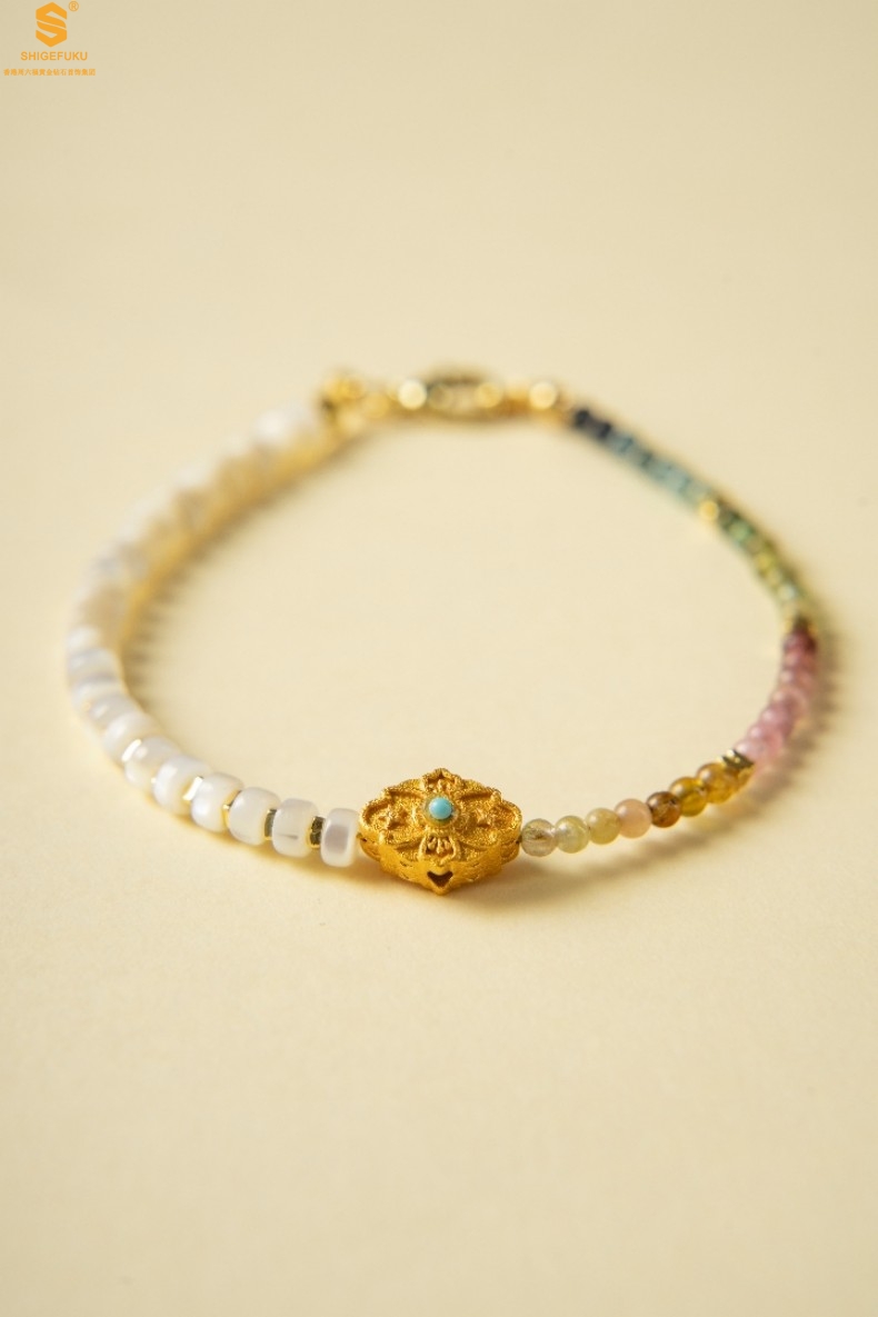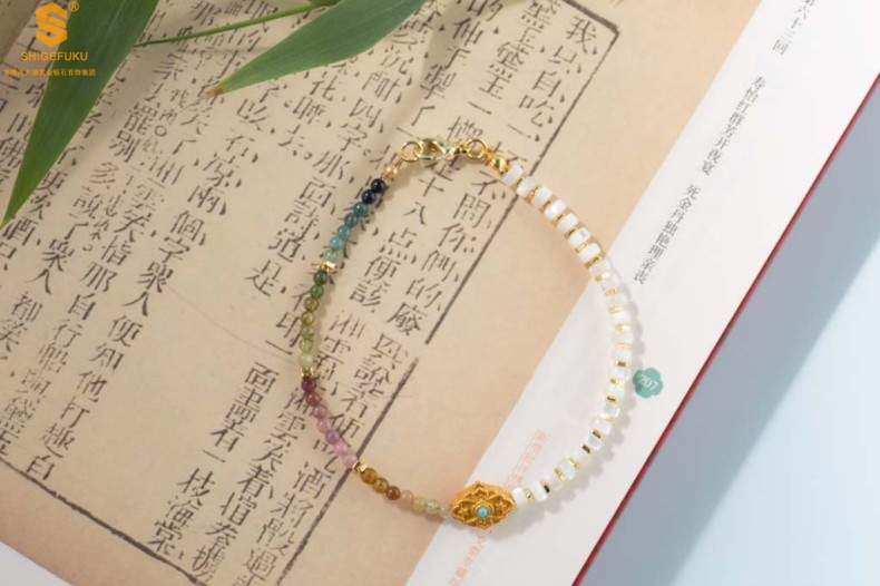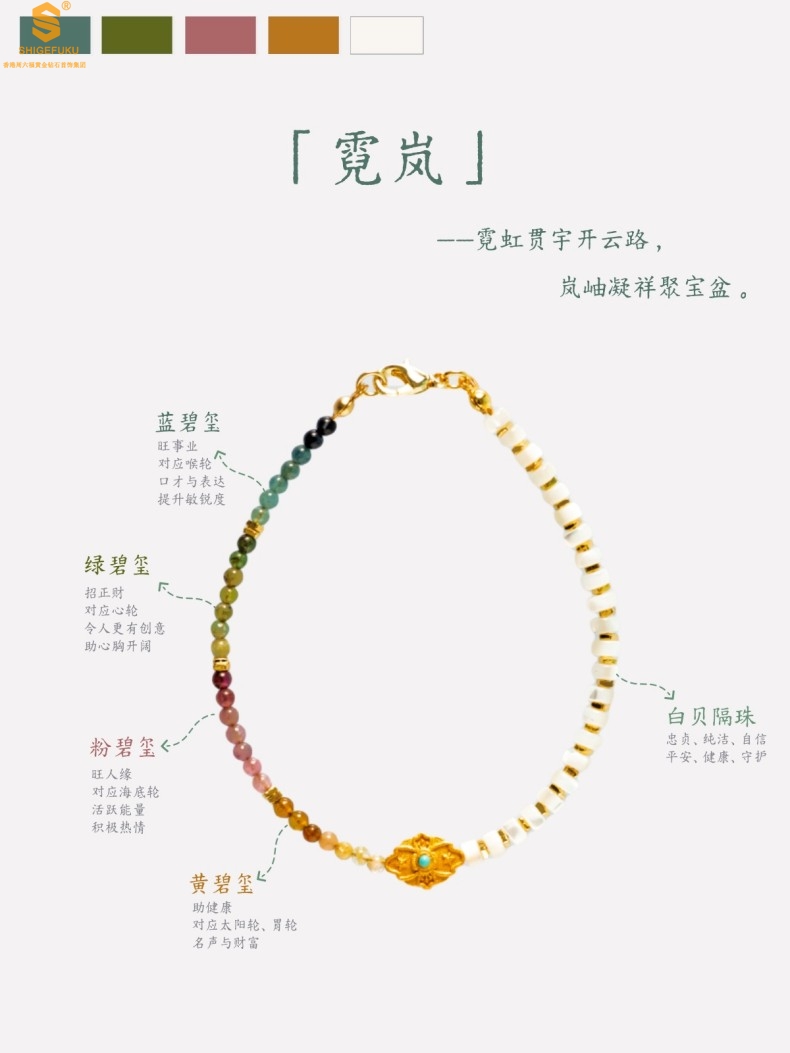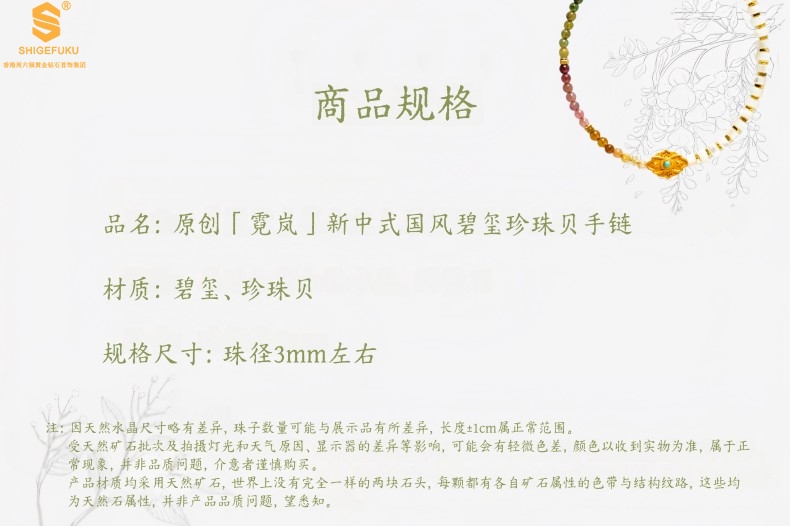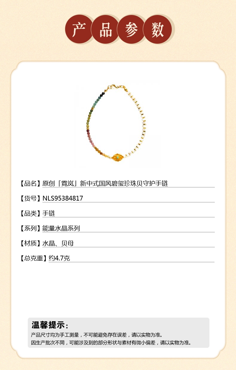 【品名】原创「霓岚」新中式国风碧玺珍珠贝守护手链