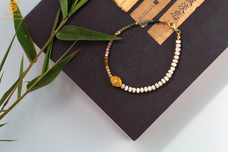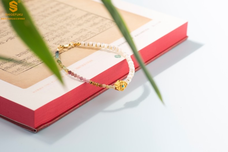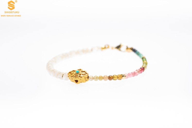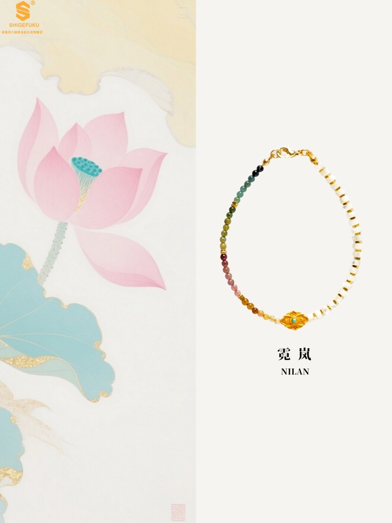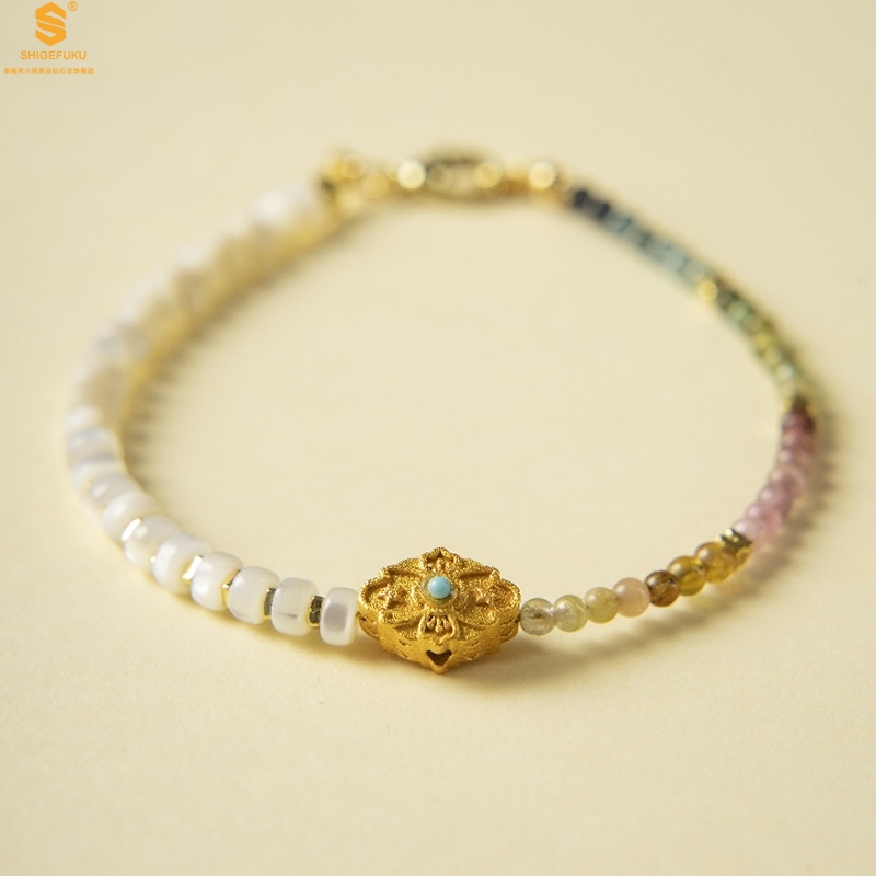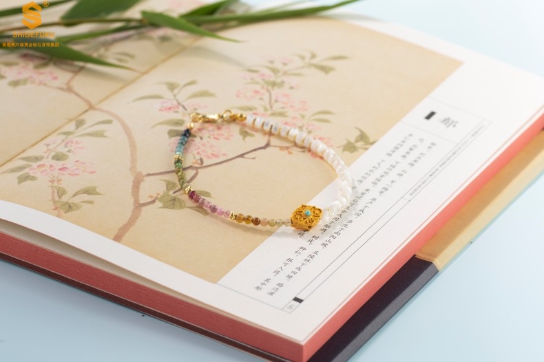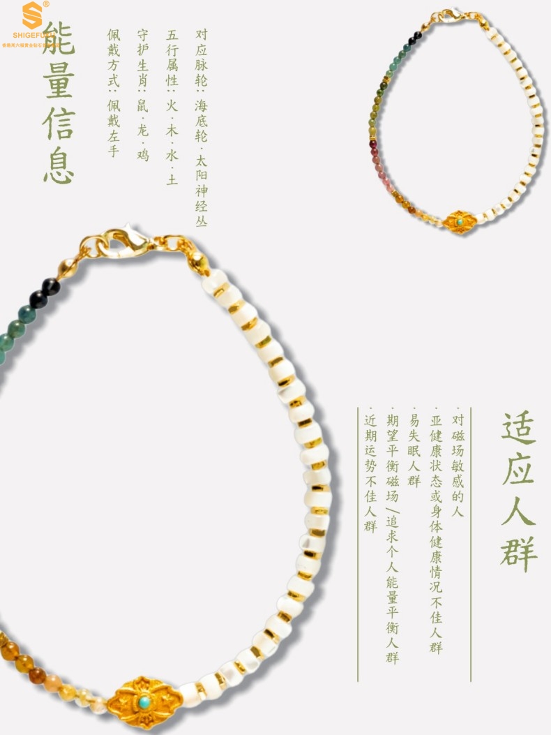 【品名】原创「霓岚」新中式国风碧玺珍珠贝守护手链