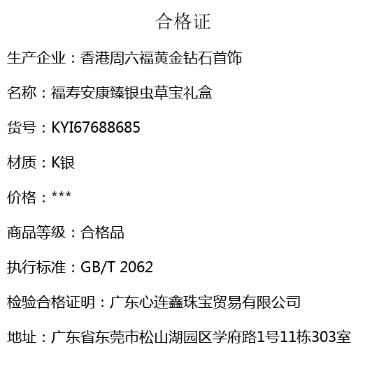 6、售后寄回物品,必须保证:首饰+礼品盒+礼品袋(如有)+国检证书+质保单+保养卡均寄回,丢失部分我们将按照售价扣除。