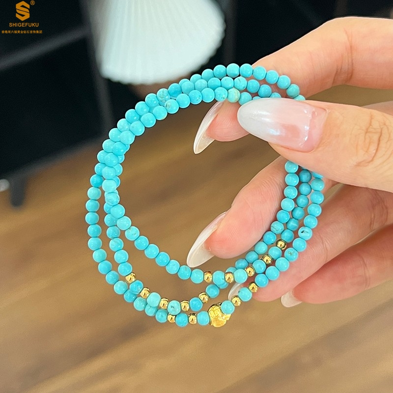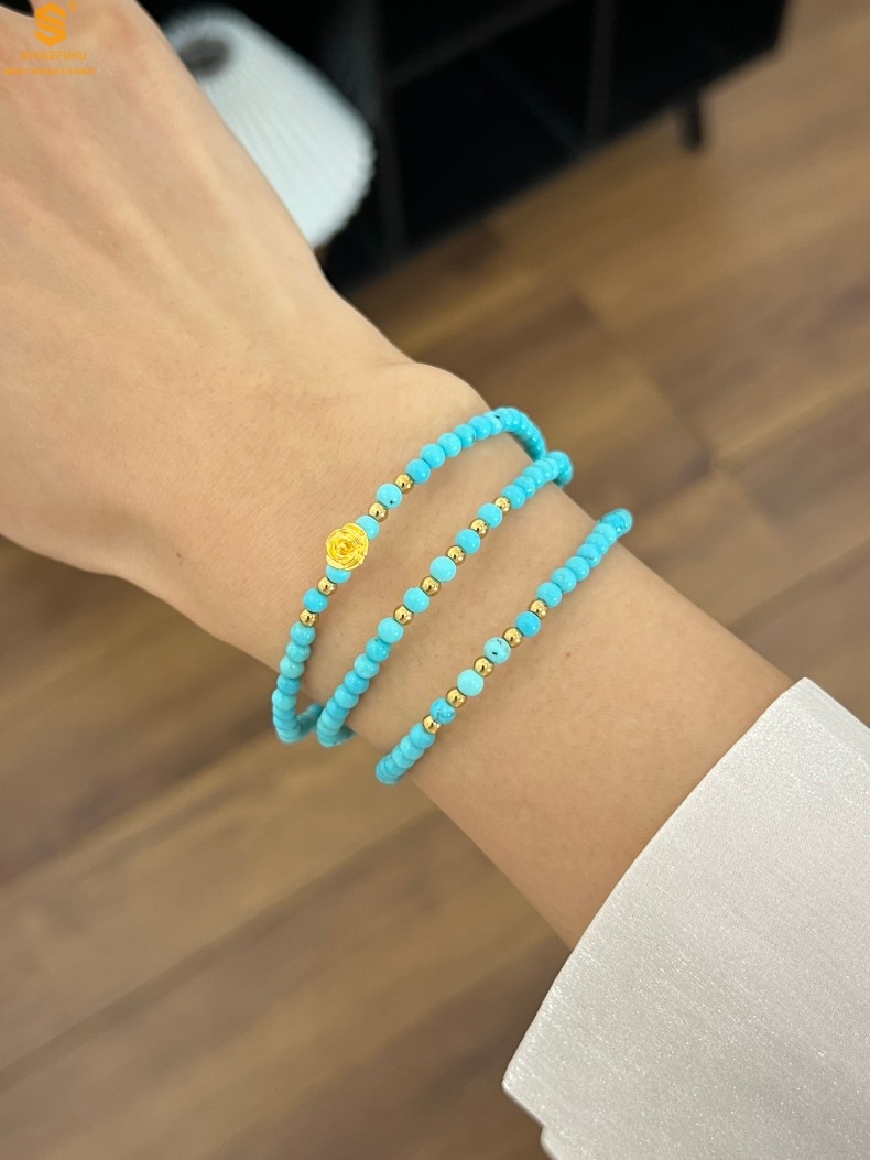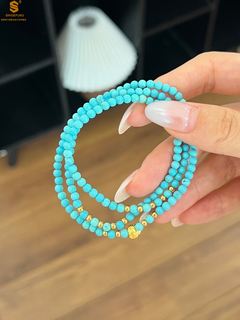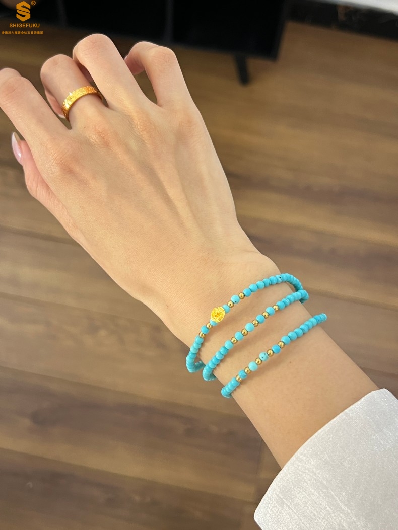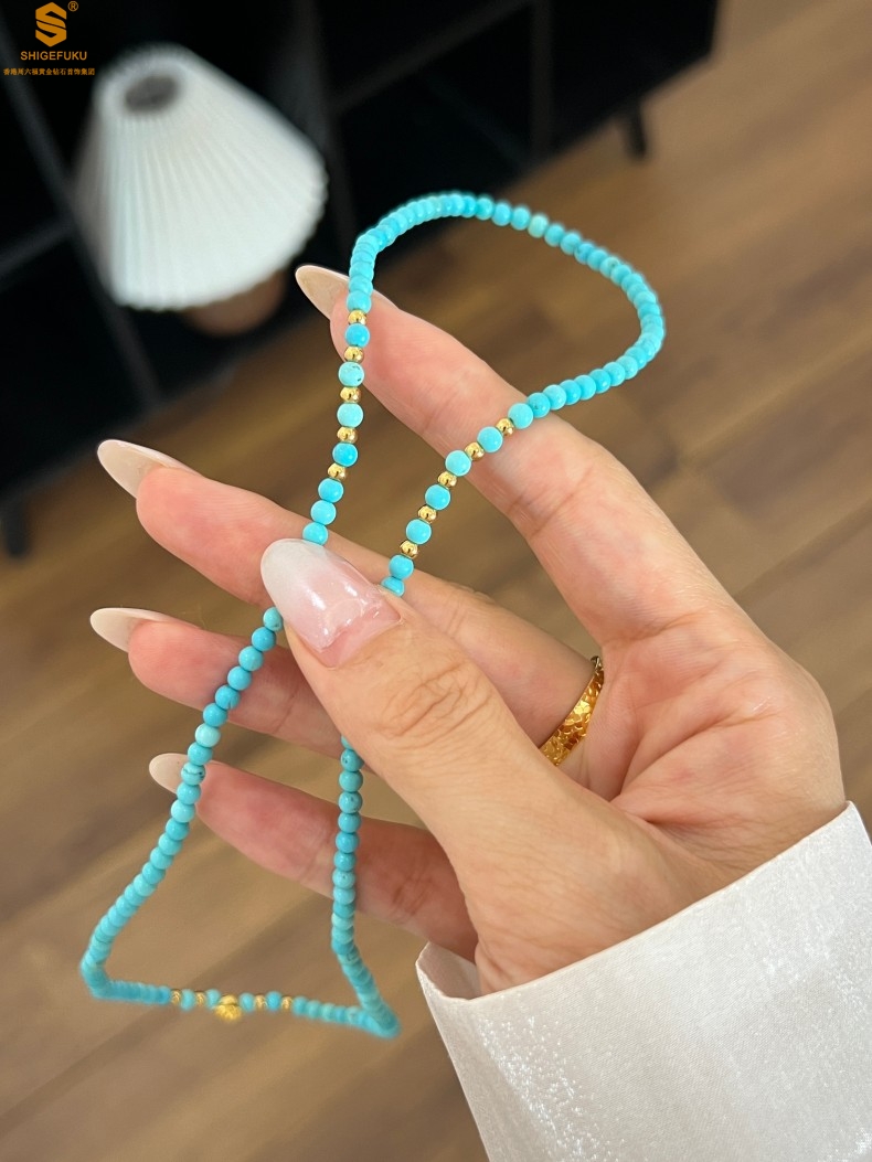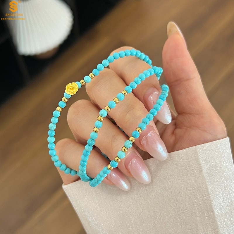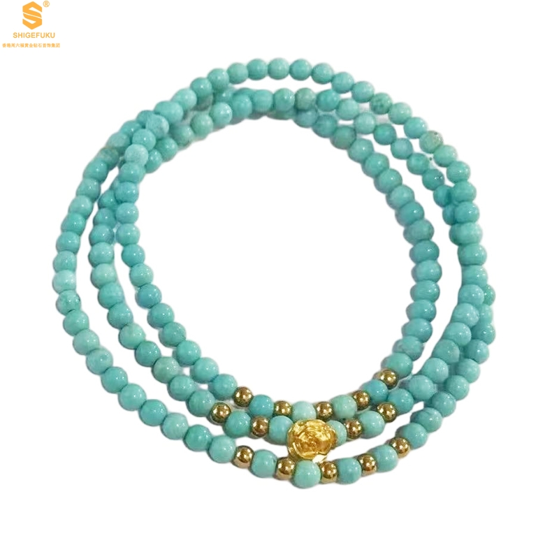 【品名】999足金玫瑰花天然绿松石项链(传承礼盒)