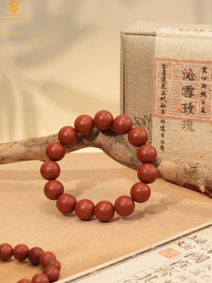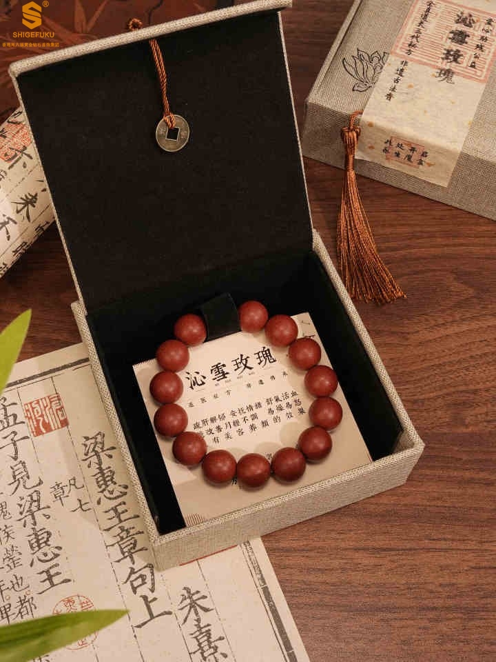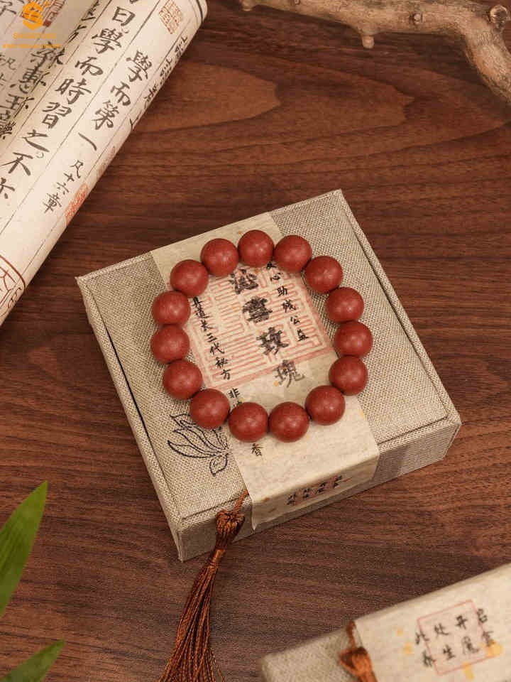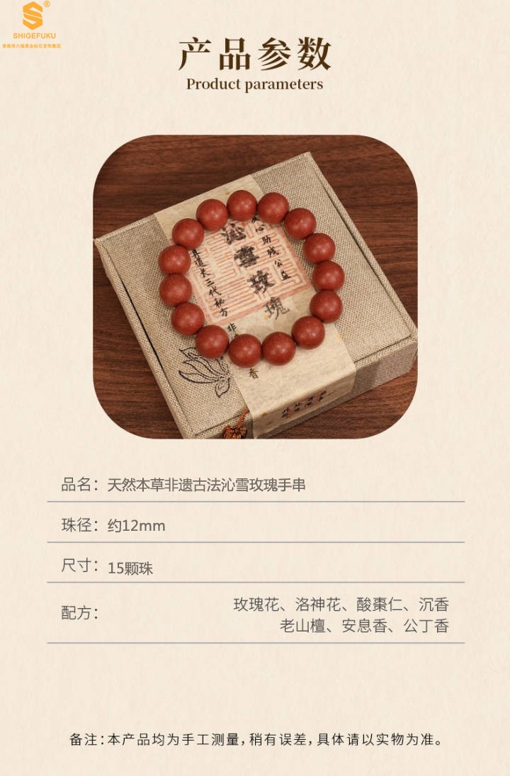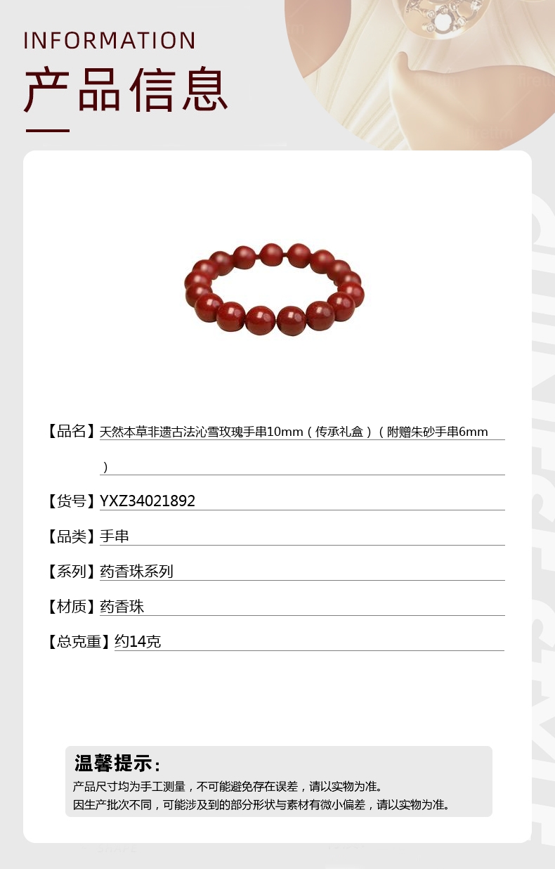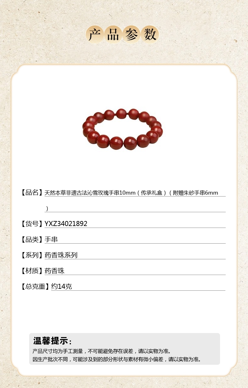 【品名】天然本草非遗古法沁雪玫瑰手串10mm(传承礼盒)(附赠朱砂手串6mm)