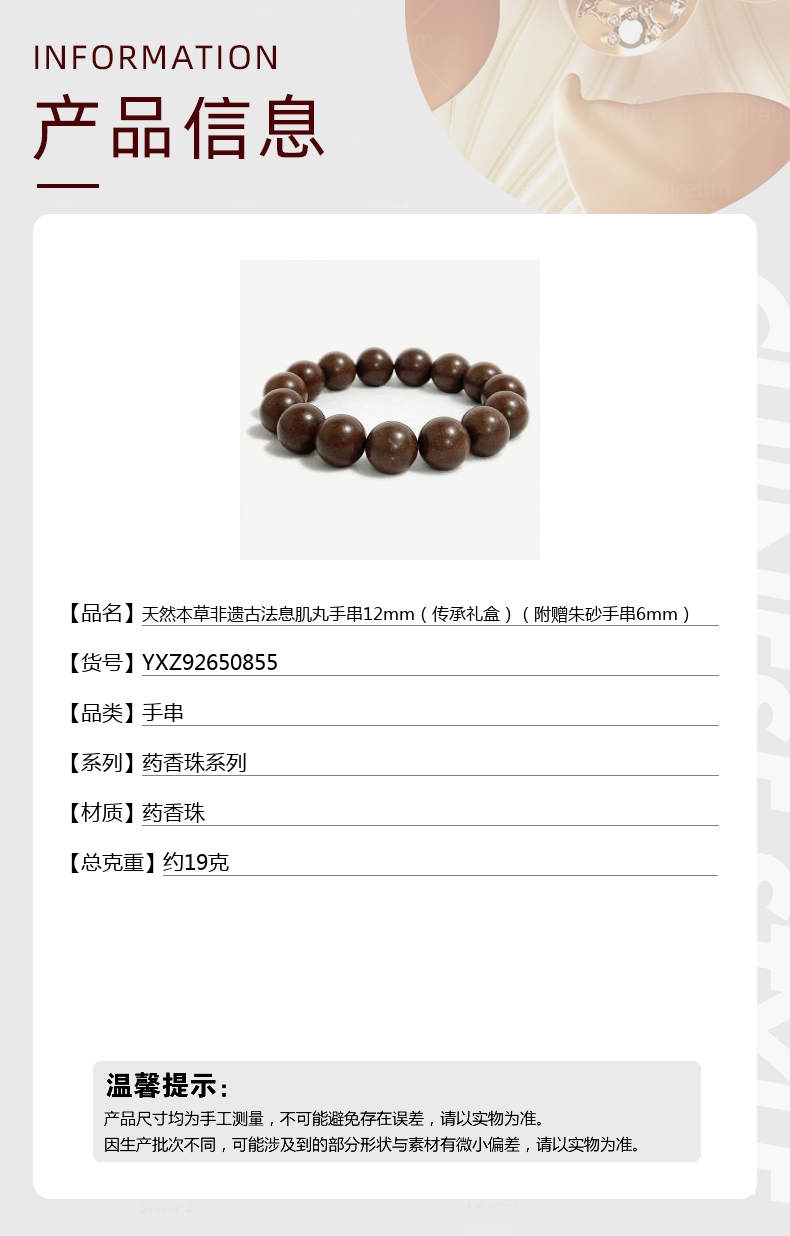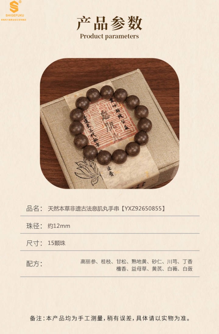 【品名】天然本草非遗古法息肌丸手串12mm(传承礼盒)(附赠朱砂手串6mm)