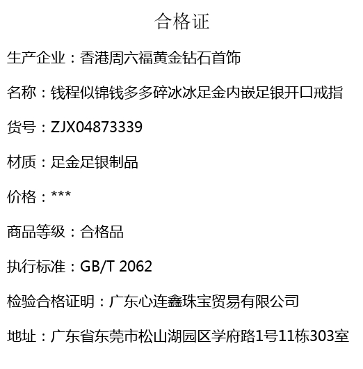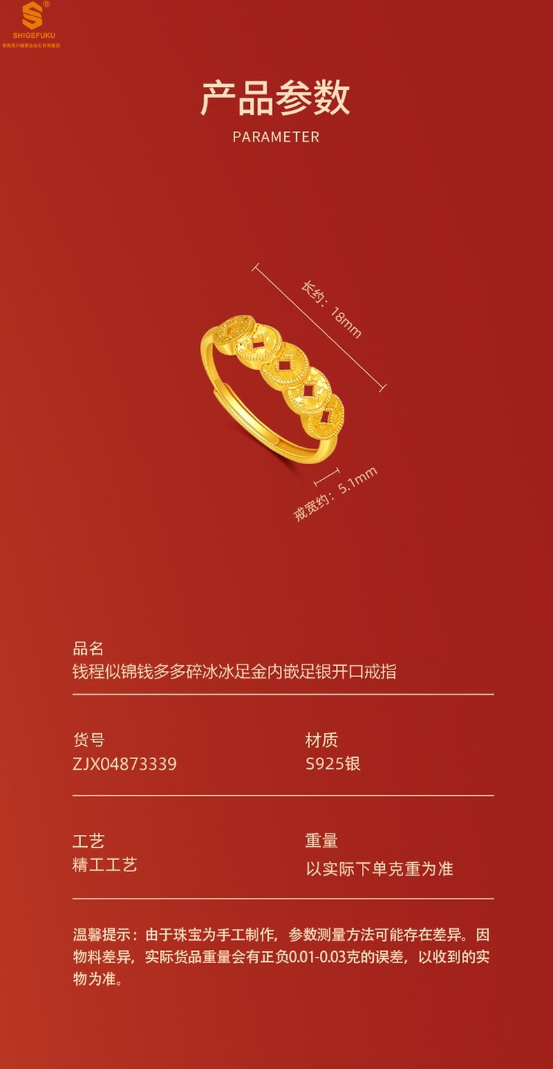 【品名】钱程似锦钱多多碎冰冰足金内嵌足银开口戒指