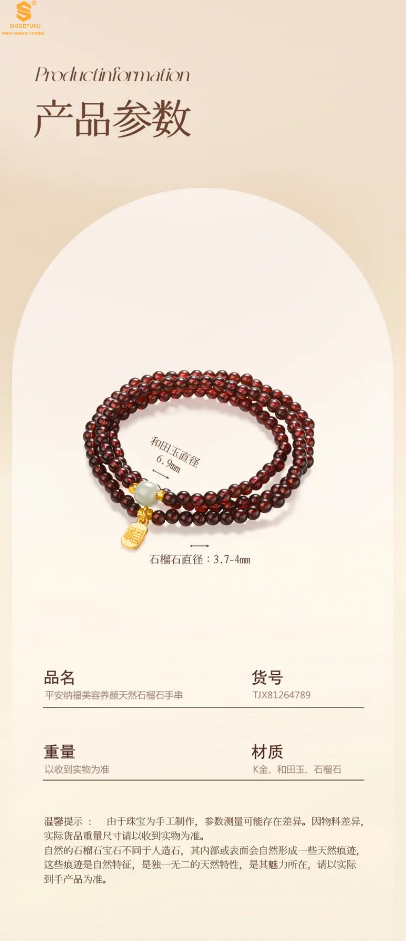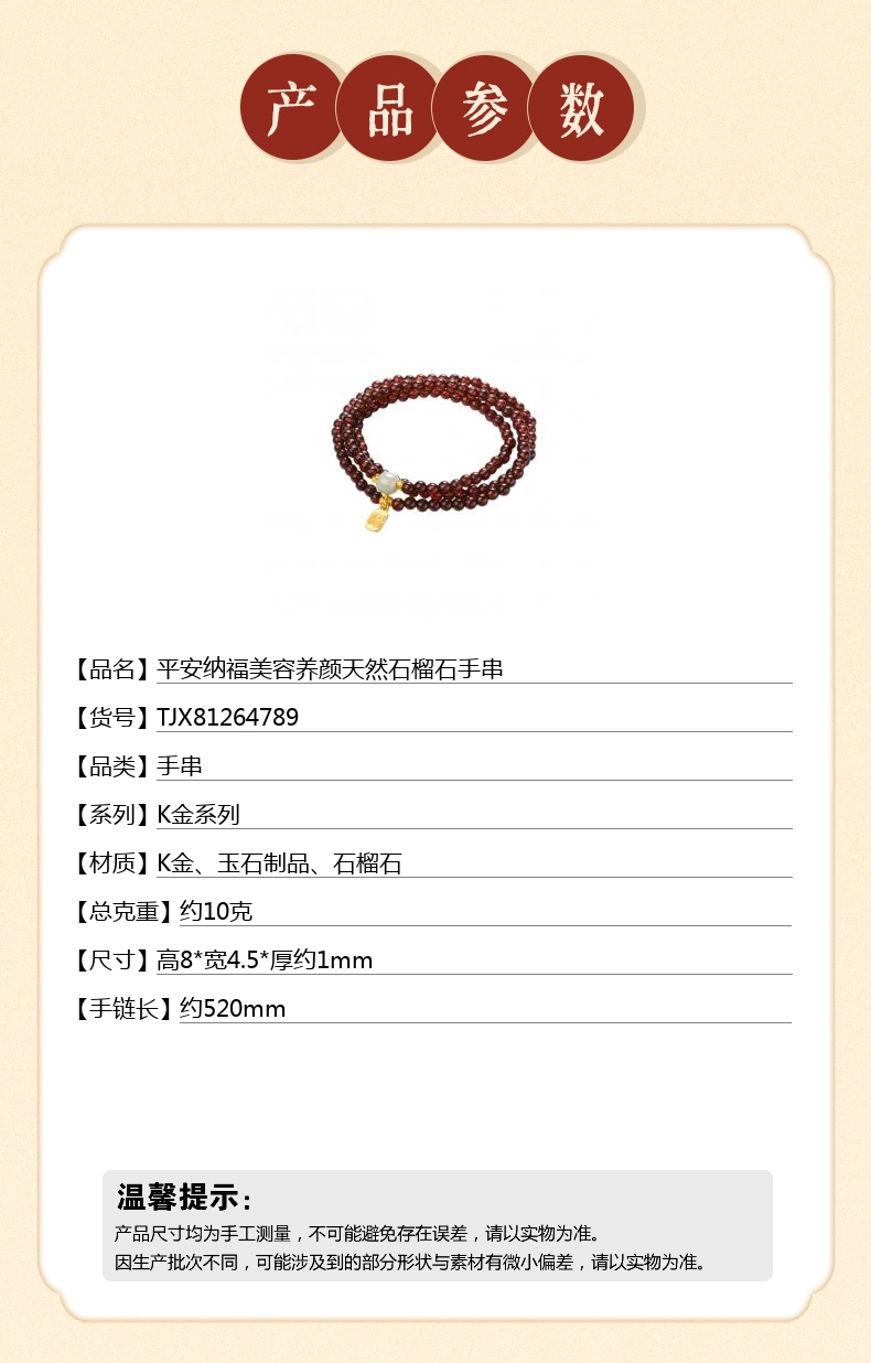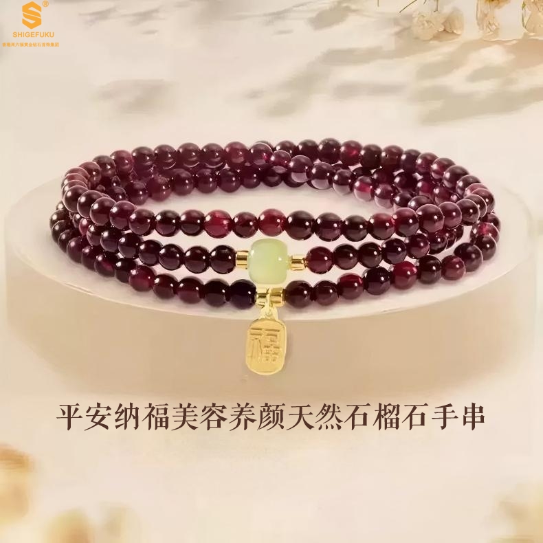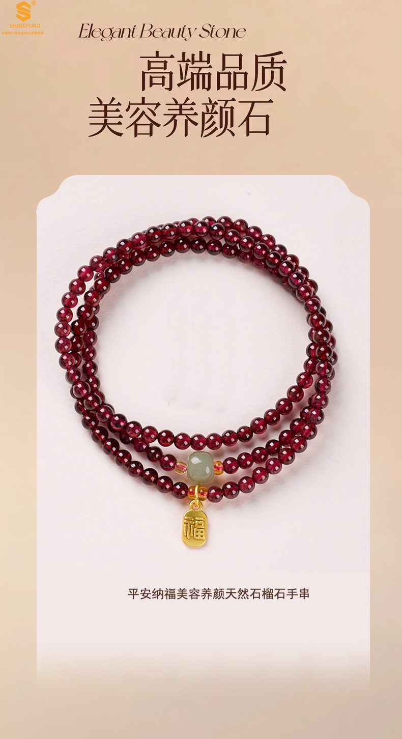 【品名】平安纳福美容养颜天然石榴石手串
