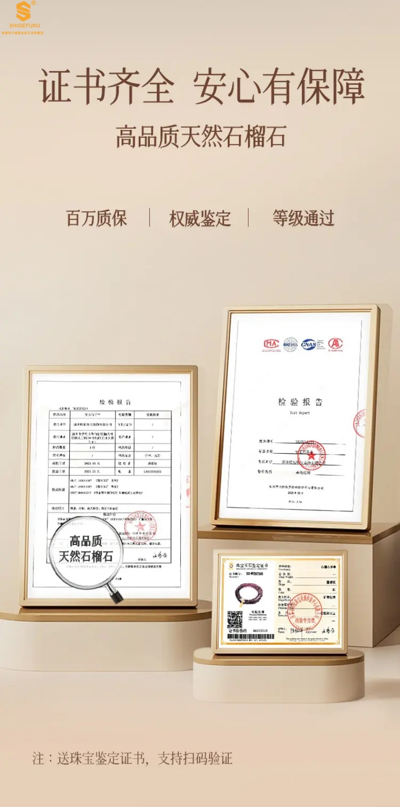 【套装包含】首饰+礼品盒+礼品袋+国检证书+质保单+价签